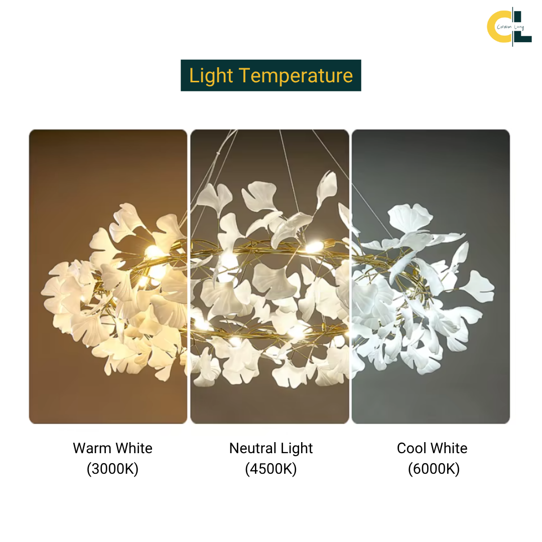 Perfect for living rooms, dining rooms, kitchens, and bedrooms, this chandelier combines high-end materials with a unique artistic design, making it both a light source and a decorative masterpiece. The energy-efficient LED lighting offers a warm, ambient glow while enhancing the room’s aesthetic. Crafted with precision, the ceramic leaves reflect delicate detail, turning your ceiling into a canvas of natural elegance.
