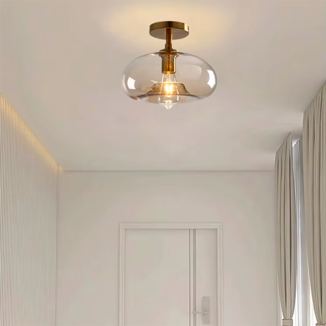 Elevate your space with Nova, a refined blend of elegance and modern design. Crafted from high-quality glass, this round ceiling light brings sophistication and warmth to any room, whether at home or in the office. Its sleek silhouette complements a wide range of décor styles, making it a versatile choice for any interior.