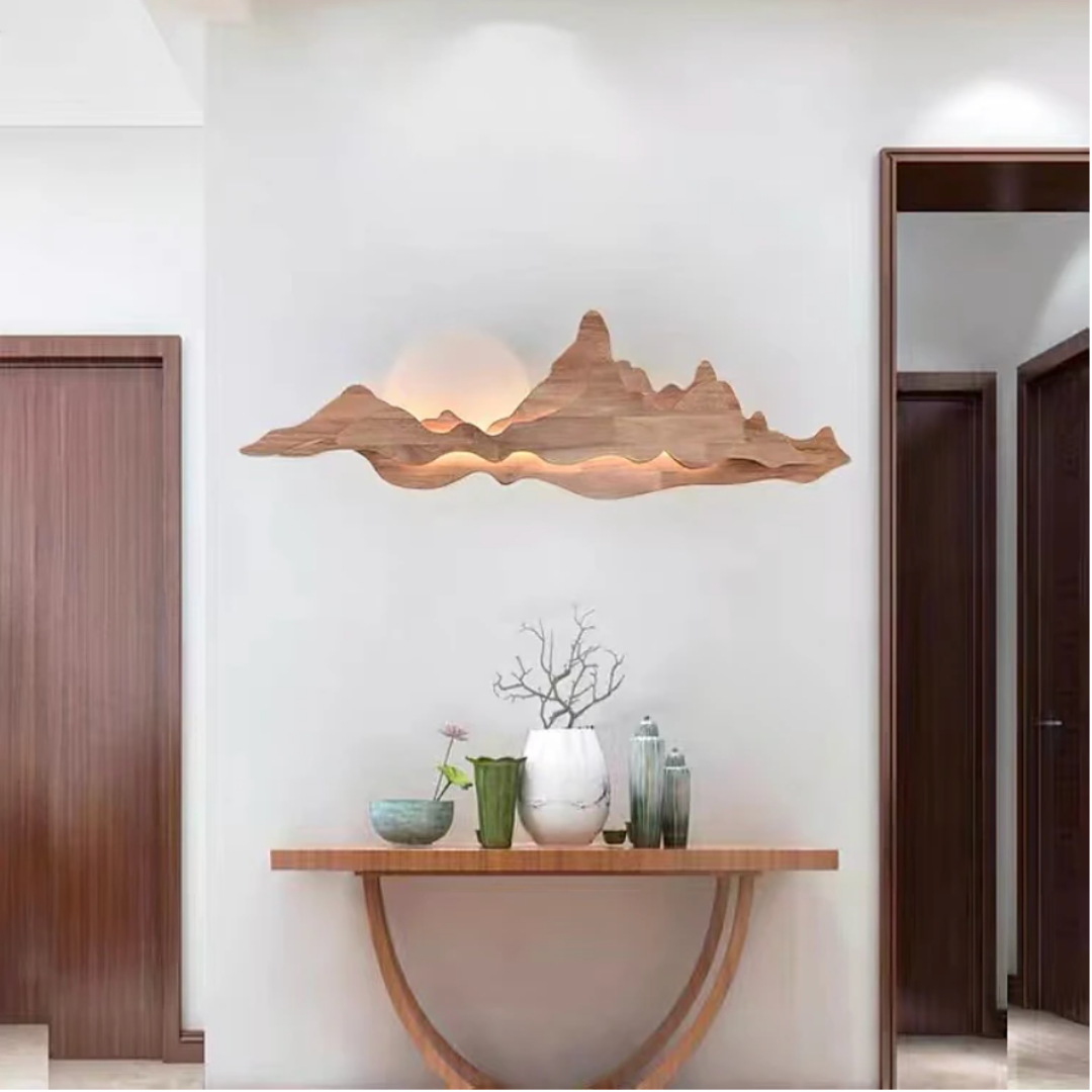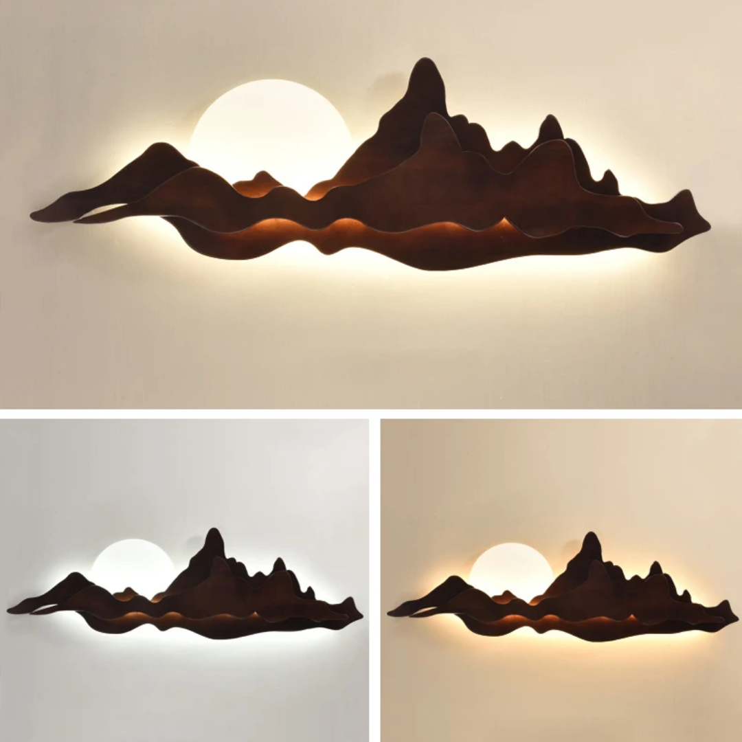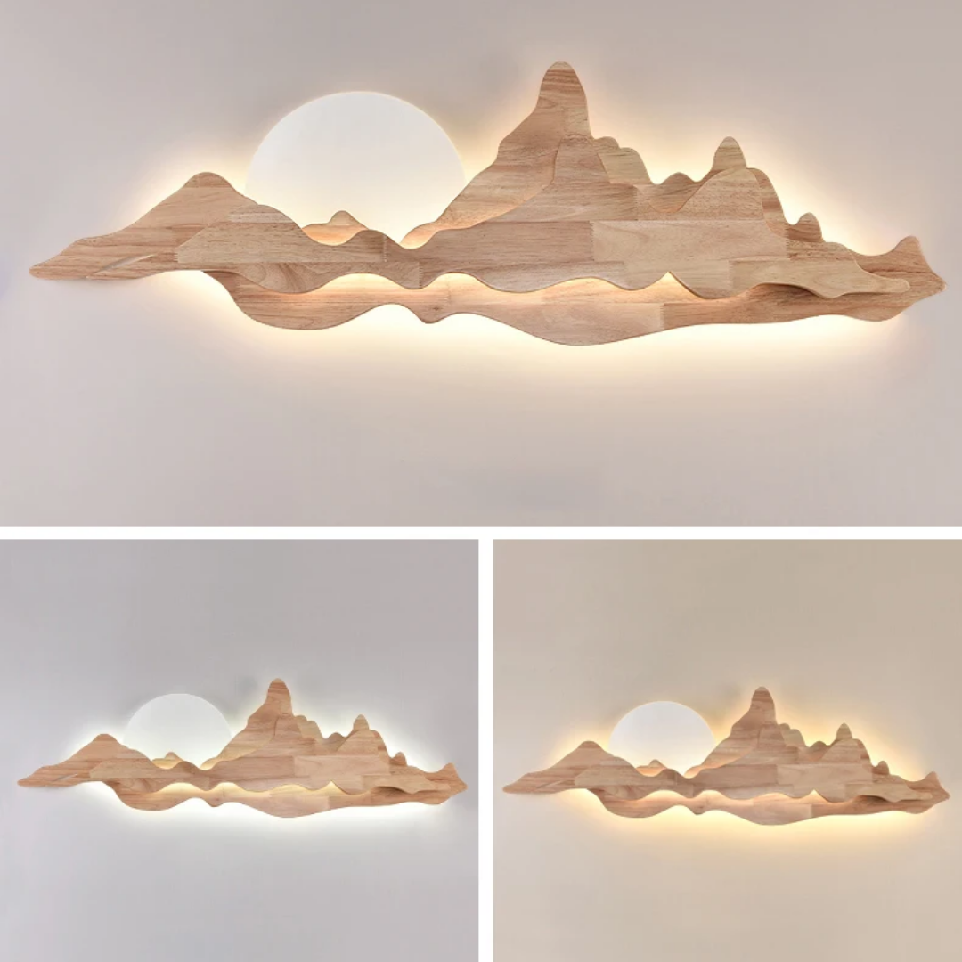 The Wooden Mountain Silhouette LED Wall Light brings a warm, natural charm to any space with its unique mountain-inspired design.