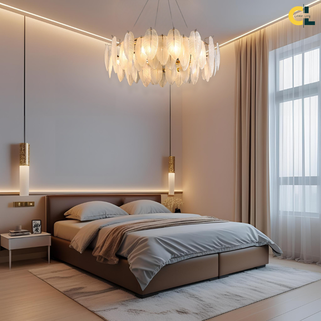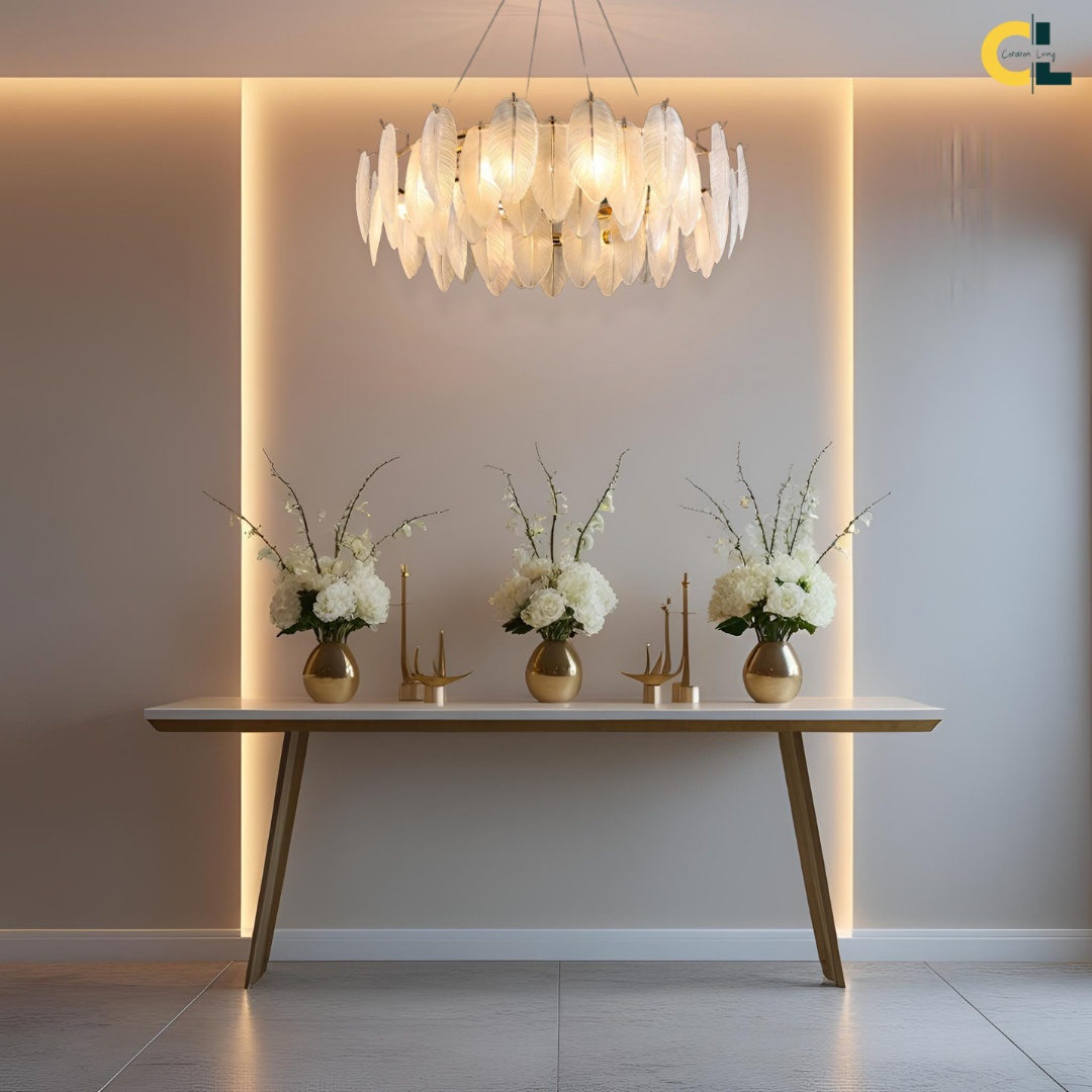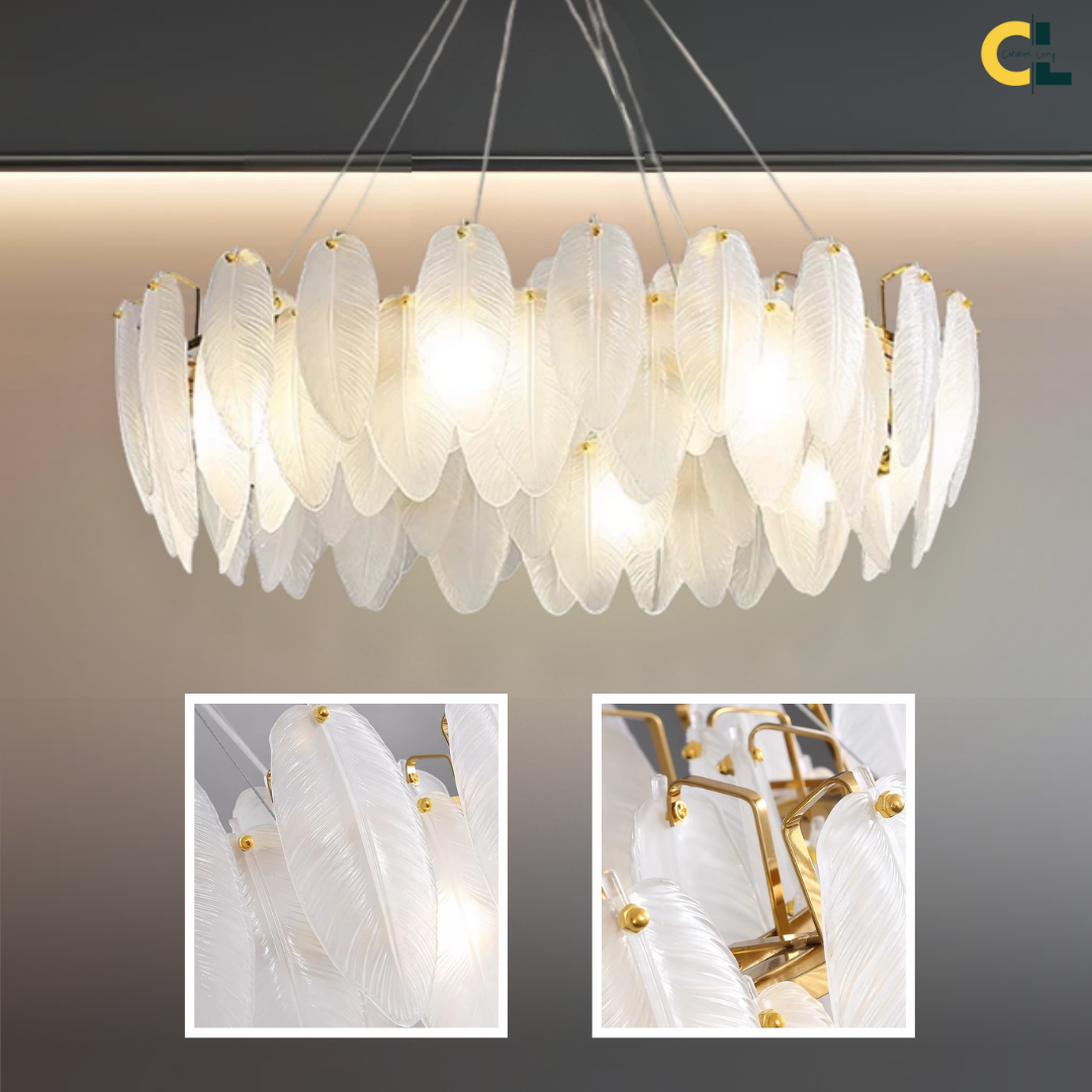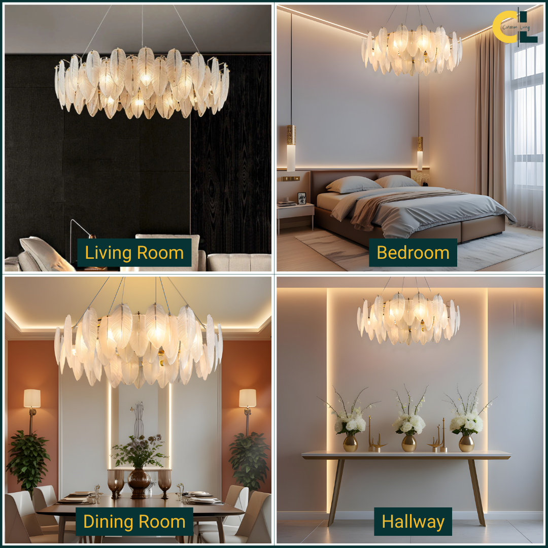 Unique Feather-Inspired Design – Handcrafted glass feather accents for a soft, elegant aesthetic.
