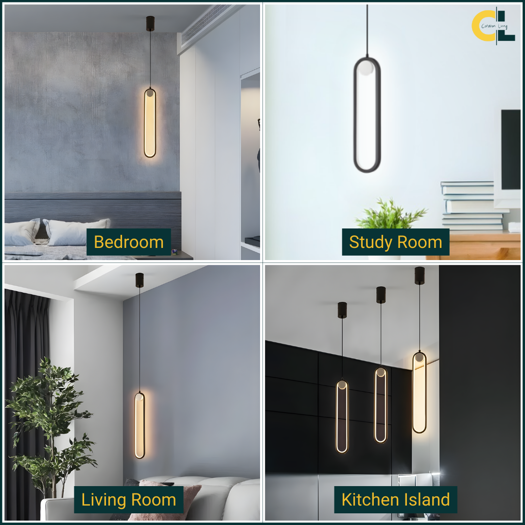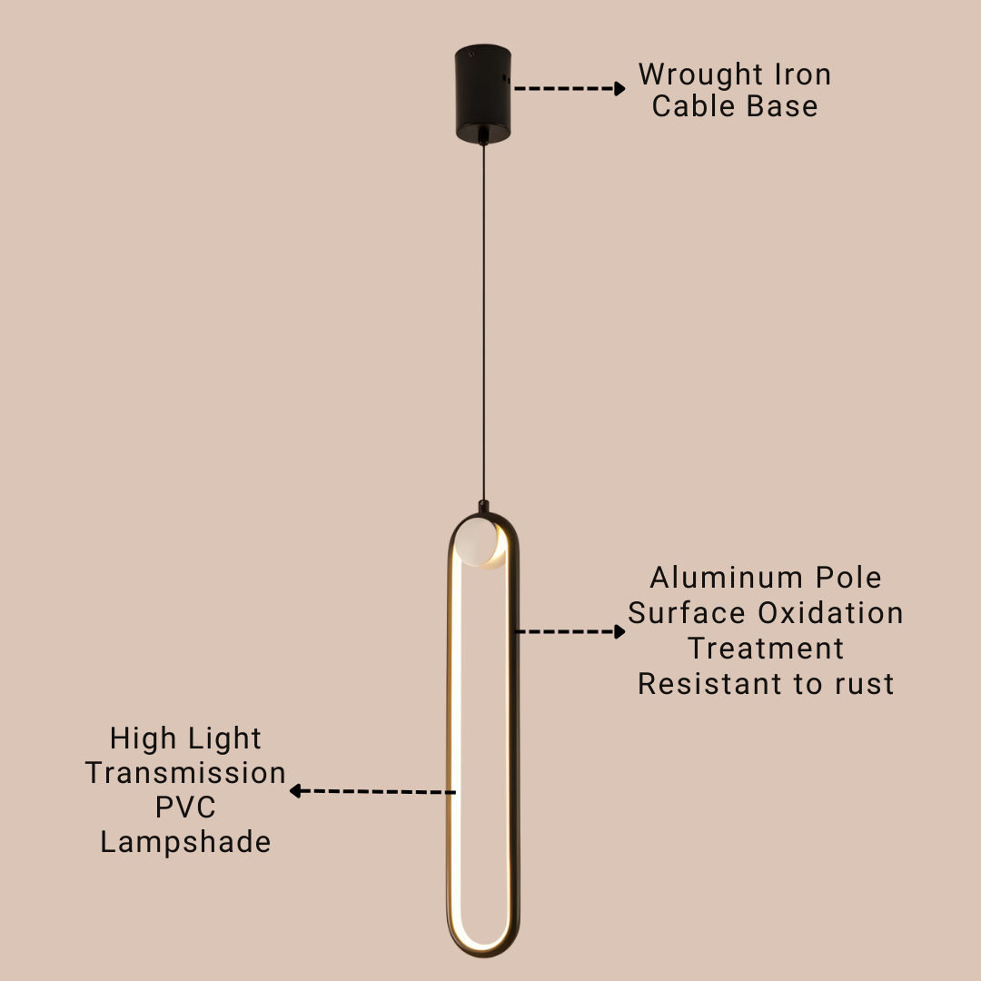 The Ovaline Pendant Light brings a sleek and contemporary touch to modern interiors with its smooth, elongated form and minimalist elegance. Crafted from durable aluminum and PVC, it offers a refined balance of style and functionality. Available in both Black and Gold finishes, it effortlessly complements a wide range of décor themes.