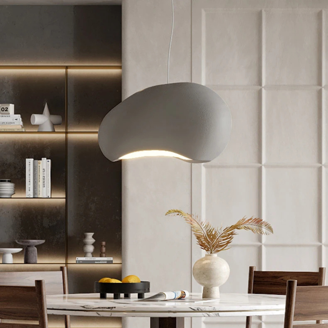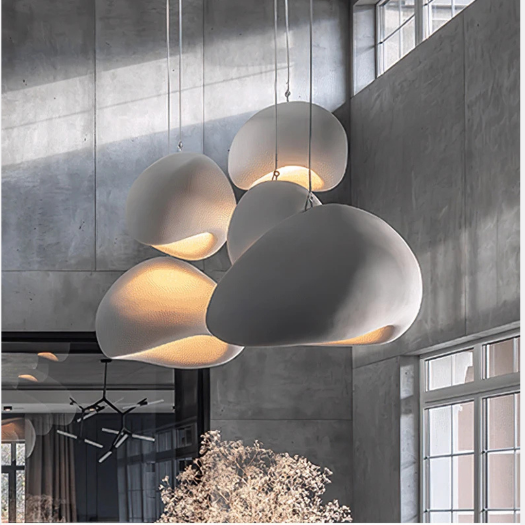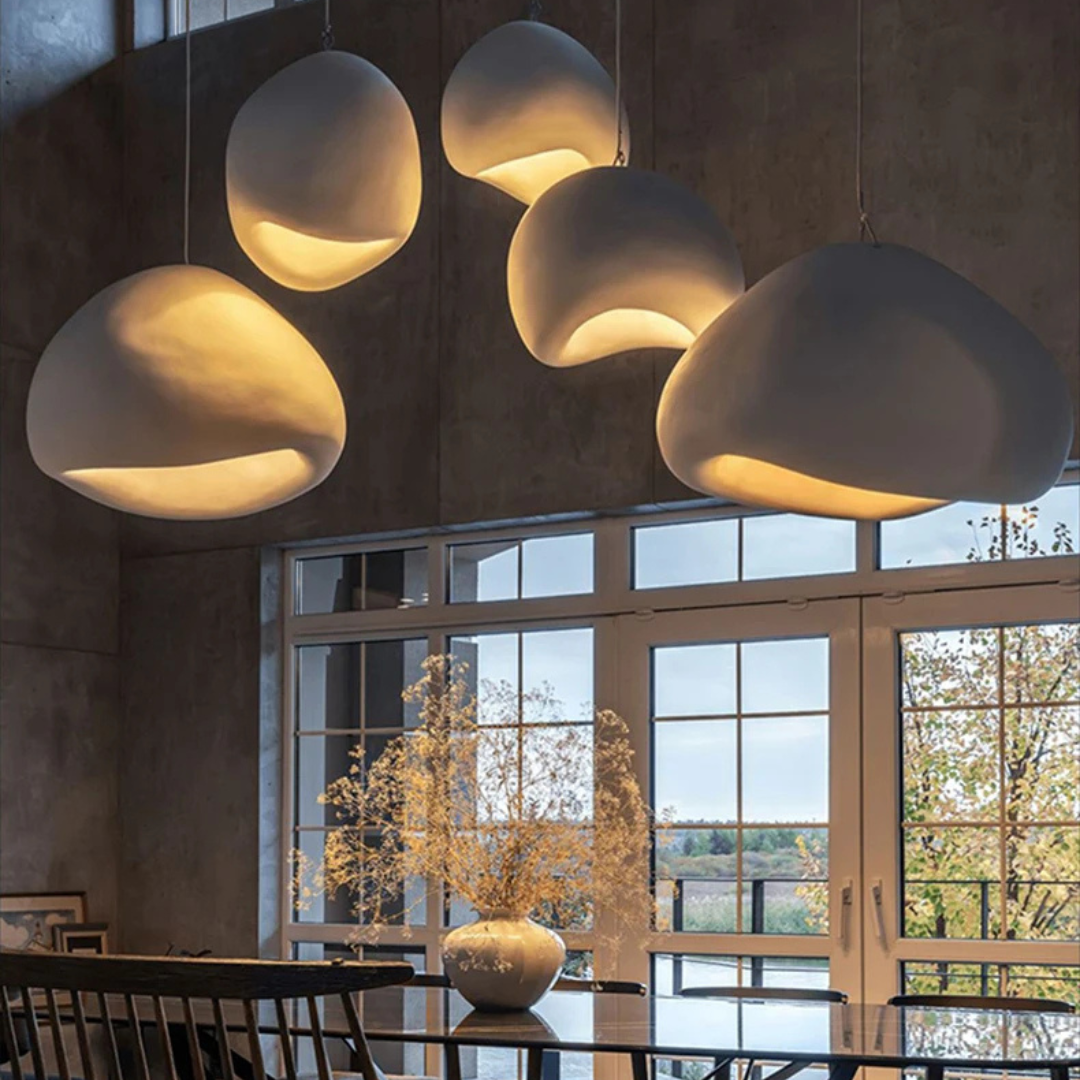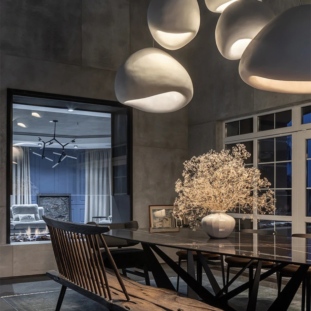 Pebbla Wabi Sabi adds a soft sculptural presence to your interior with its smooth polystyrene form and gentle illumination. Designed for versatility, it features an adjustable suspension and casts a warm ambient glow that enriches dining spaces, lounges, or any relaxed setting.