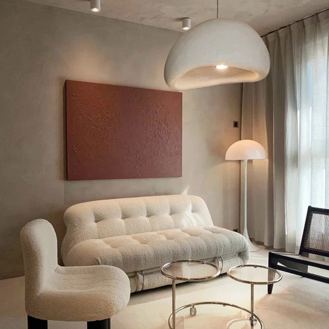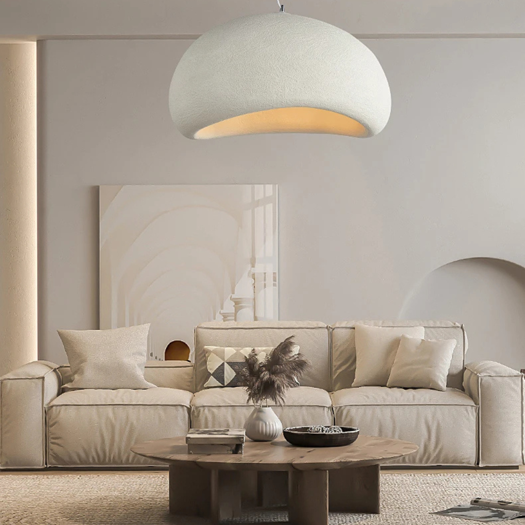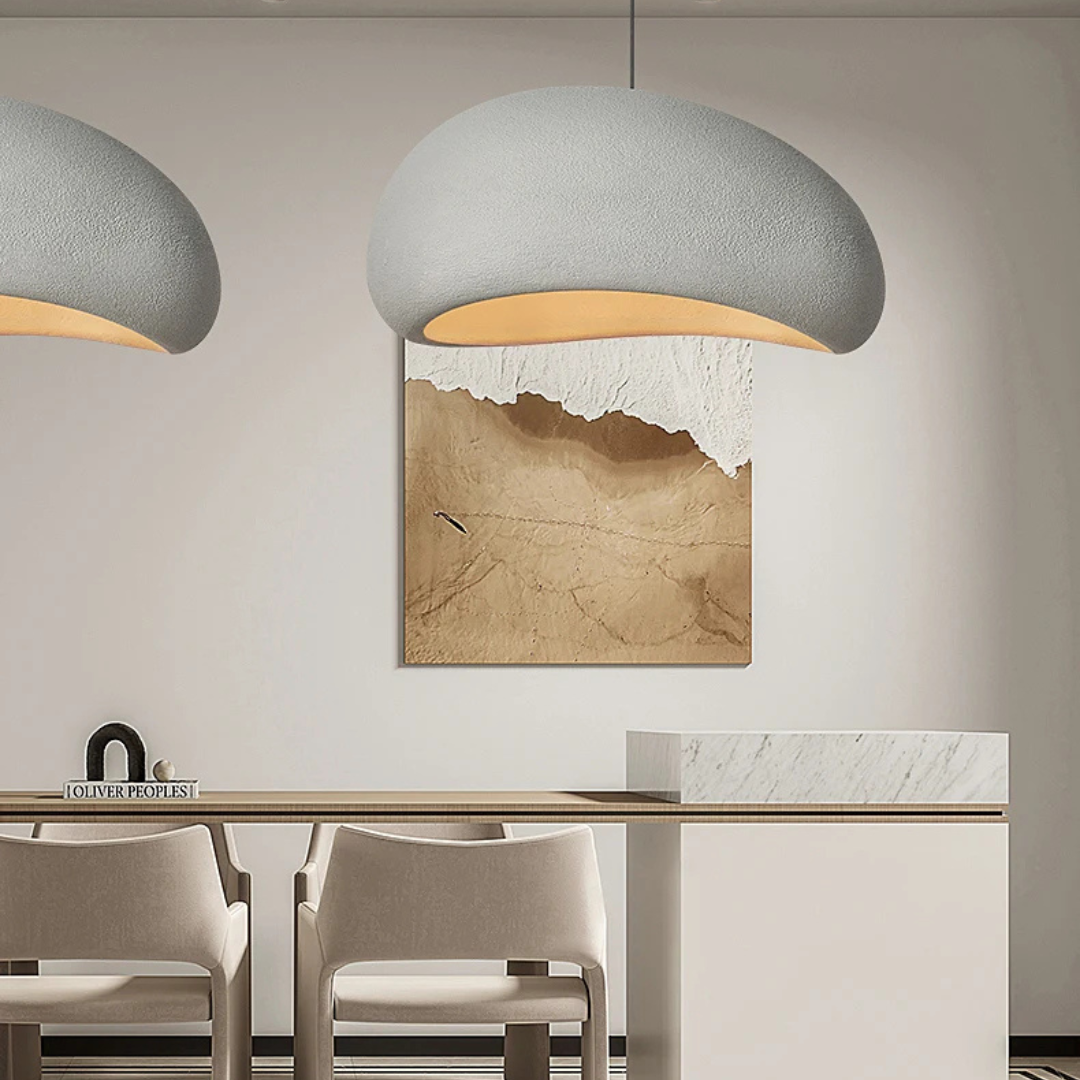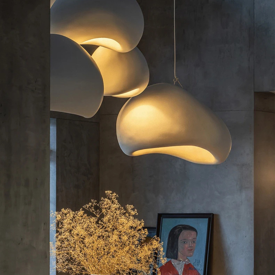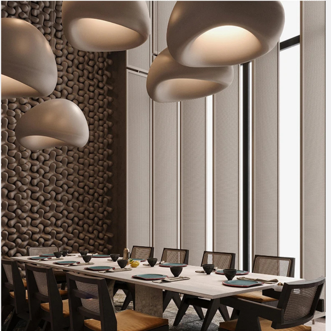 Pebbla Wabi Sabi adds a soft sculptural presence to your interior with its smooth polystyrene form and gentle illumination. Designed for versatility, it features an adjustable suspension and casts a warm ambient glow that enriches dining spaces, lounges, or any relaxed setting.
