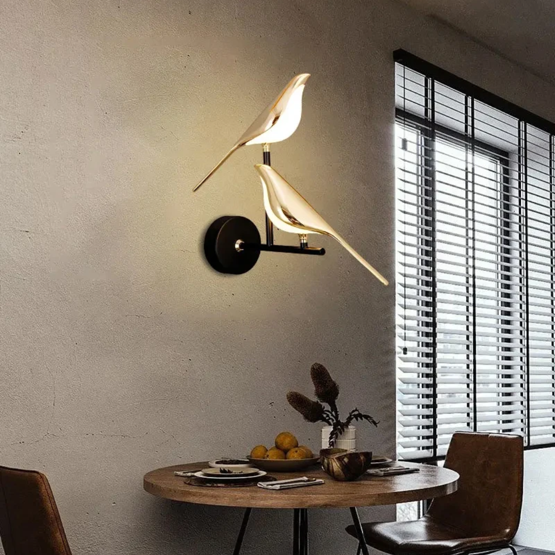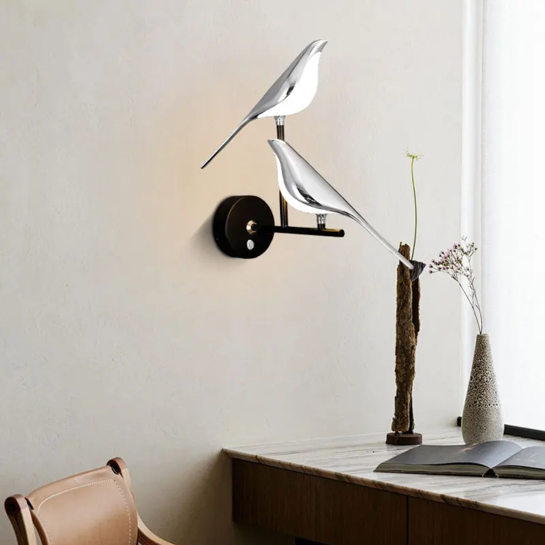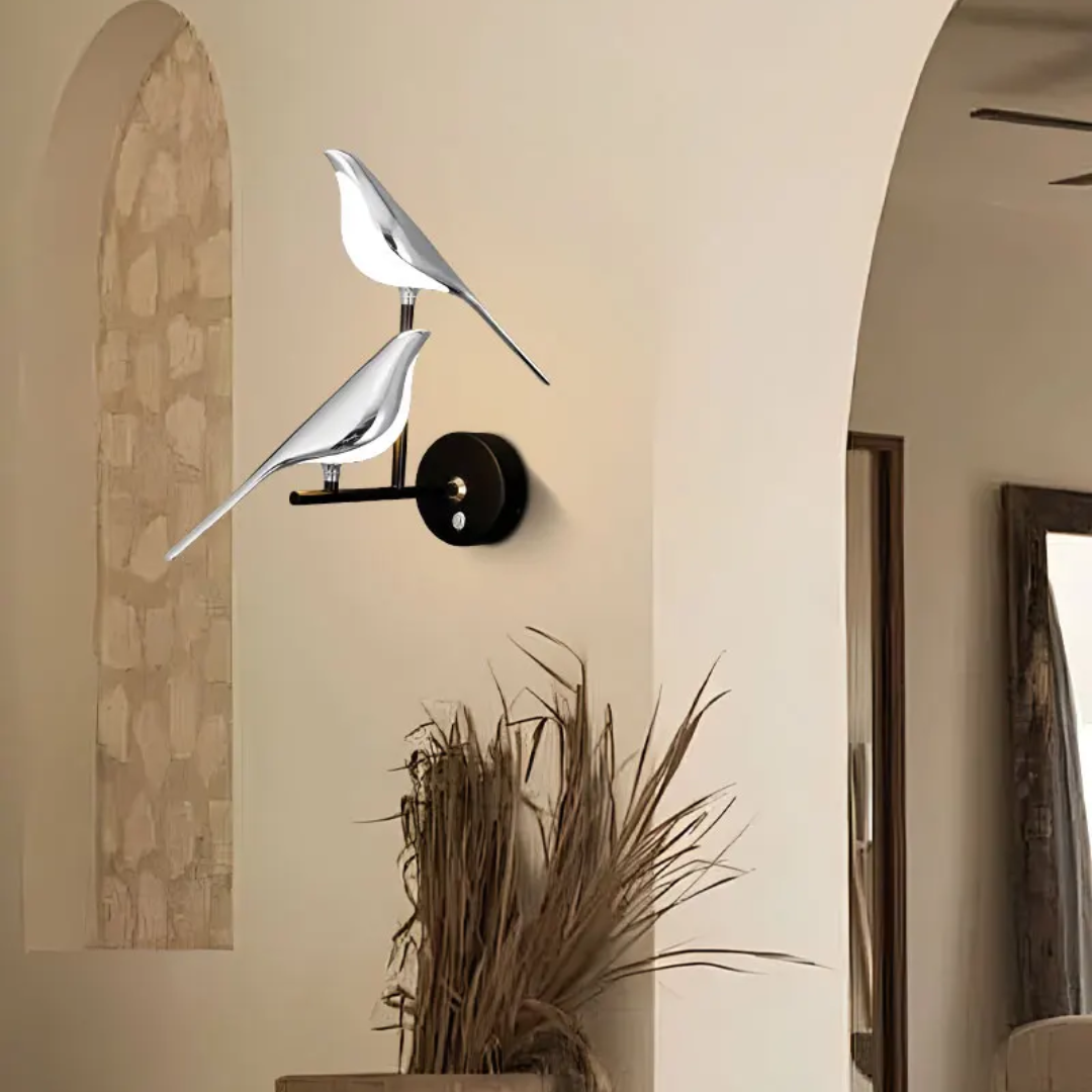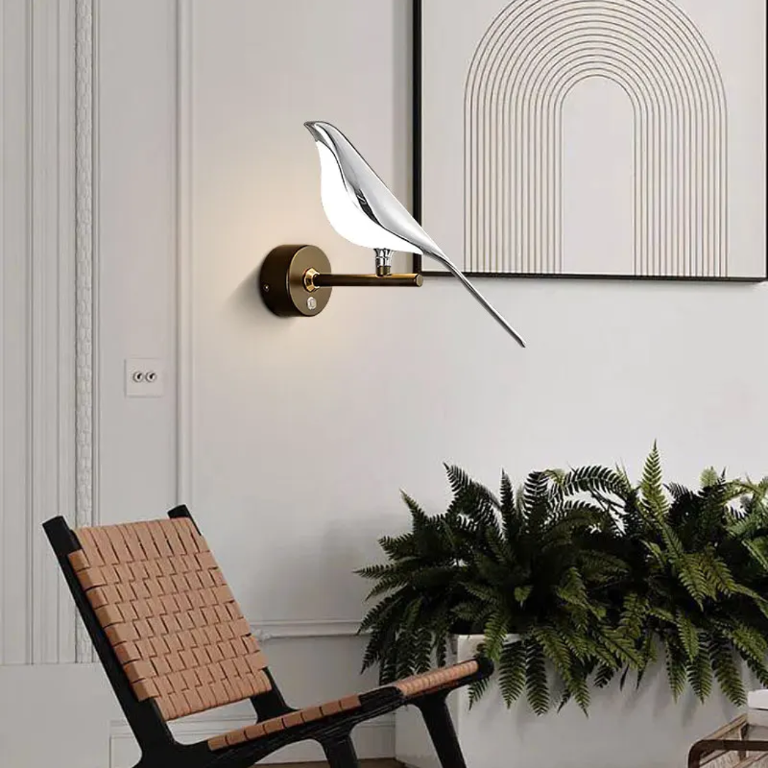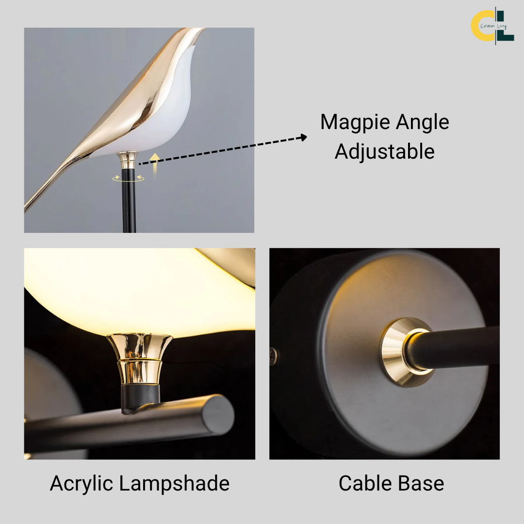 Elevate your interior with the Pere Contemporary 360° Rotatable Magpie LED Wall Light, available in stunning gold and silver finishes. This unique wall lamp blends functionality with contemporary design, featuring a beautifully crafted magpie model that adds both elegance and charm to any room. Perfect for bedrooms, living rooms, or even hospitality spaces, the rotatable feature allows you to adjust the lighting direction for optimal ambiance. With its soft LED glow, this light creates a cozy atmosphere while offering high performance and energy efficiency. The Contemporary aesthetic, combined with the graceful bird motif, makes this piece a striking addition to your home decor.