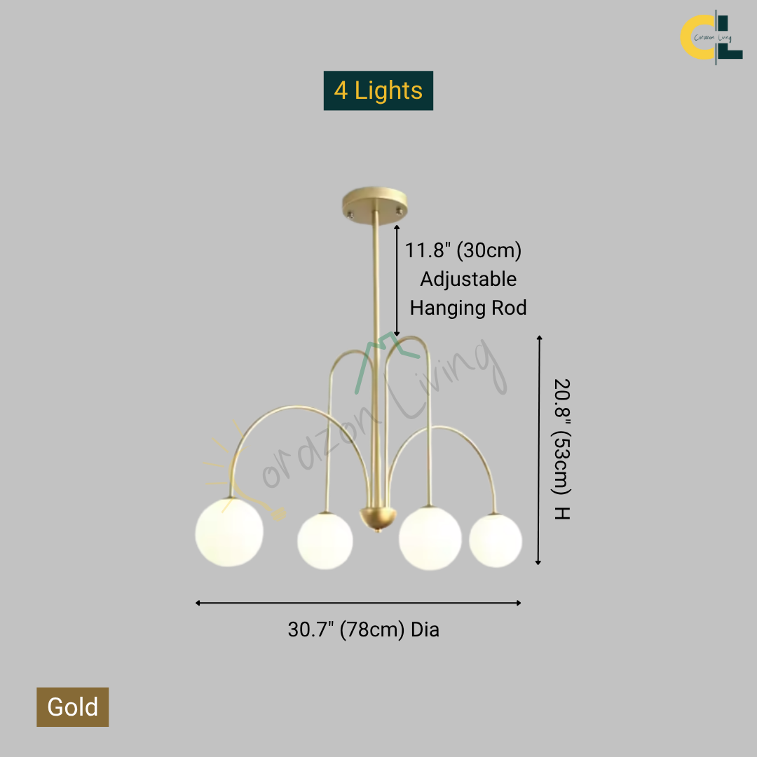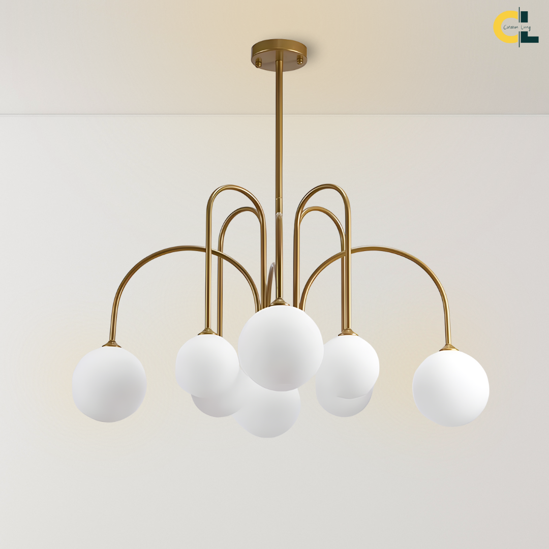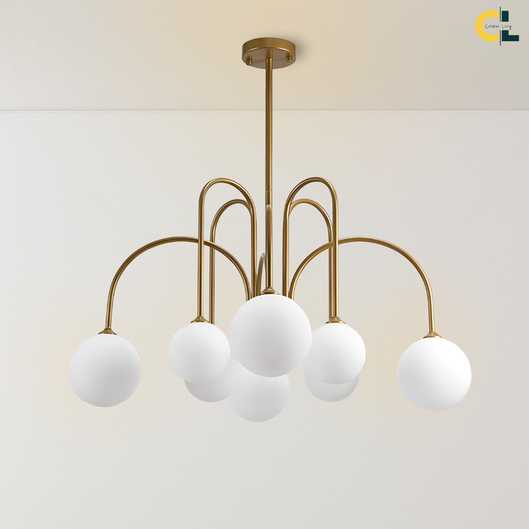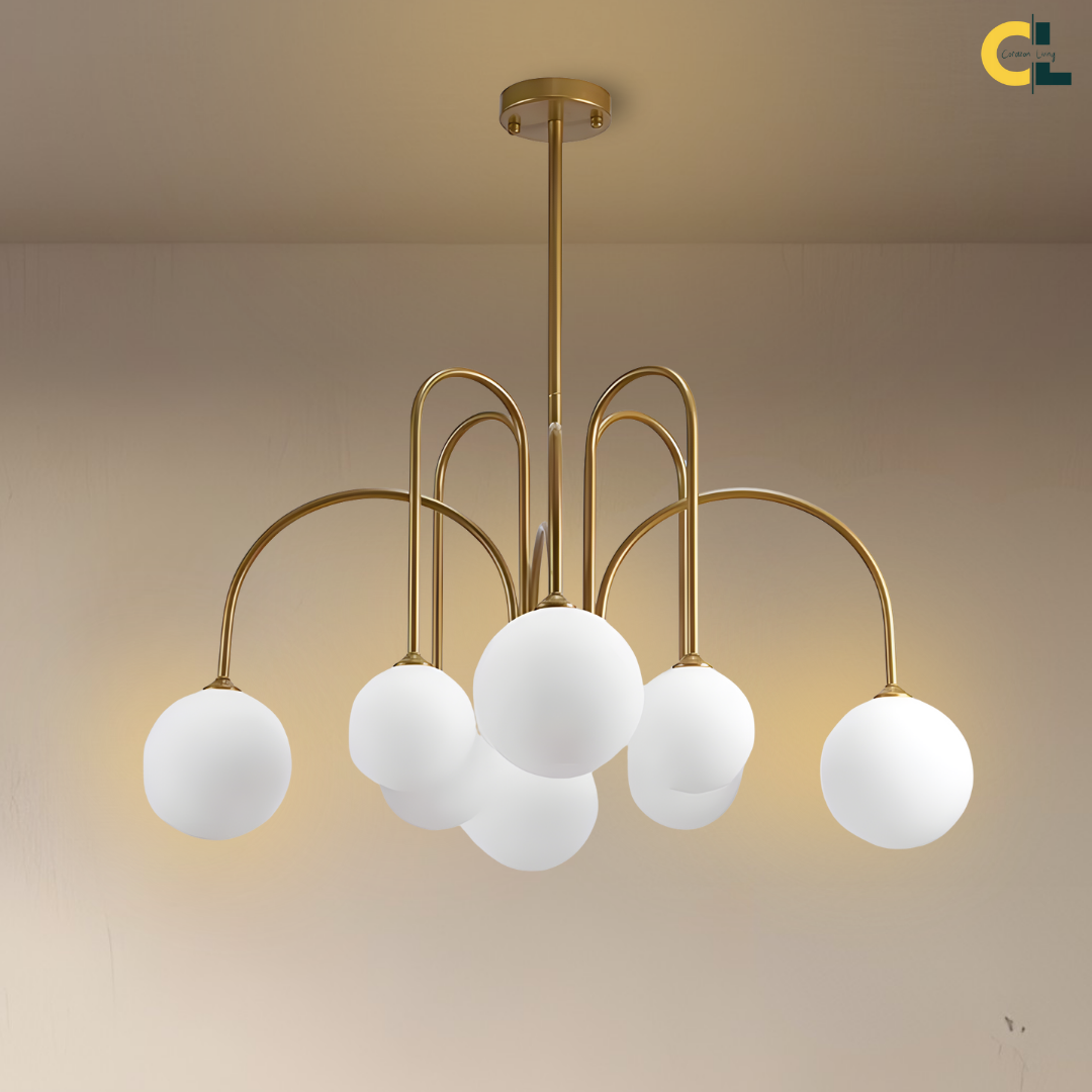 Add a touch of vintage nordic elegance to your interiors with the Periva Chandelier. Designed with smooth milky glass globes and a sleek gold, white or black metal frame, this chandelier brings soft, ambient lighting that elevates any space. Perfect for kitchen islands, dining tables, living rooms, bars, or bedrooms, its minimalist yet artistic form makes it a versatile décor statement. Built with durable craftsmanship and LED bulb compatibility, it combines timeless aesthetics with functional brilliance for a warm, inviting glow.