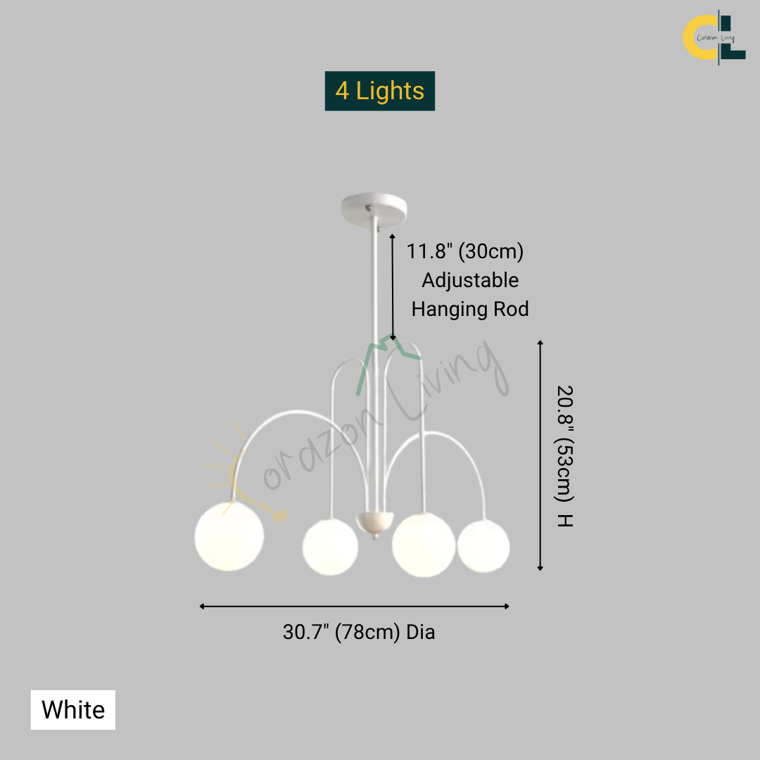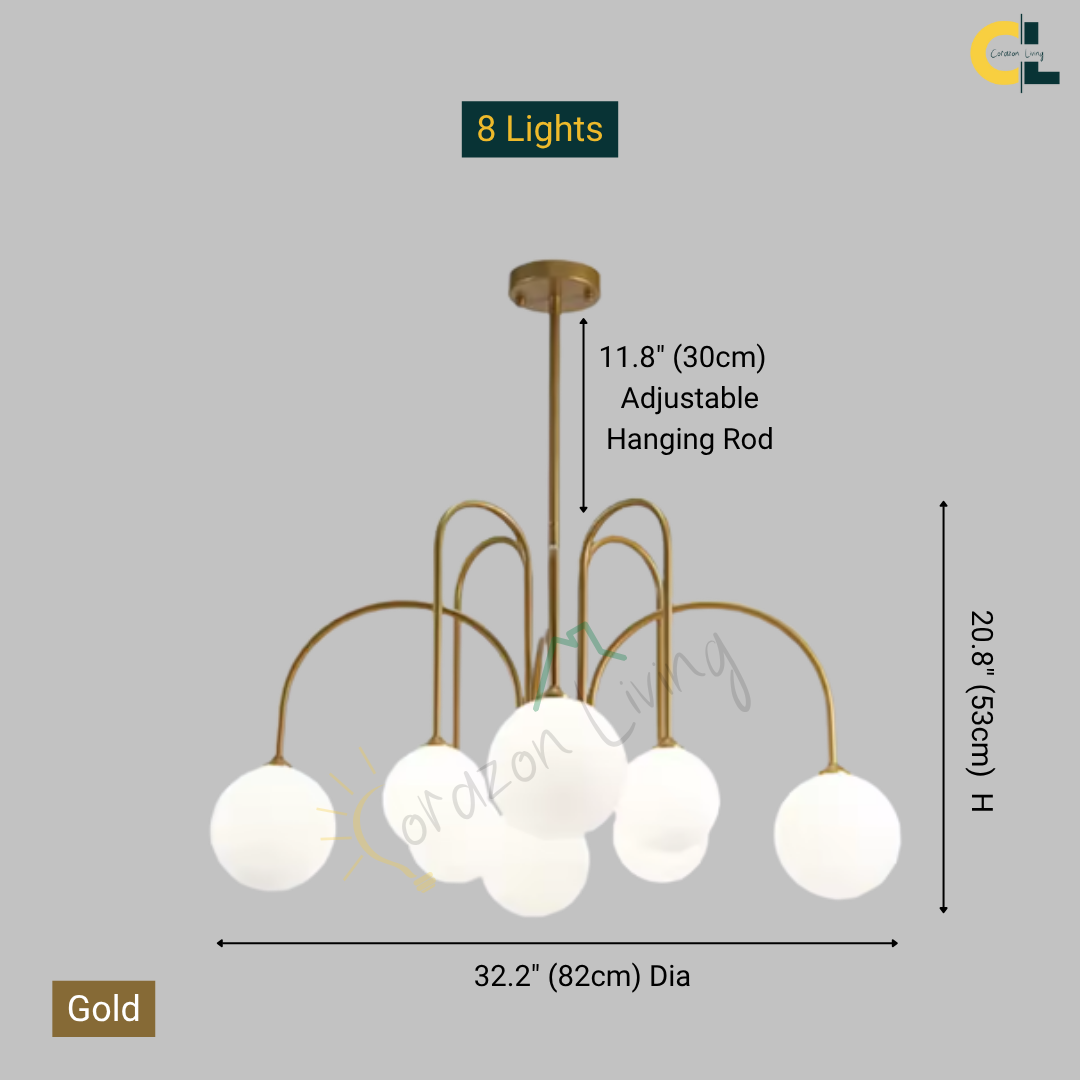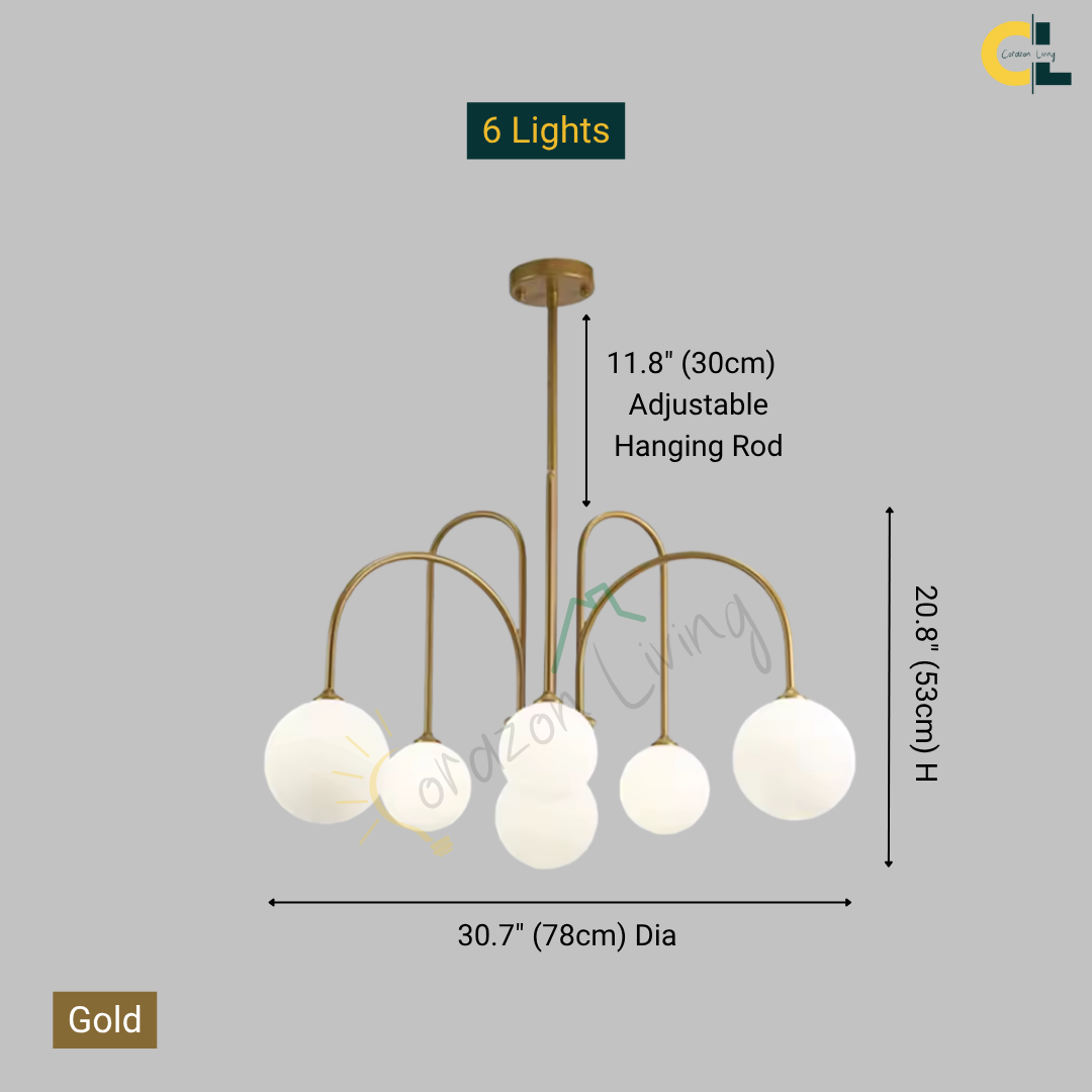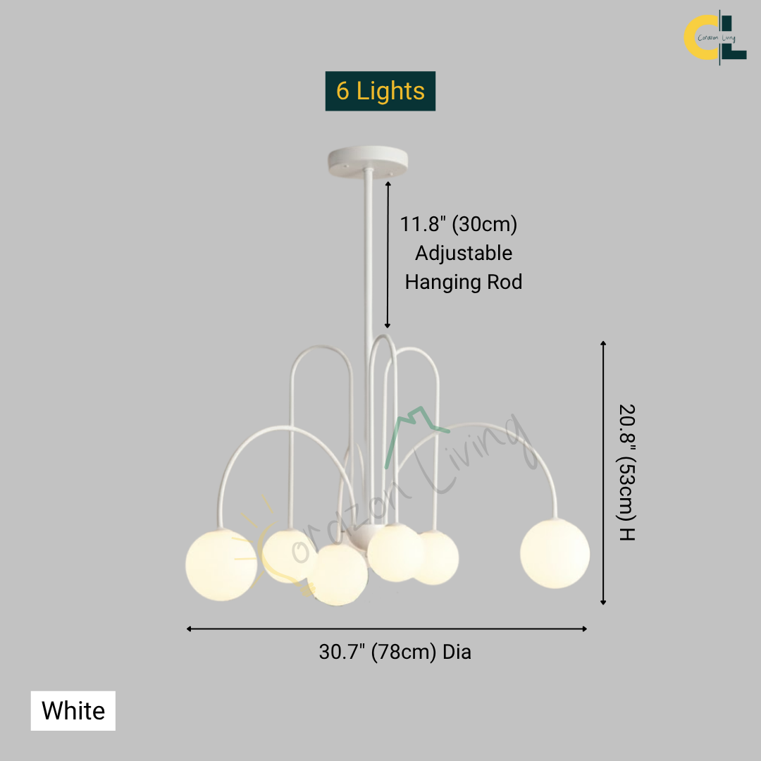 Add a touch of vintage nordic elegance to your interiors with the Periva Chandelier. Designed with smooth milky glass globes and a sleek gold, white or black metal frame, this chandelier brings soft, ambient lighting that elevates any space. Perfect for kitchen islands, dining tables, living rooms, bars, or bedrooms, its minimalist yet artistic form makes it a versatile décor statement. Built with durable craftsmanship and LED bulb compatibility, it combines timeless aesthetics with functional brilliance for a warm, inviting glow.