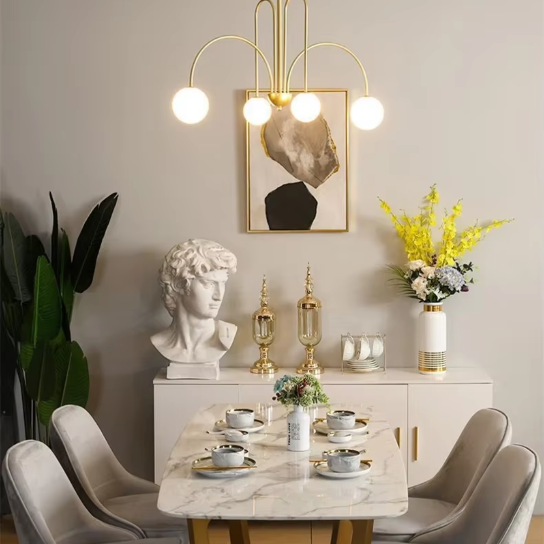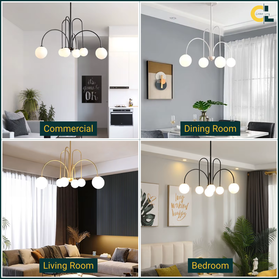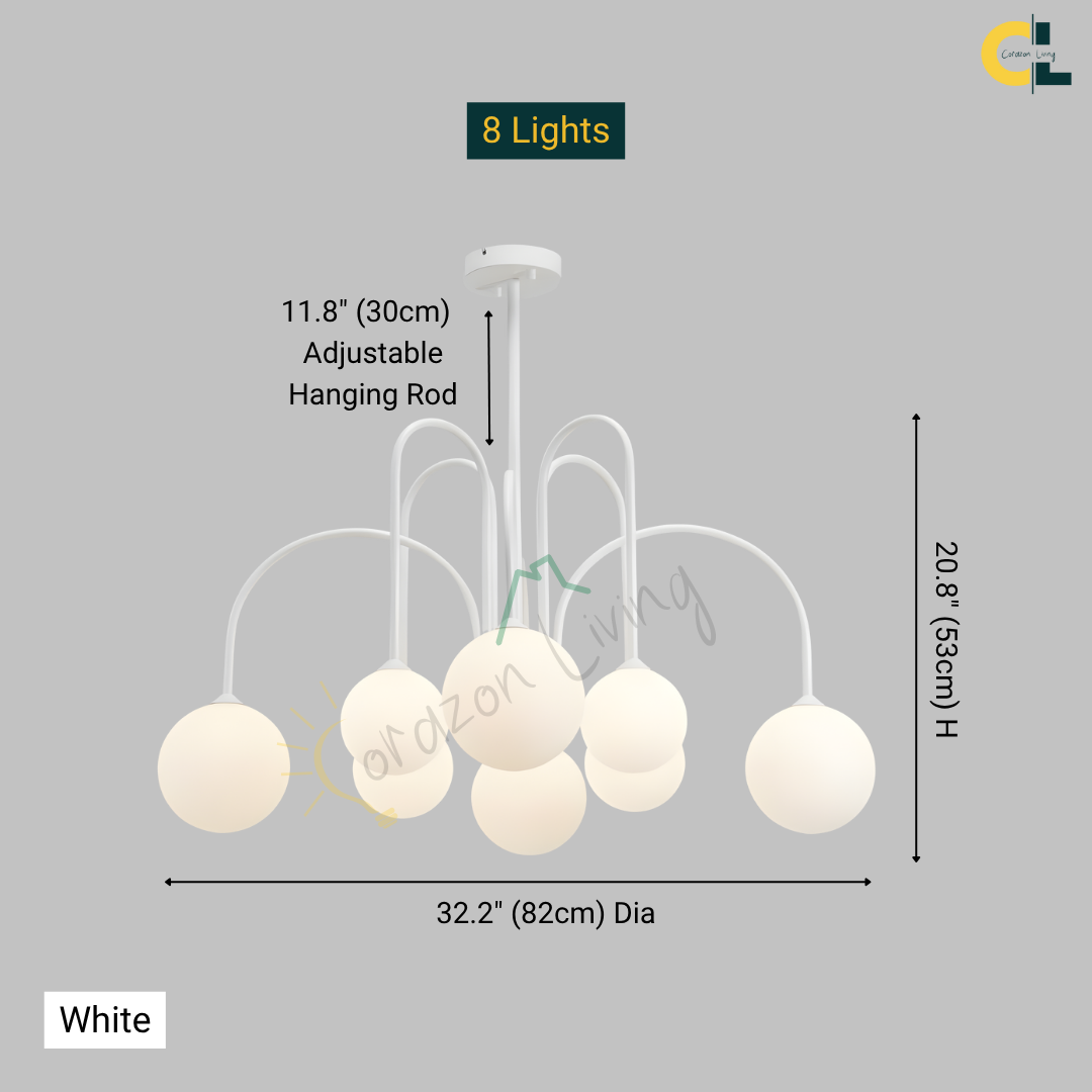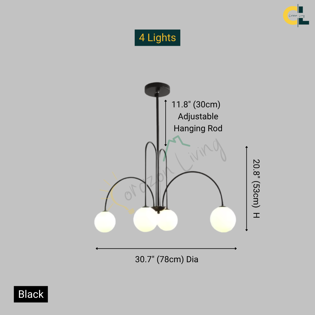 Add a touch of vintage nordic elegance to your interiors with the Periva Chandelier. Designed with smooth milky glass globes and a sleek gold, white or black metal frame, this chandelier brings soft, ambient lighting that elevates any space. Perfect for kitchen islands, dining tables, living rooms, bars, or bedrooms, its minimalist yet artistic form makes it a versatile décor statement. Built with durable craftsmanship and LED bulb compatibility, it combines timeless aesthetics with functional brilliance for a warm, inviting glow.