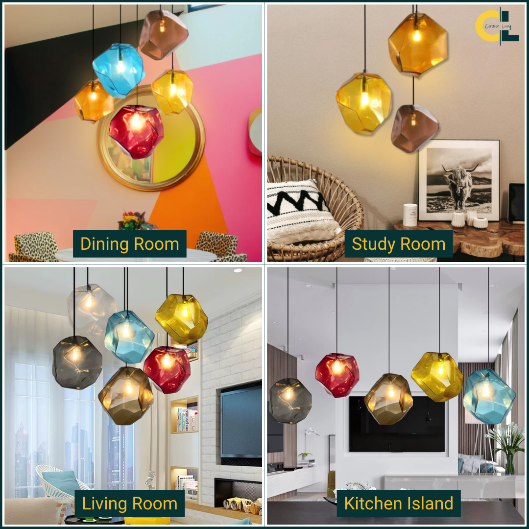 Pirene works beautifully over dining tables, bar counters, and bedside nooks, and it looks especially striking when hung in a pair or clustered for visual rhythm. Compatible with G4 LED bulbs, it offers energy-smart illumination while keeping the light soft and comfortable. Whether you’re styling a home or a hospitality setting, Pirene brings a calm statement with a colorful edge.