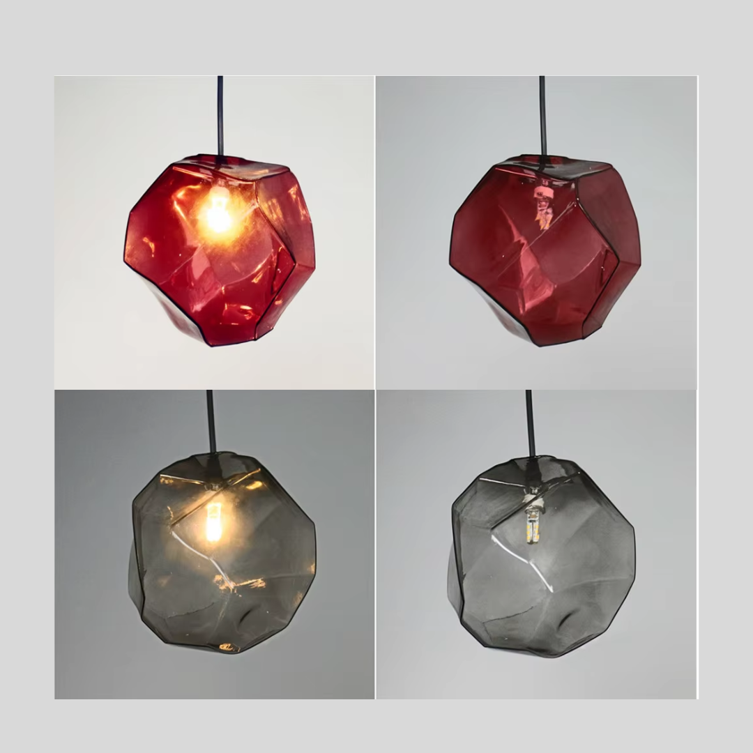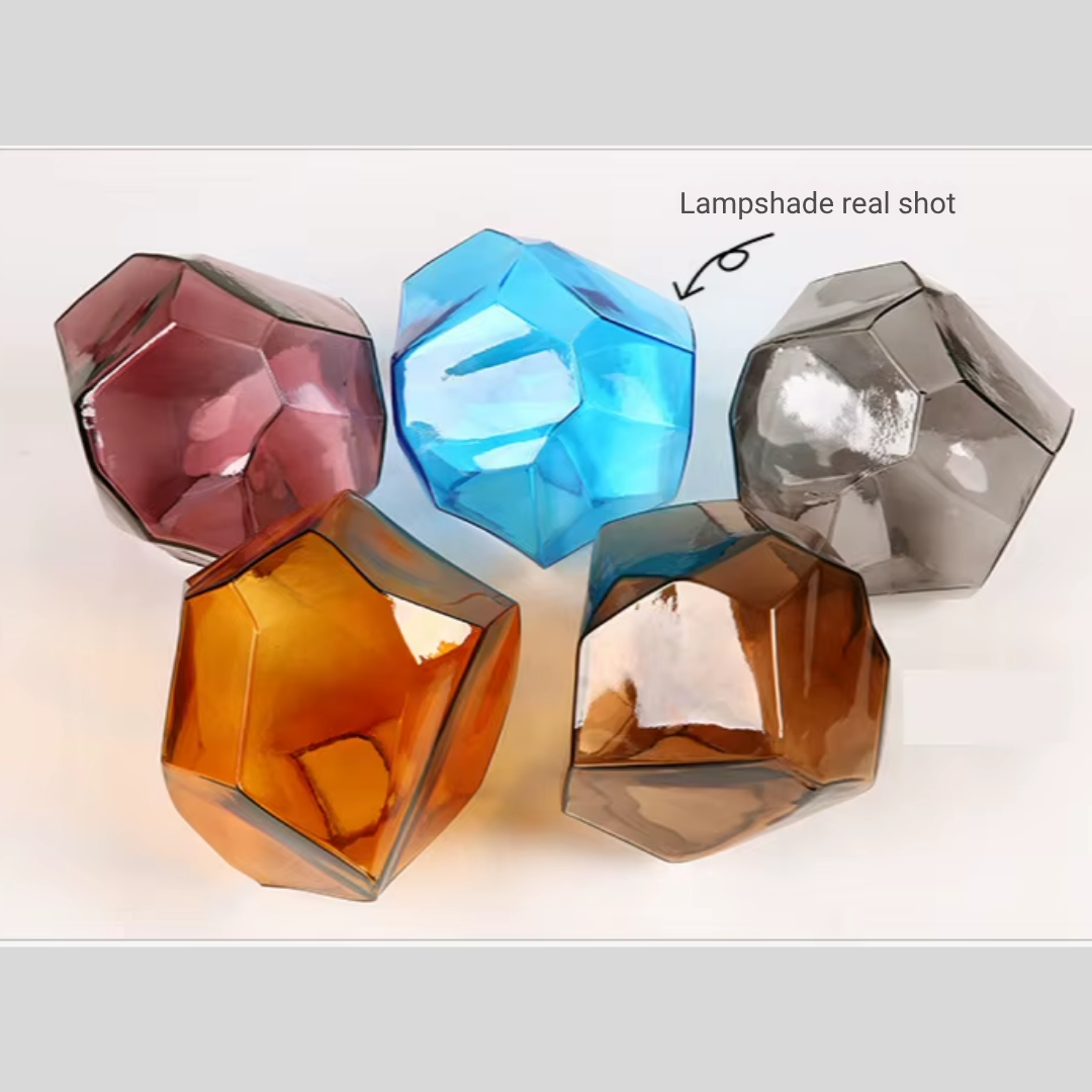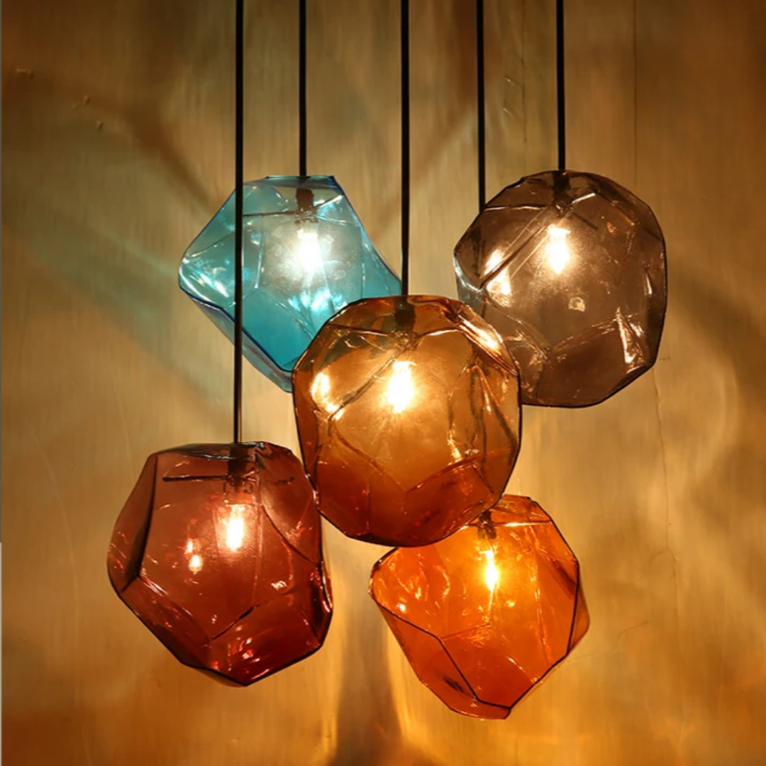 Add a refined pop of color to your space with Pirene, a modern geometric light fixture designed with sculpted, stone-shaped stained glass. Each shade blends Nordic restraint with artistic character, casting a warm, ambient glow that feels inviting rather than loud.