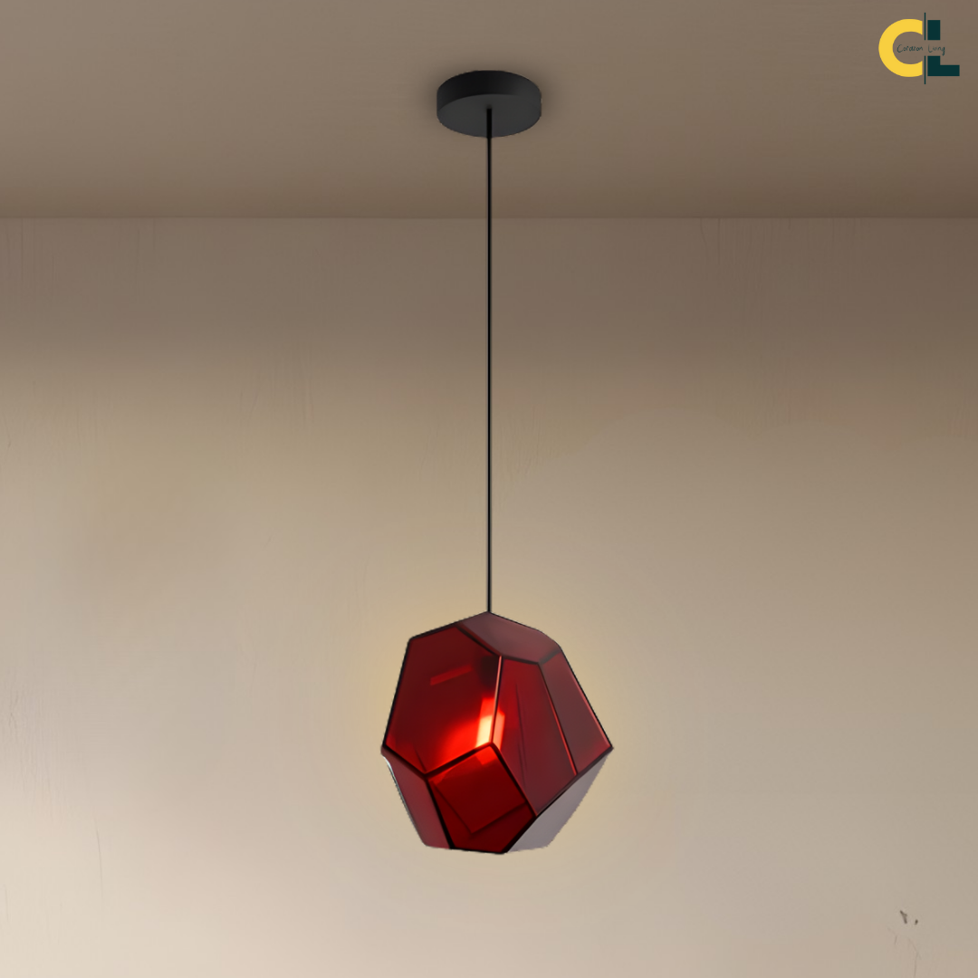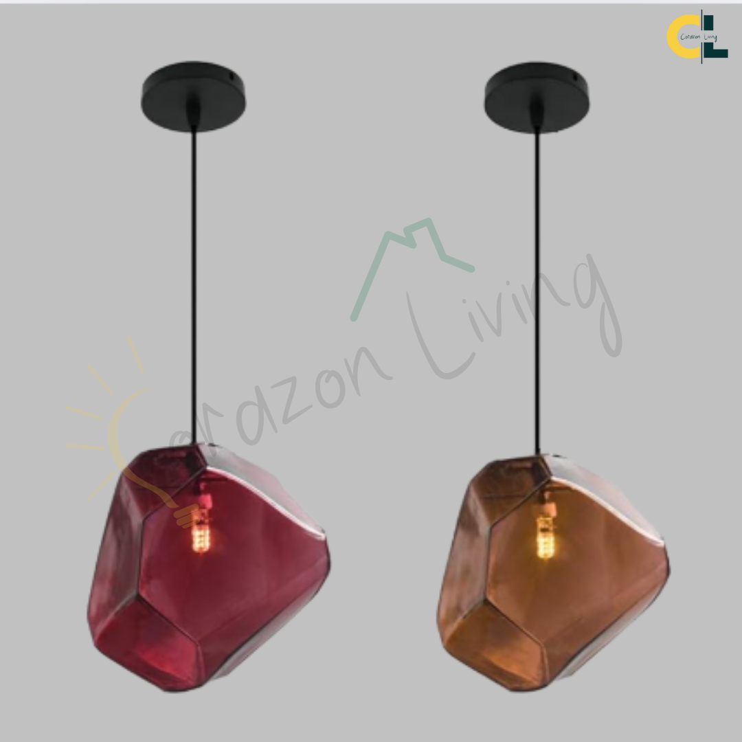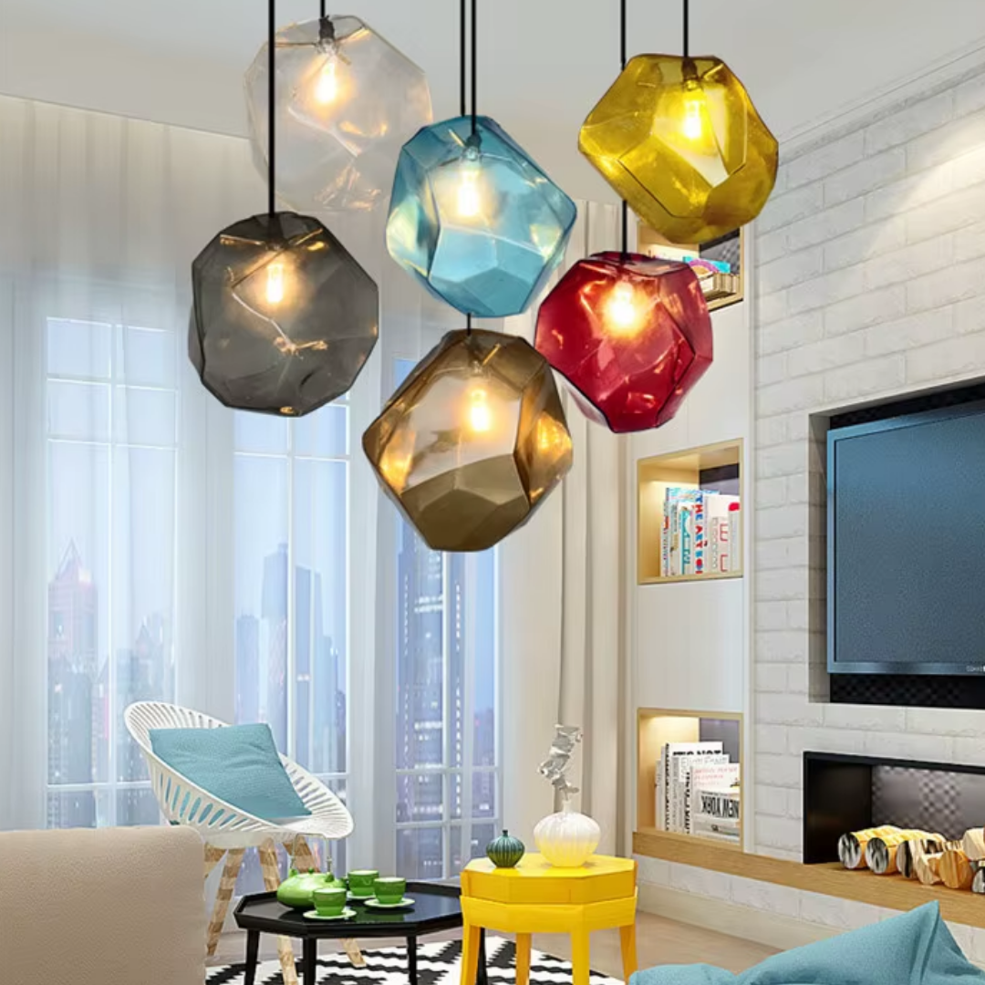 Add a refined pop of color to your space with Pirene, a modern geometric light fixture designed with sculpted, stone-shaped stained glass. Each shade blends Nordic restraint with artistic character, casting a warm, ambient glow that feels inviting rather than loud.