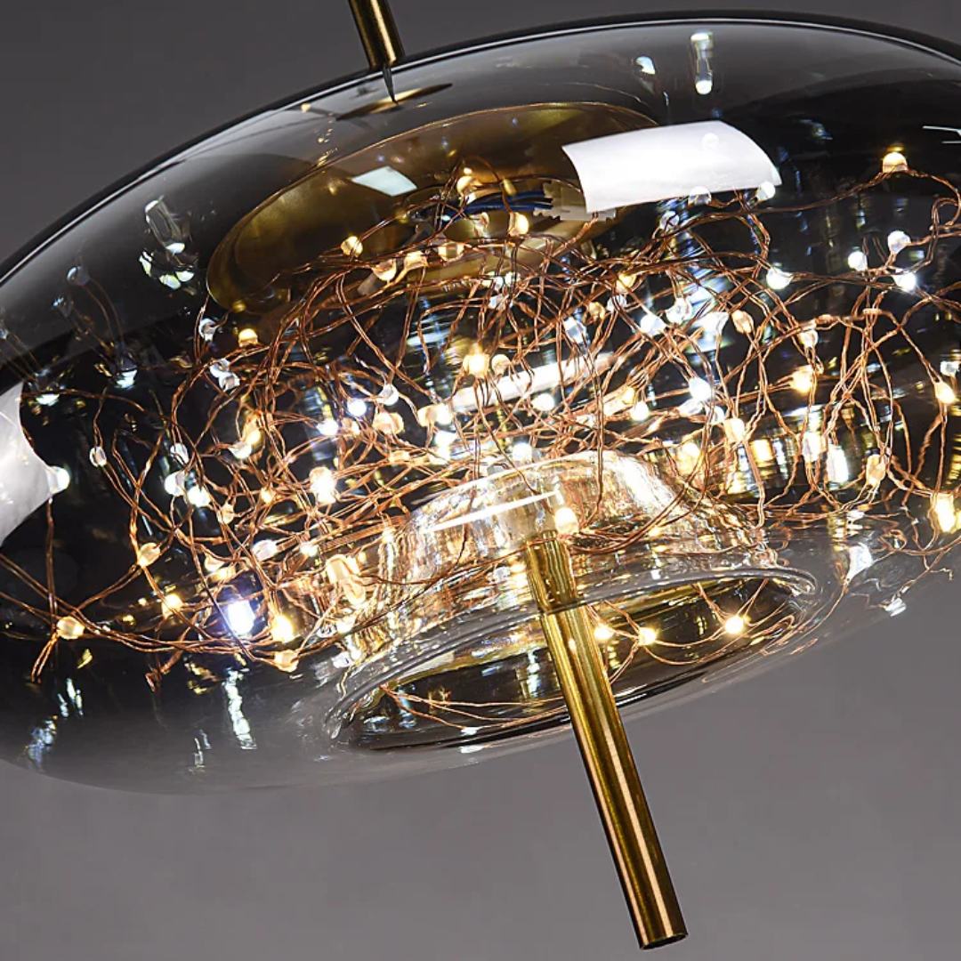 Starlit Glass Glow – Smoky glass embedded with soft star like points creates a celestial ambiance, casting a dreamy, magical light across your space.