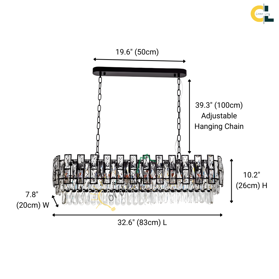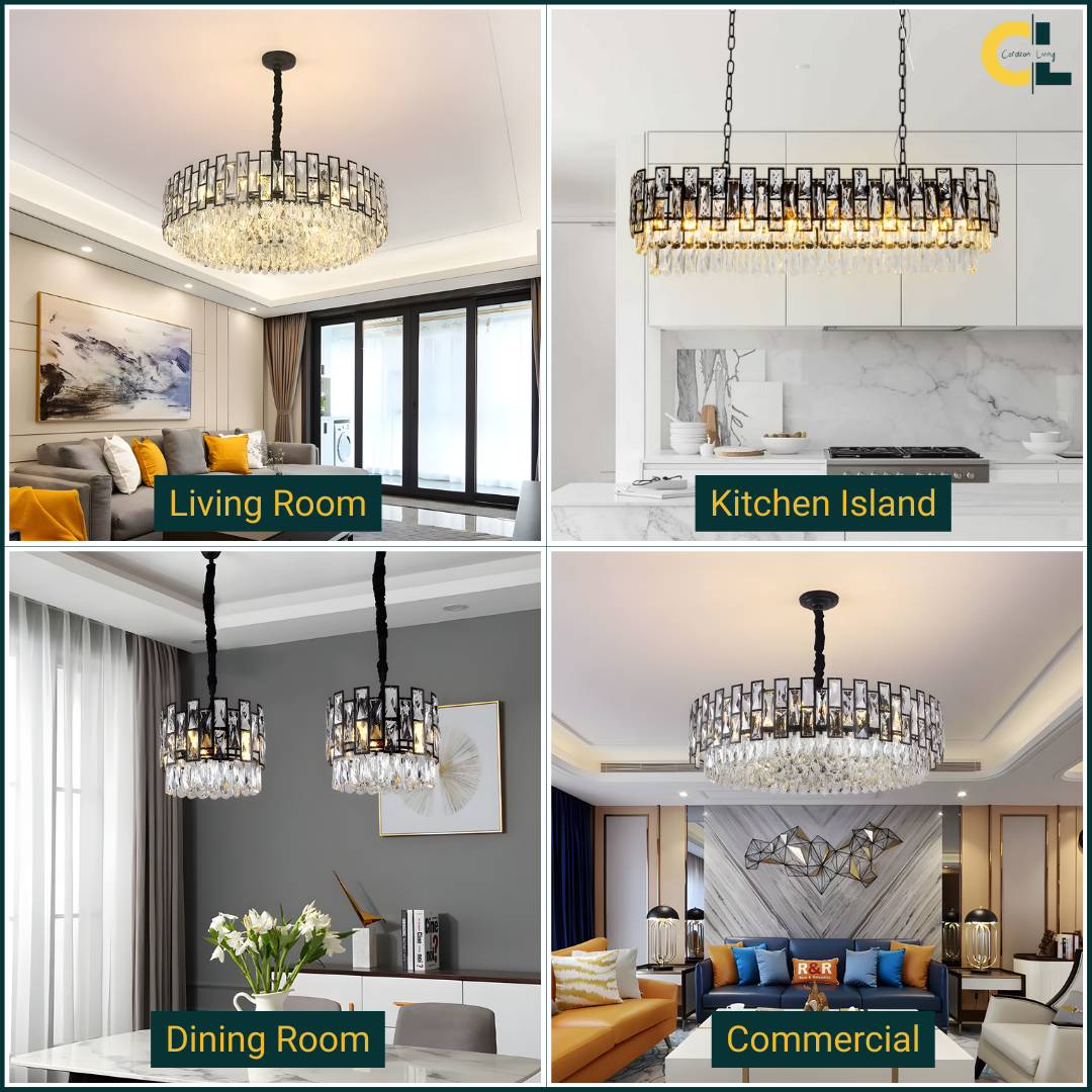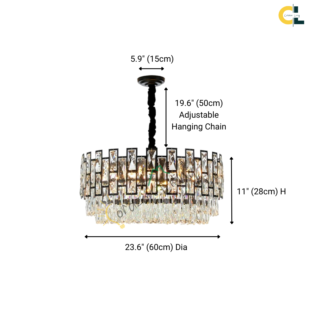 The Ravessa Chandelier brings modern luxury to any room with its striking blend of metal craftsmanship and sparkling crystal accents. Designed to make a statement, this chandelier delivers both sophistication and ambient warmth. Its sleek Black finish pairs effortlessly with contemporary, minimalist, and upscale interiors. Featuring E14 replaceable LED bulbs, the Ravessa provides Warm White 3000K or Cool White 6000K illumination, Dimmable (compatible with dimmer switch) functionality, allowing you to create the perfect atmosphere. Its IP20 rating ensures reliable indoor performance, making it ideal for dining rooms, living spaces, bedrooms, and grand entryways.