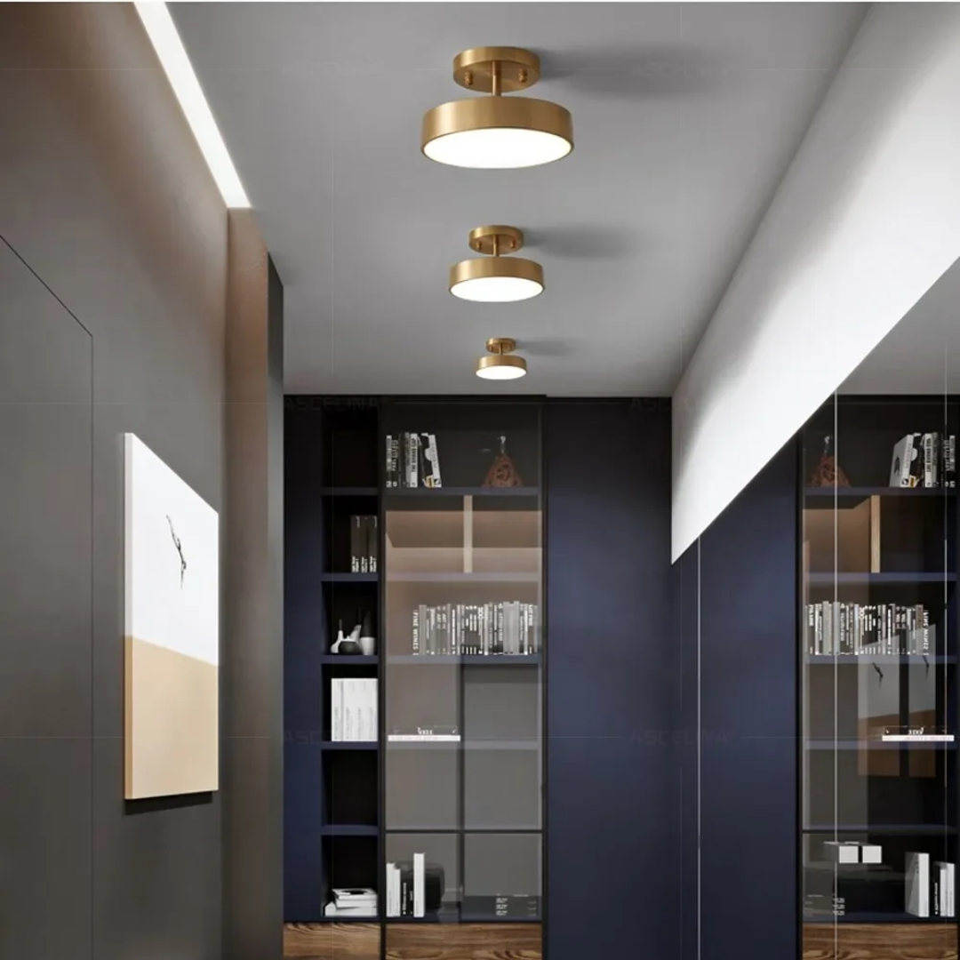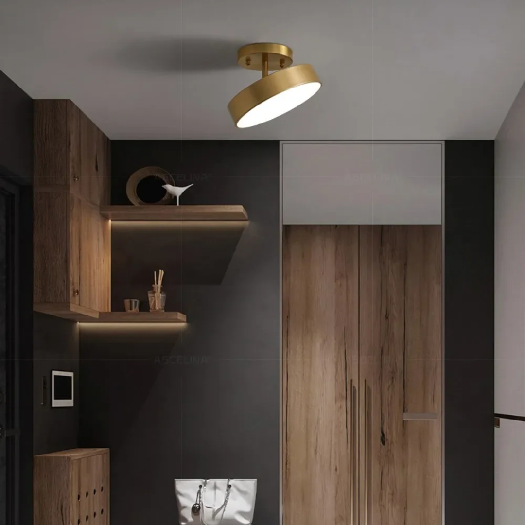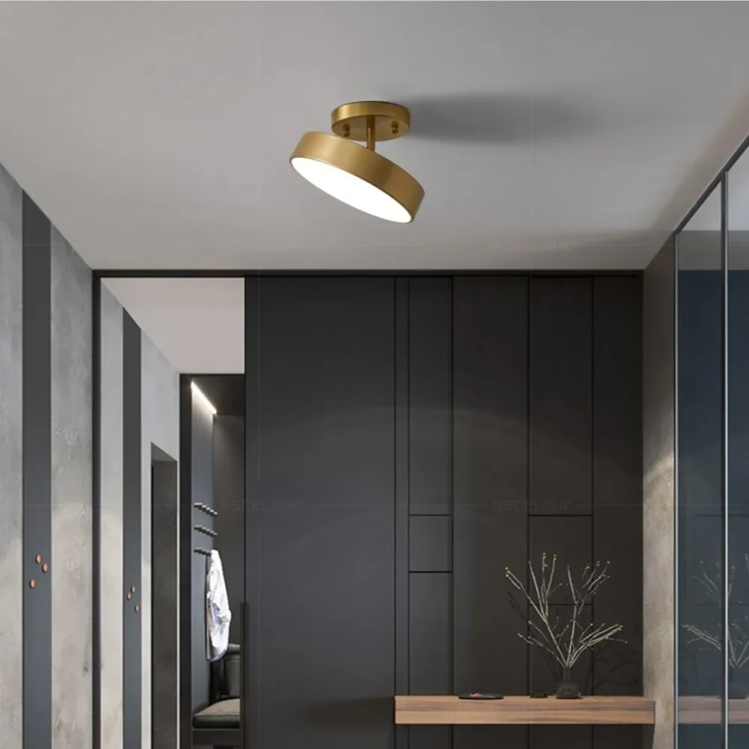Bring modern elegance to your space with the Rozen Nordic LED Ceiling Lamp, a sleek and stylish lighting fixture designed for modern interiors. Featuring a minimalist round form with an adjustable angle design, this ceiling lamp is perfect for hallways, bedrooms, living rooms, studies, cloakrooms, and front porches. Made with a durable metal body in luxury gold or classic black, it delivers soft, glare-free illumination through high-quality LED lighting. Its compact profile and refined look make it an ideal choice for enhancing both functionality and décor in tight or transitional spaces.