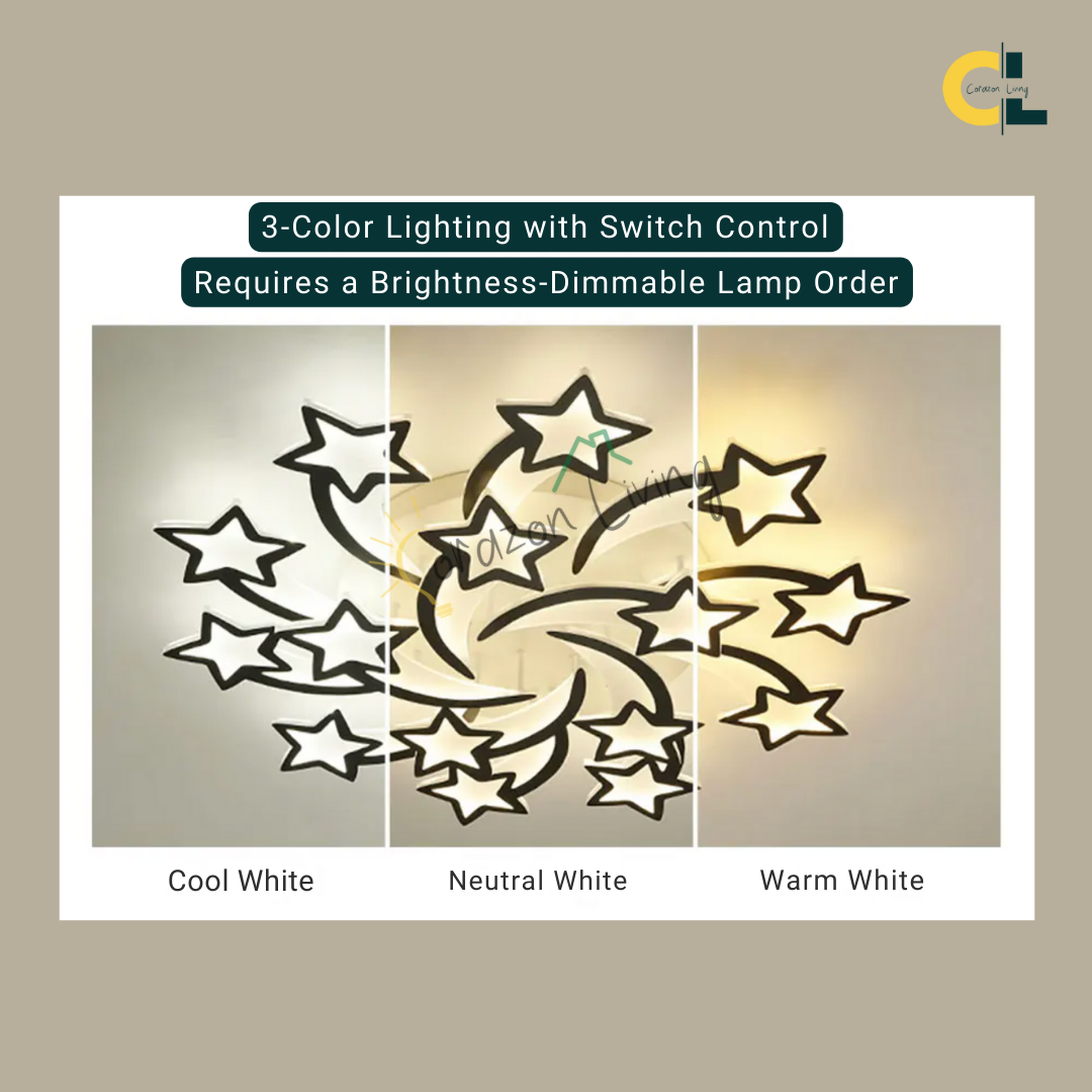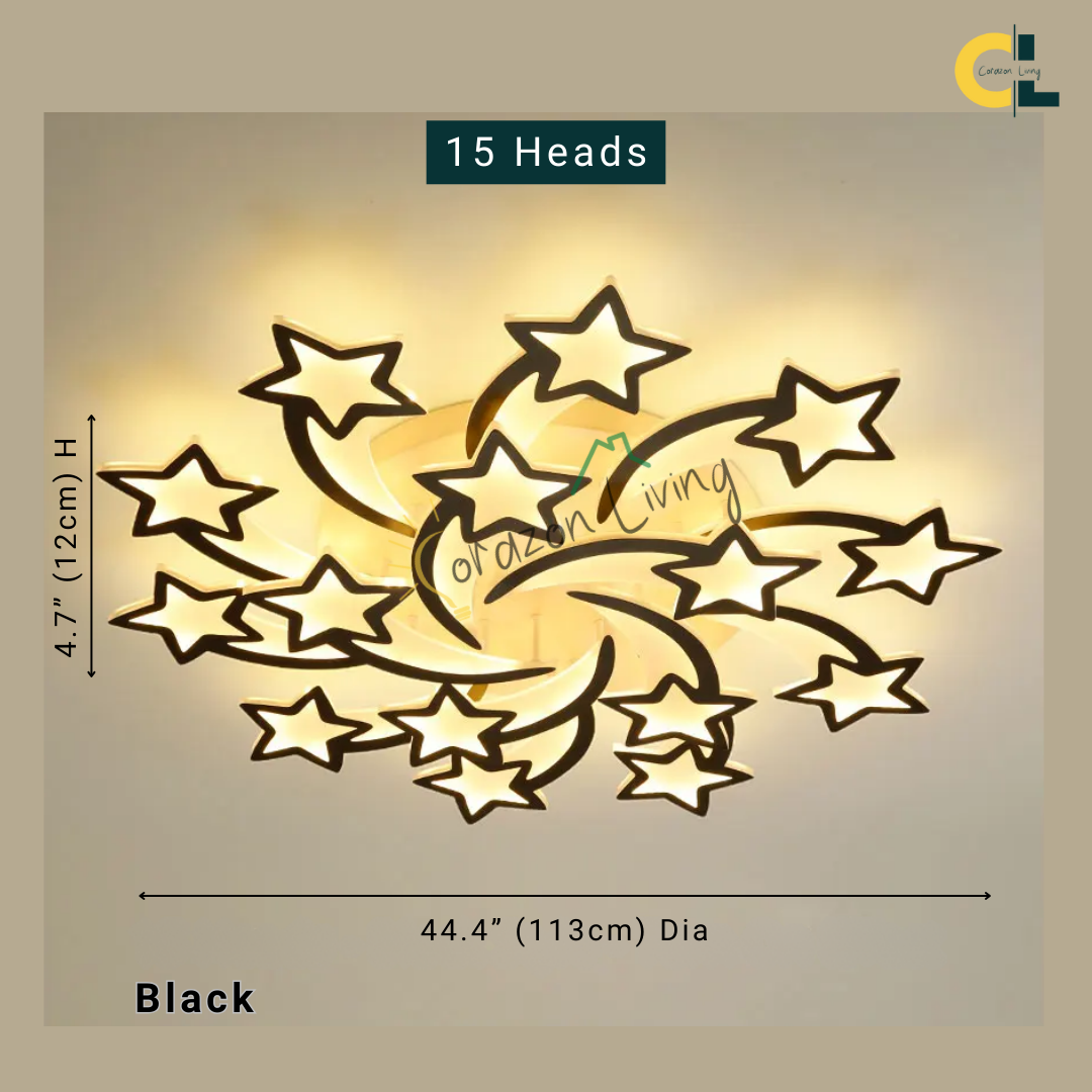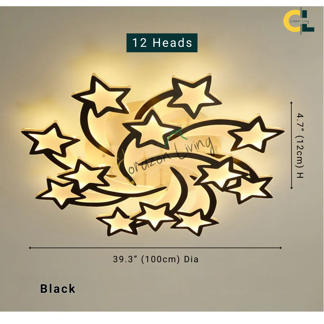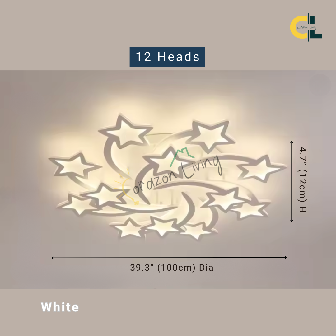 Shooting Star is a creative stars-inspired LED ceiling light designed to bring a touch of the cosmos into your home. Crafted as a high-end decorative lighting fixture, it features a sleek, modern design paired with a convenient remote control, allowing you to adjust brightness and color to suit any mood. Perfect for bedrooms, living rooms, dining areas, kids’ rooms, studies, hallways, and salons, Shooting Star blends elegance and functionality—illuminating your space with the enchanting glow of a starlit sky.