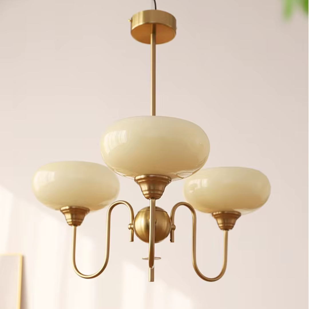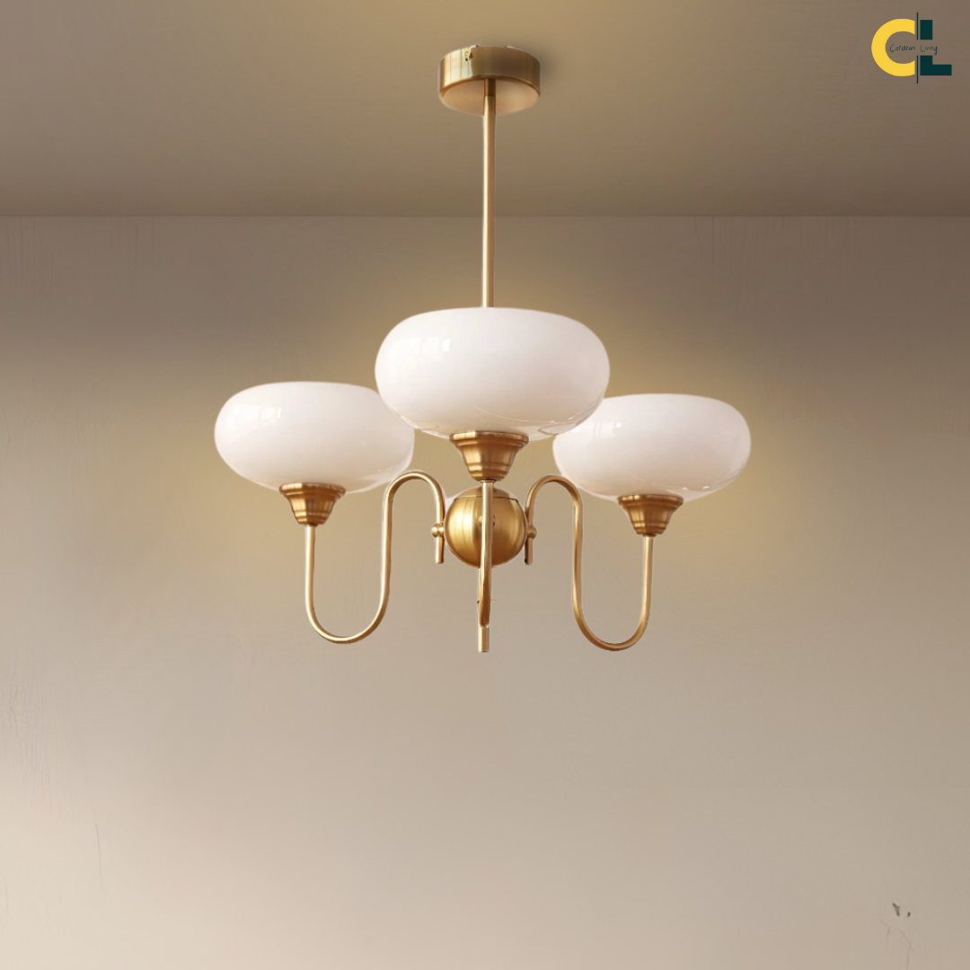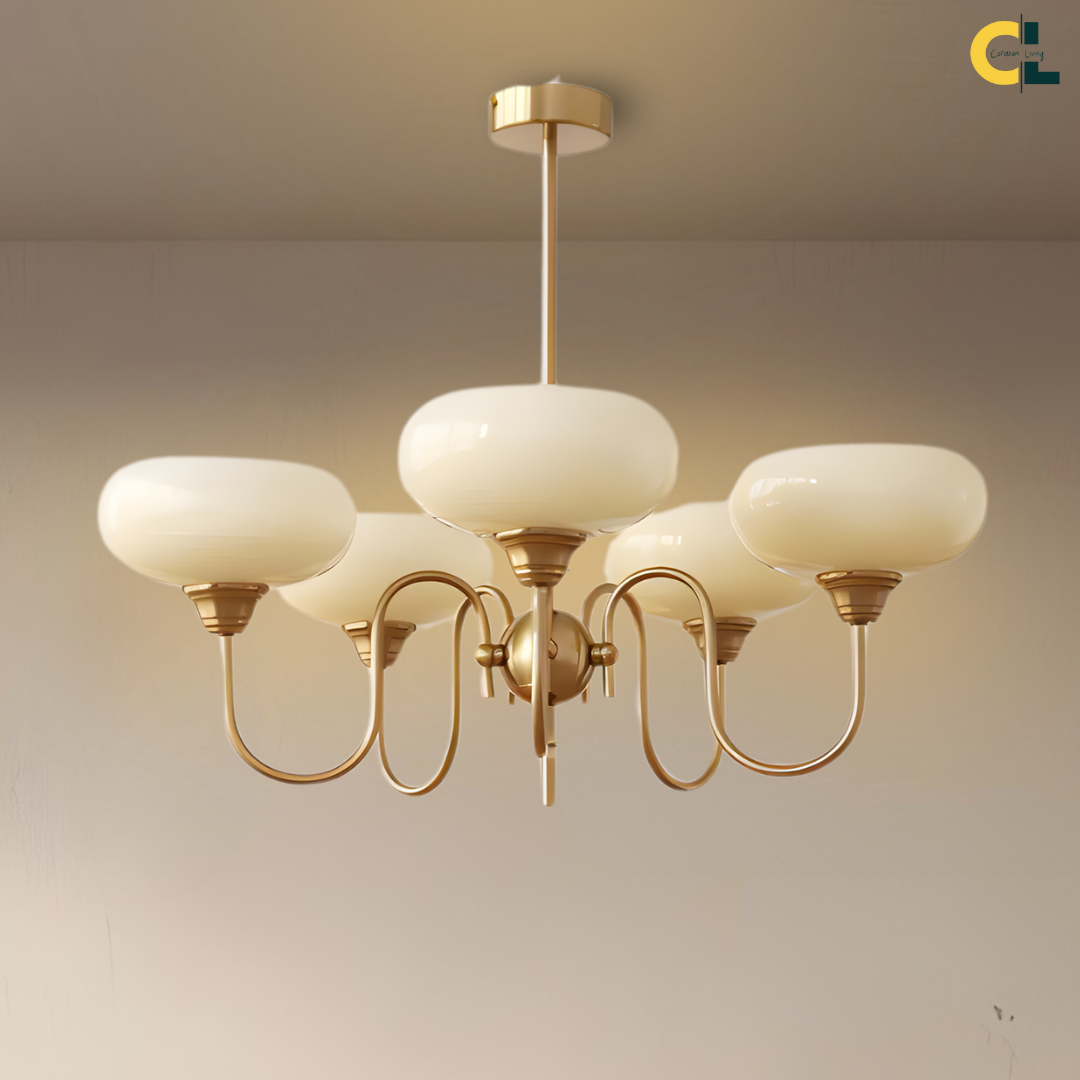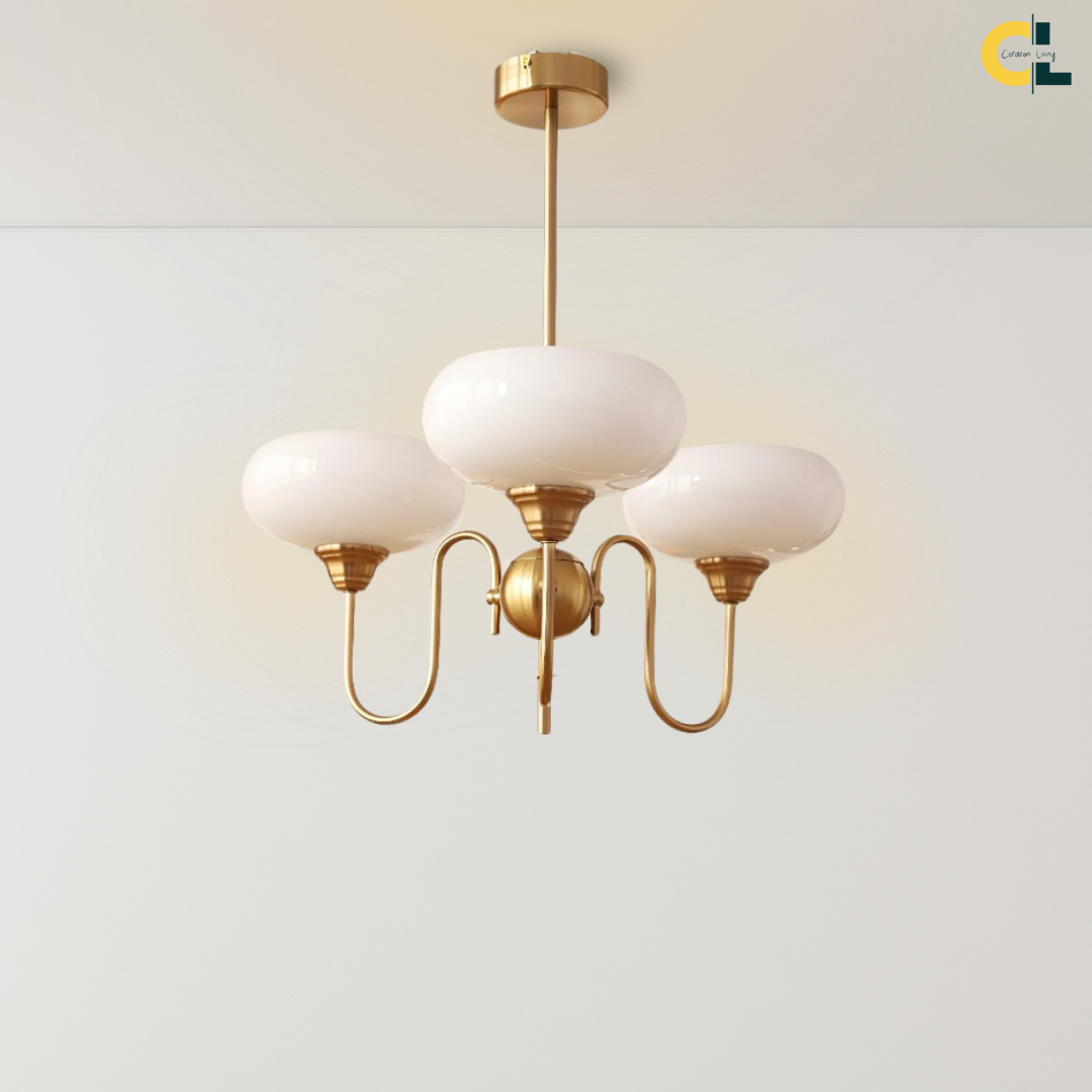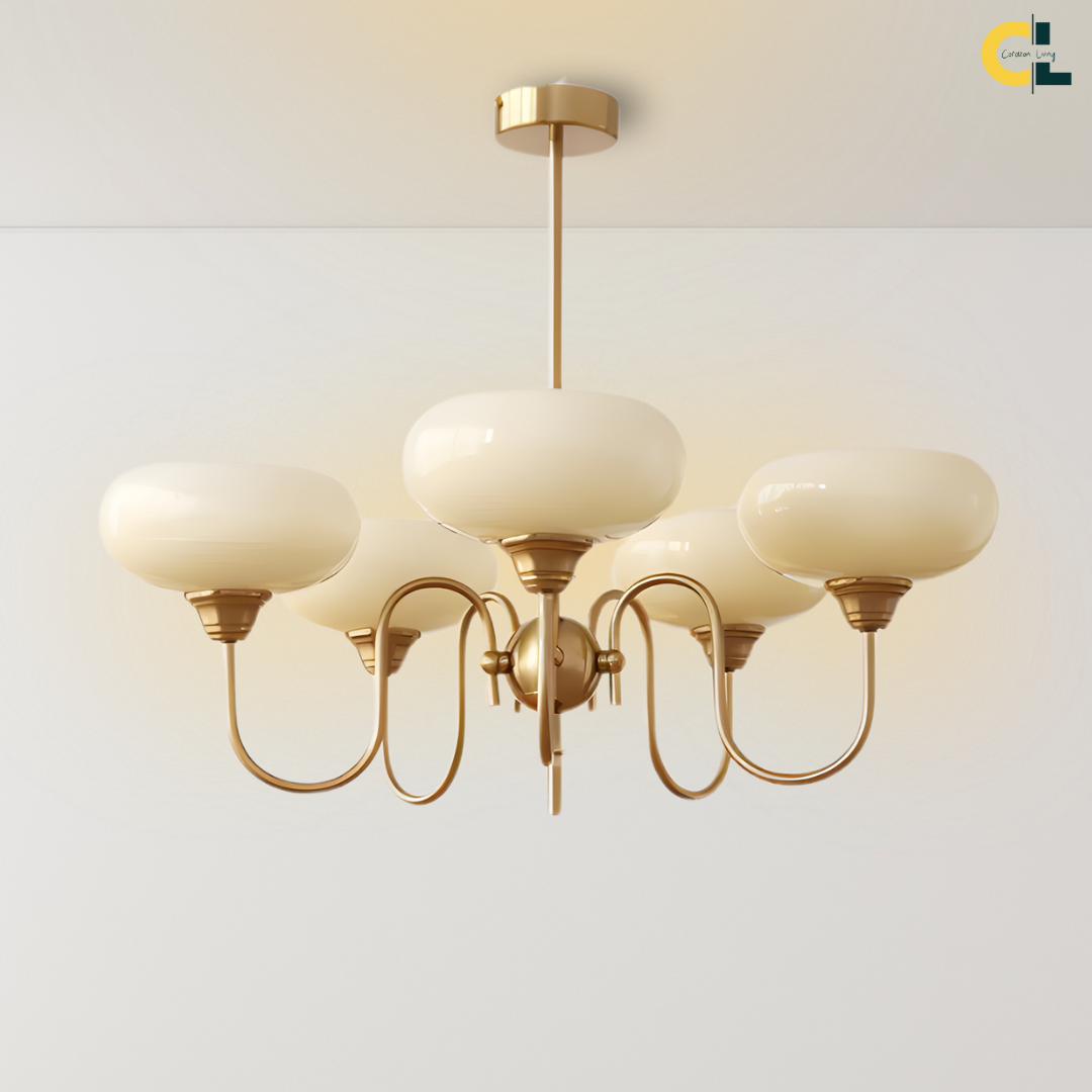 Elevate your living space with the Simmora Bauhaus Persimmon Chandelier, a perfect fusion of vintage charm and Nordic elegance. Crafted with premium brass-finished metal and smooth creamy persimmon glass shades, this chandelier adds warmth and sophistication to any room. Its curving arms and balanced design evoke a subtle medieval aesthetic while fitting seamlessly in modern interiors. Ideal for restaurants, dining areas, living rooms, bedrooms, or studies, it brings a soft, inviting glow and a statement of refined taste.