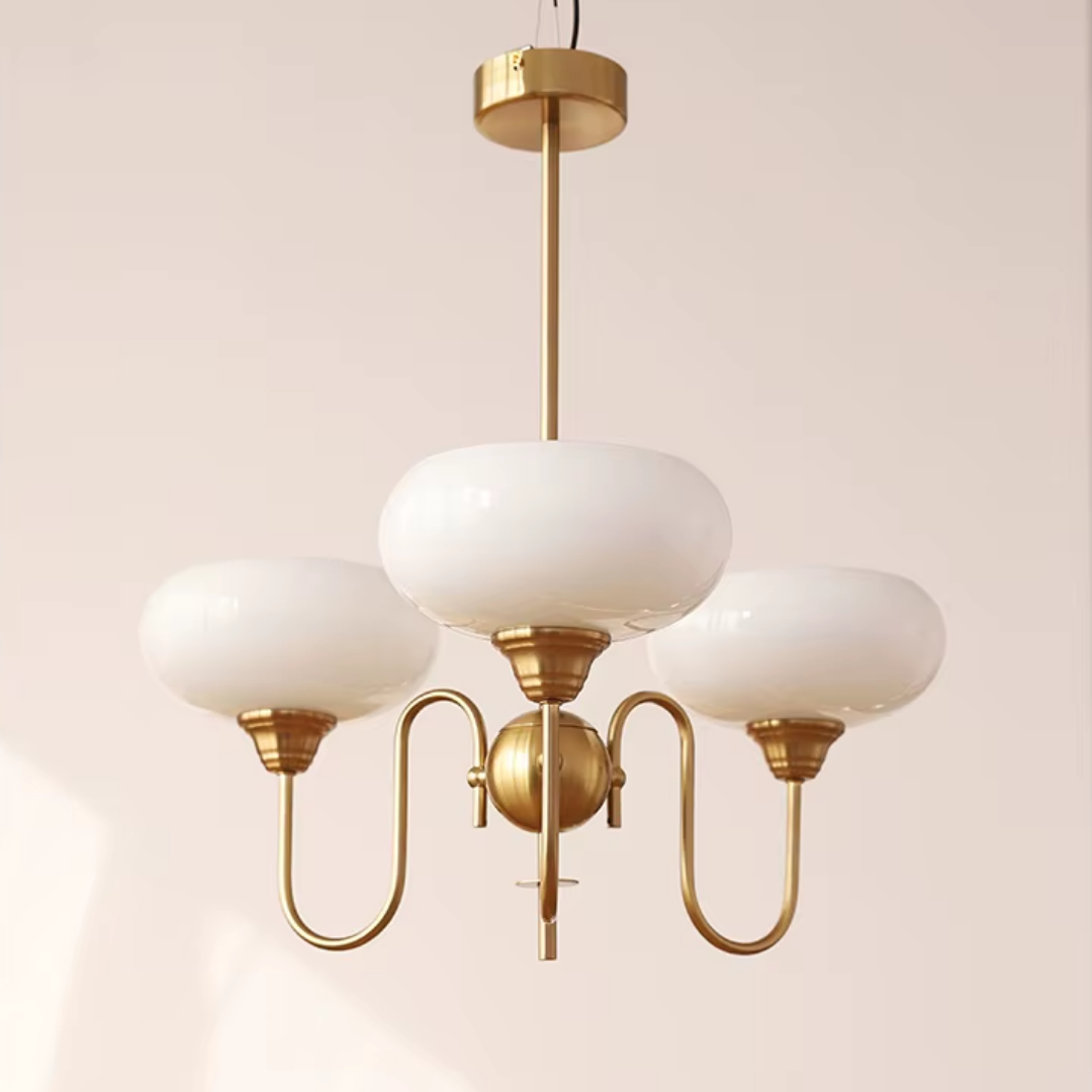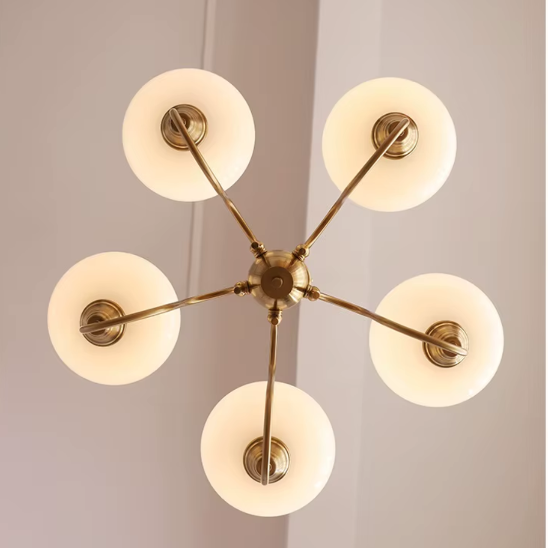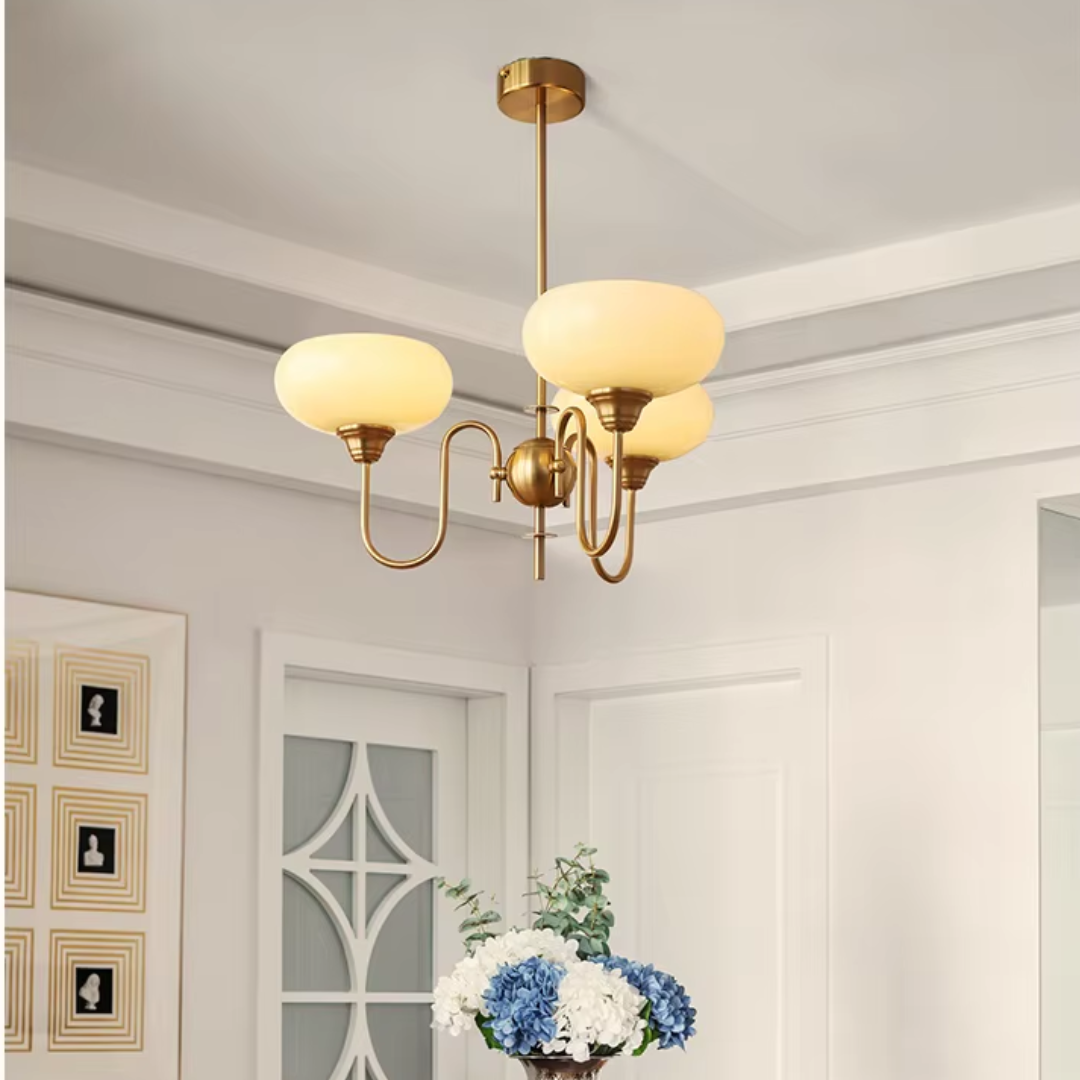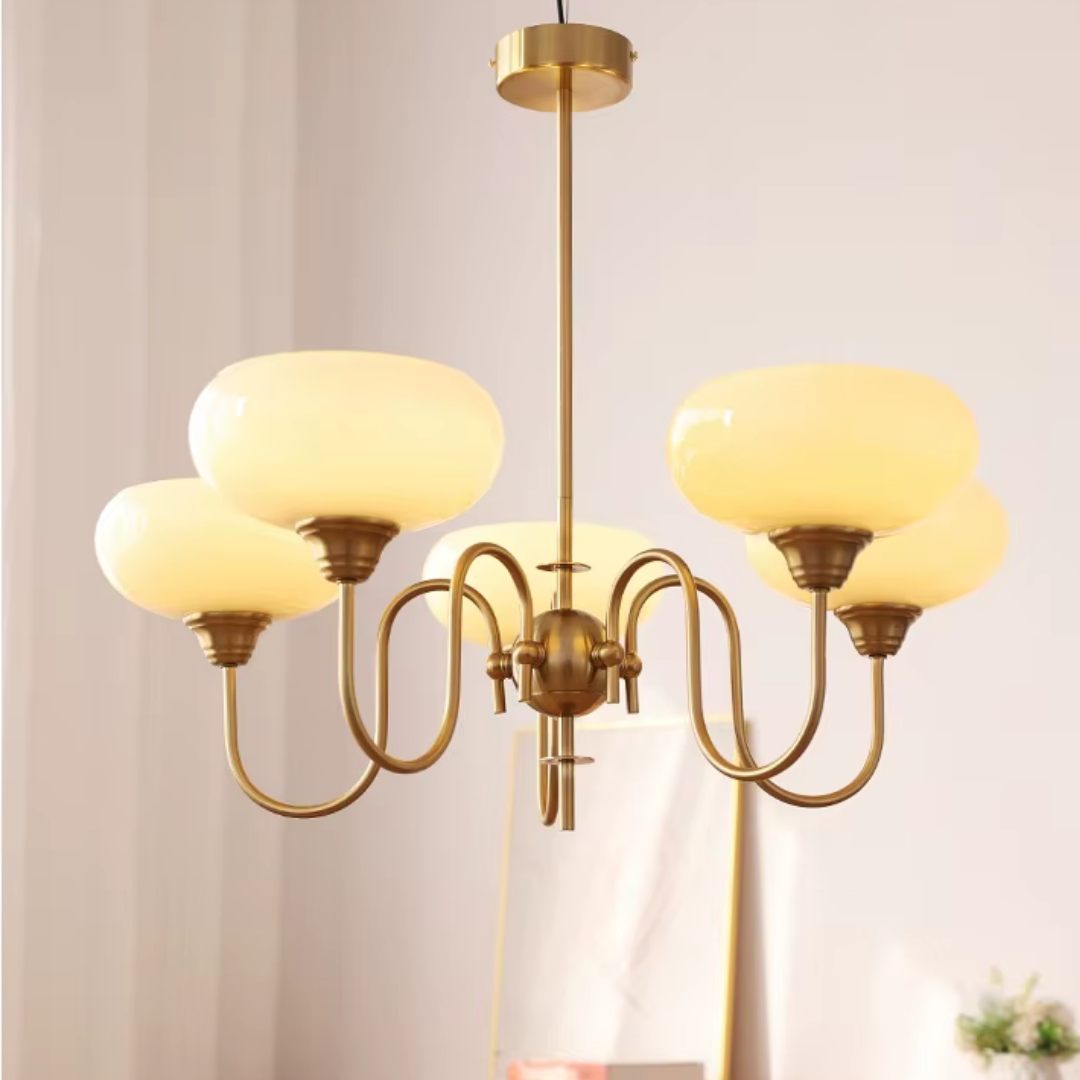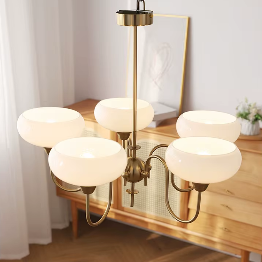 Elevate your living space with the Simmora Bauhaus Persimmon Chandelier, a perfect fusion of vintage charm and Nordic elegance. Crafted with premium brass-finished metal and smooth creamy persimmon glass shades, this chandelier adds warmth and sophistication to any room. Its curving arms and balanced design evoke a subtle medieval aesthetic while fitting seamlessly in modern interiors. Ideal for restaurants, dining areas, living rooms, bedrooms, or studies, it brings a soft, inviting glow and a statement of refined taste.