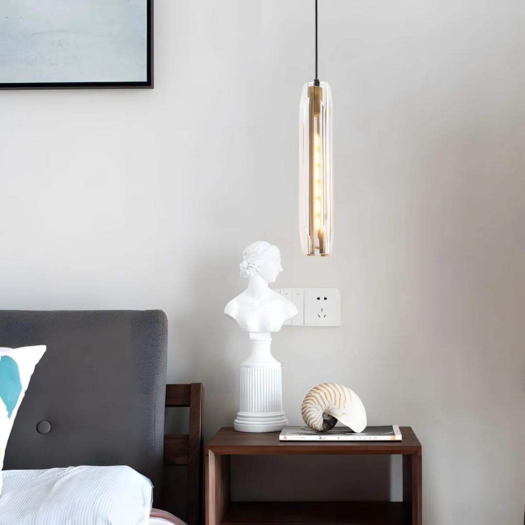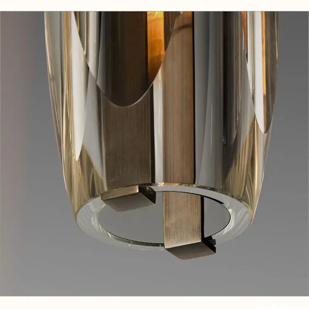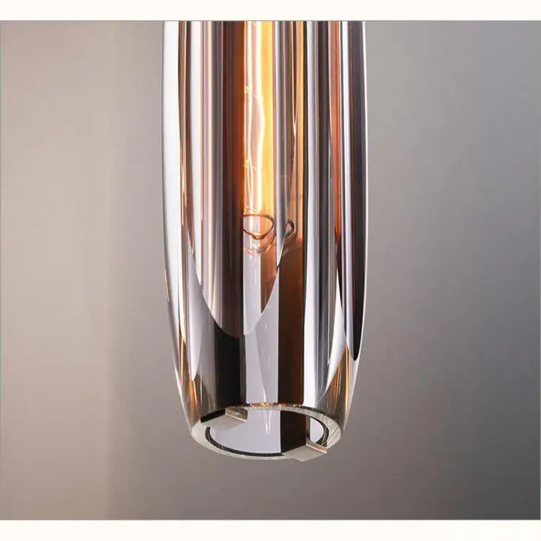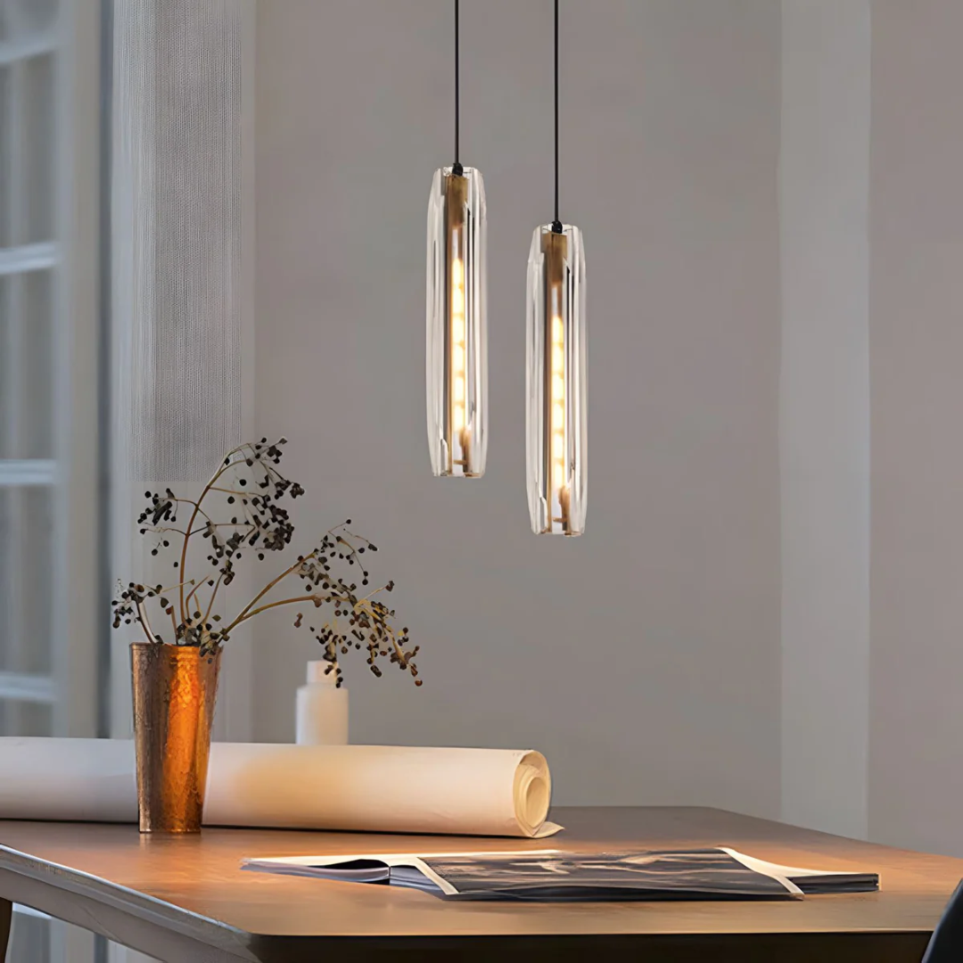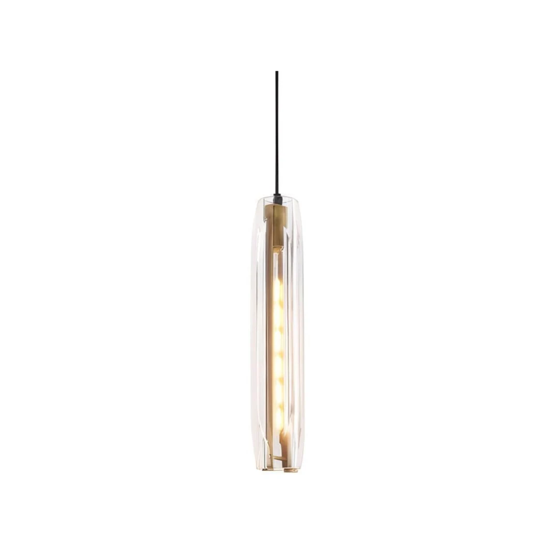A sleek pendant light combining lustrous K9 crystals with a refined brass finish for a sophisticated glow.