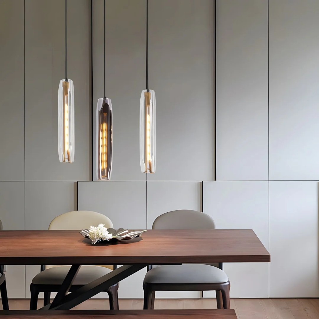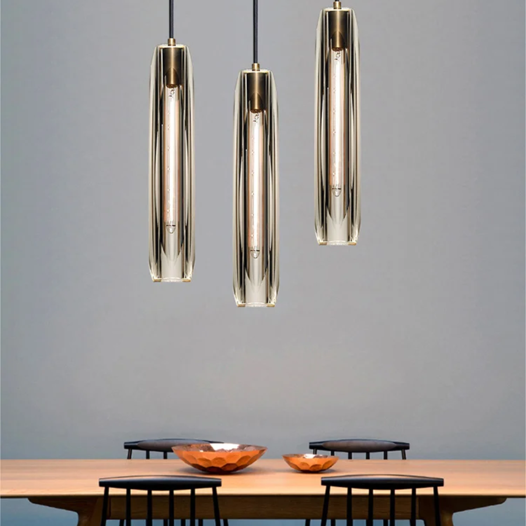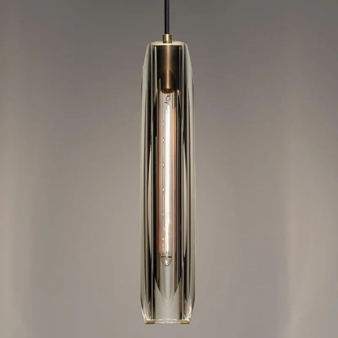 Elevate your interior with the Sorell – Pendant Light, a striking blend of post-modern sophistication and refined craftsmanship. Featuring a sleek brass canopy and fixture, this pendant is adorned with a precision-cut K9 crystal shade—available in smoke or clear—offering a mesmerizing play of light. Designed to house an E14 bulb, it pairs beautifully with a long 5W tungsten filament LED to deliver both ambient warmth and sculptural beauty.