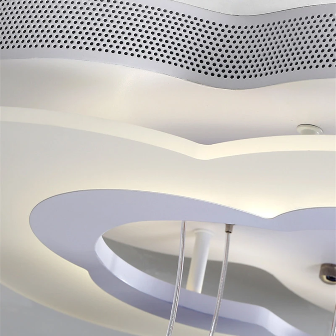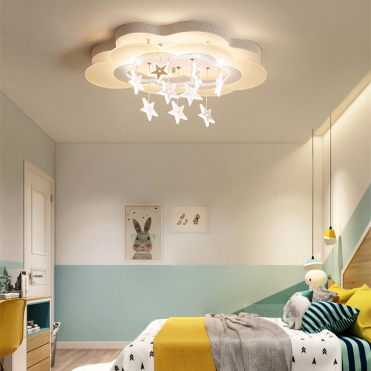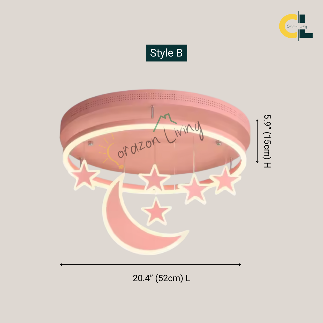 LED ceiling light features a whimsical white cloud design with hanging stars, creating a dreamy and enchanting ambiance for any room.