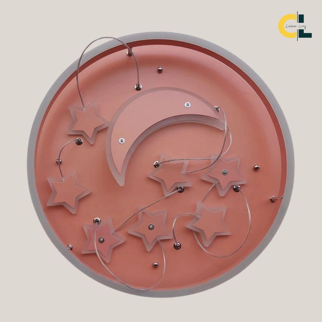 Add a touch of magic to your child’s room with Starlit Cloud, the enchanting ceiling light that blends whimsical charm with practical lighting. Its dreamy cloud silhouette adorned with dangling stars creates a captivating focal point, while energy-efficient LED bulbs provide bright, even illumination—perfect for reading, playing, or winding down at bedtime.