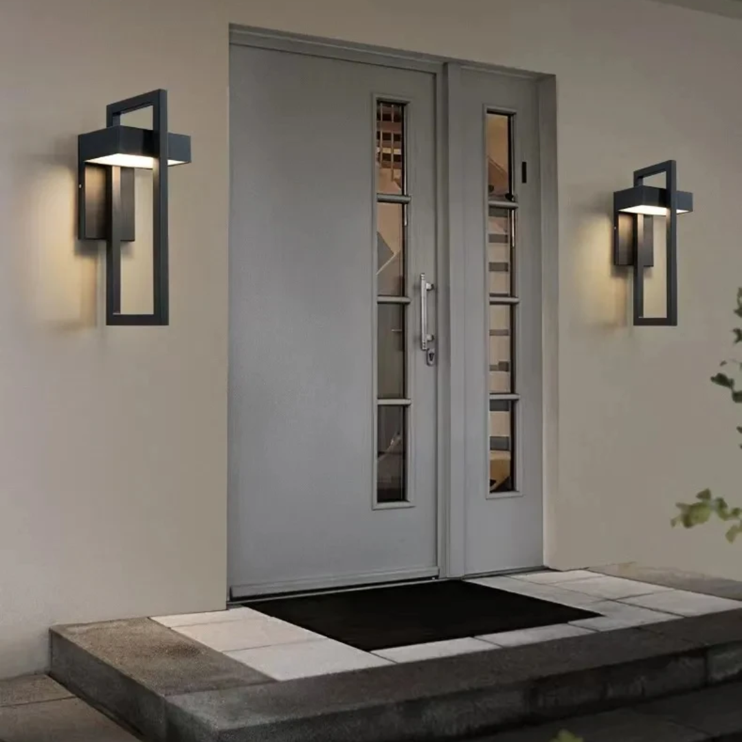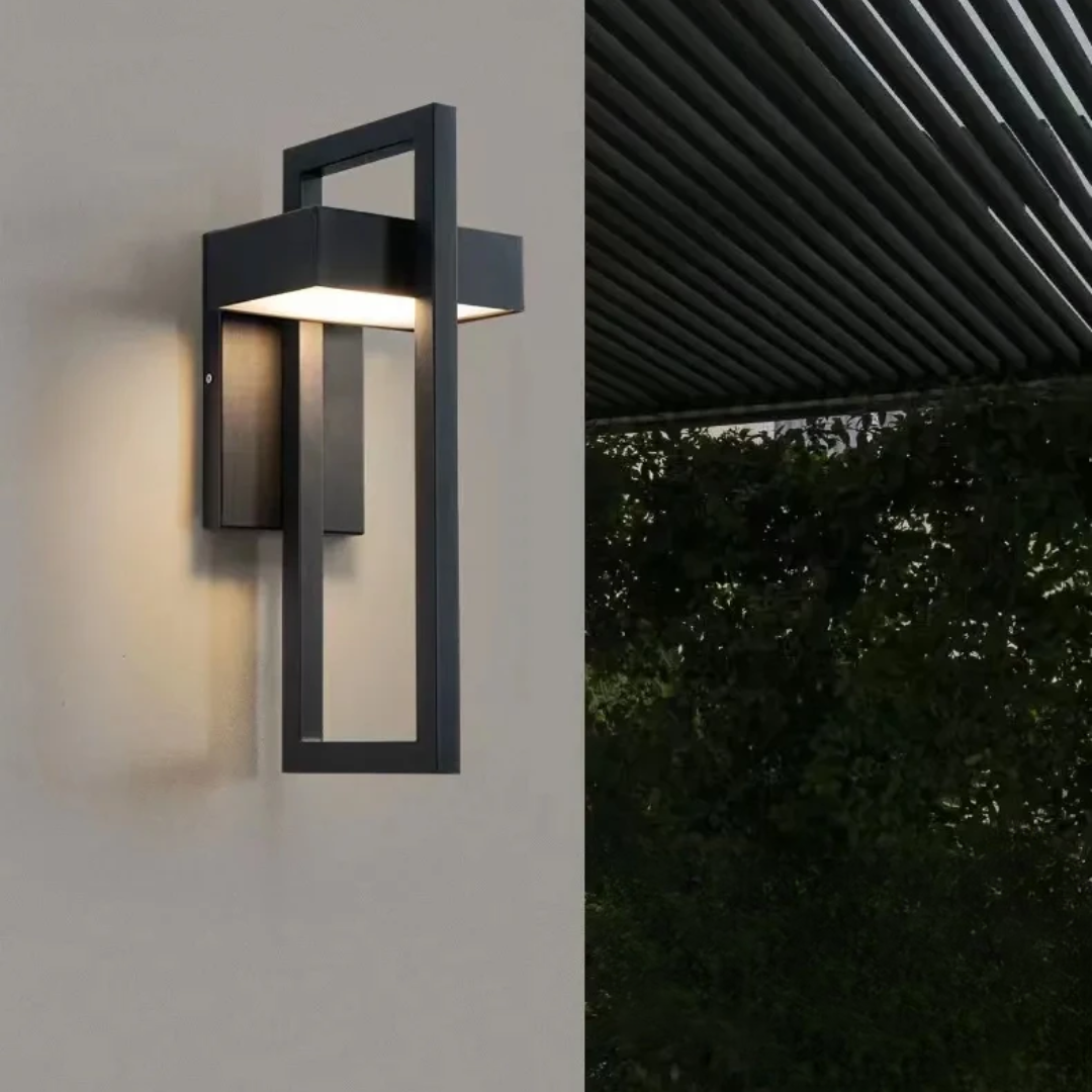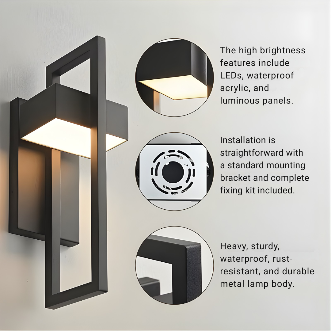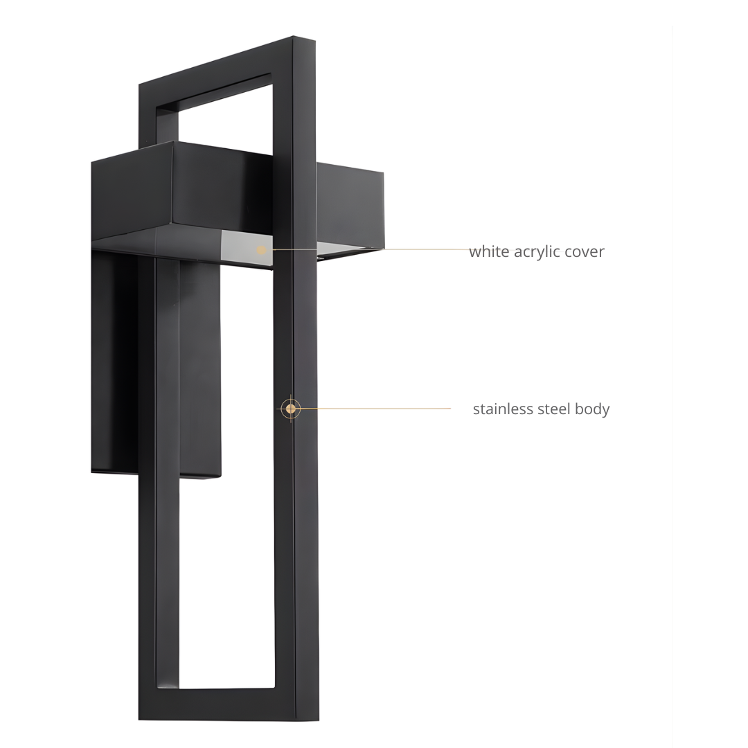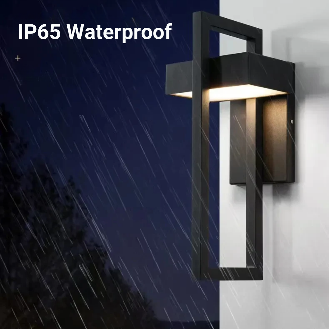 A modern minimalist outdoor wall light featuring a sleek rectangular form, durable stainless steel construction, and energy-efficient LED illumination built to withstand all weather conditions.