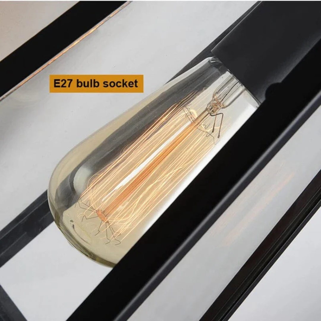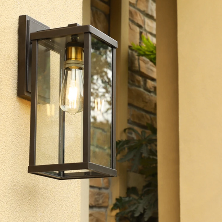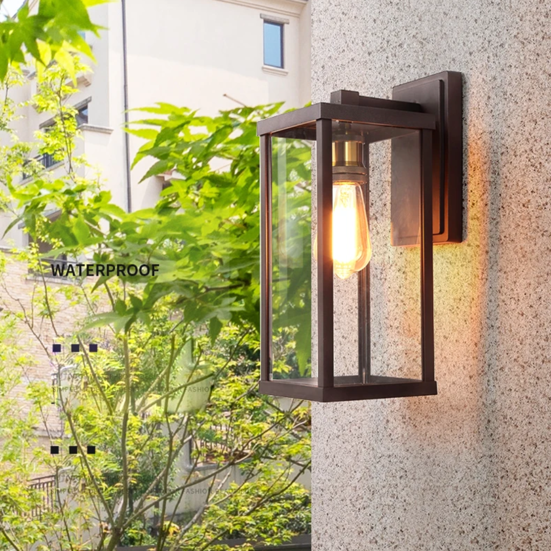 Enhance your outdoor lighting with Torchin wall sconce. Featuring a square frame and a clear glass shade, this fixture delivers both style and durability. Designed with dusk-to-dawn functionality, it automatically turns on at night and off at sunrise- perfect for porches, patios, entryways, and more.
