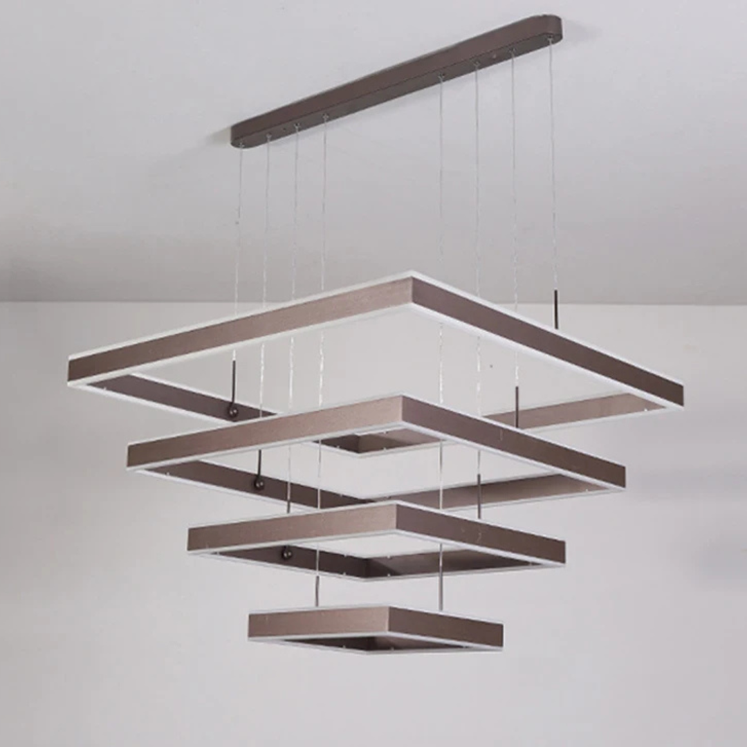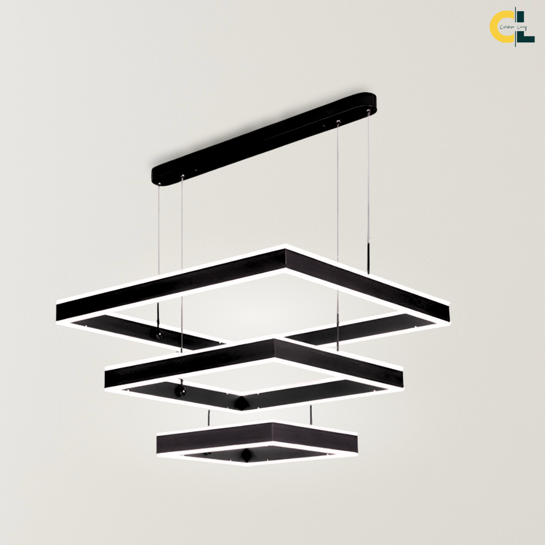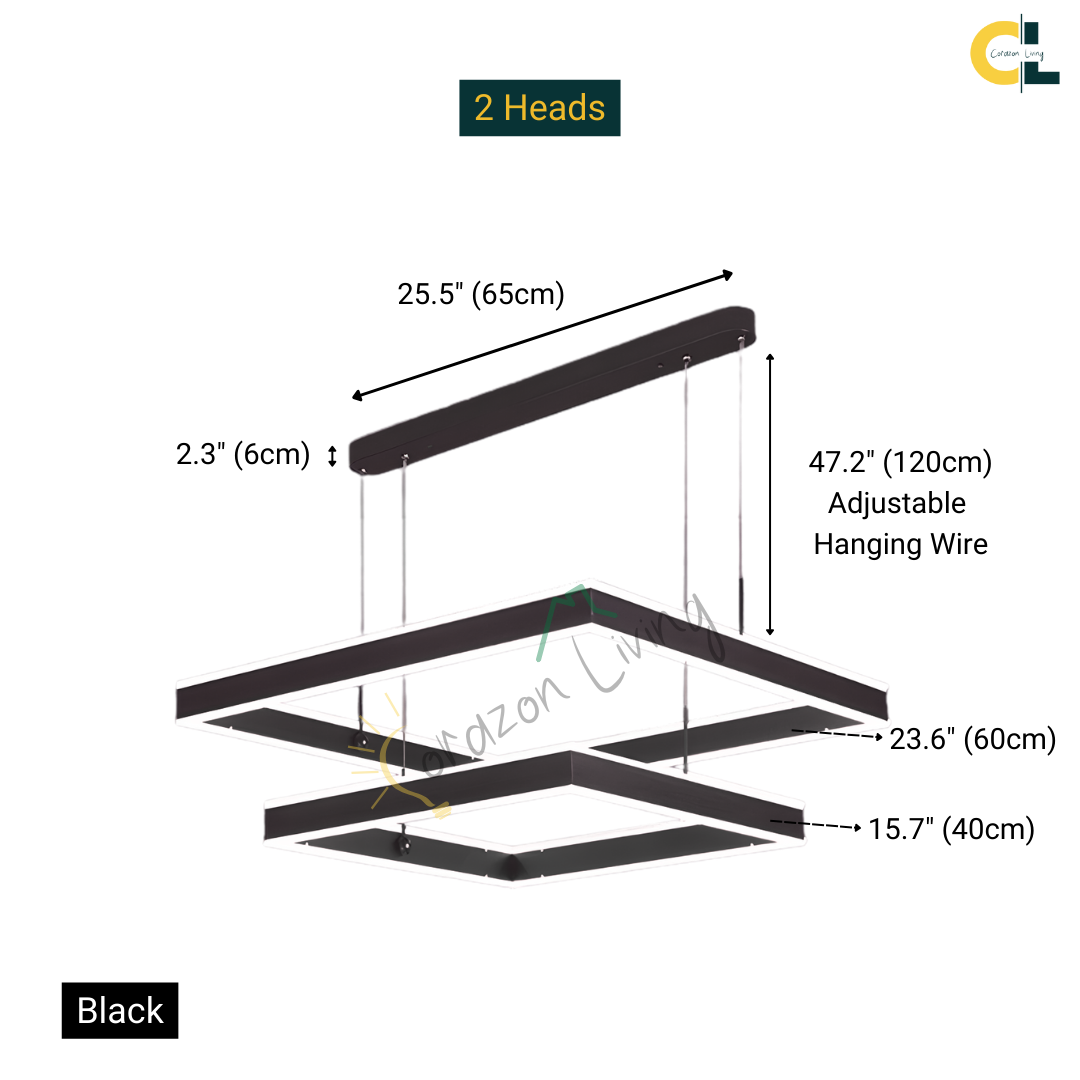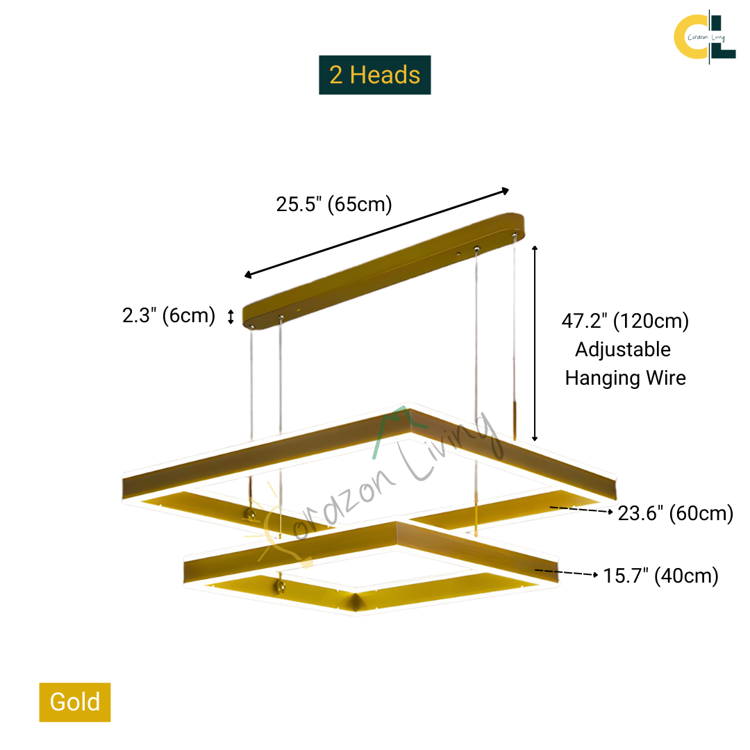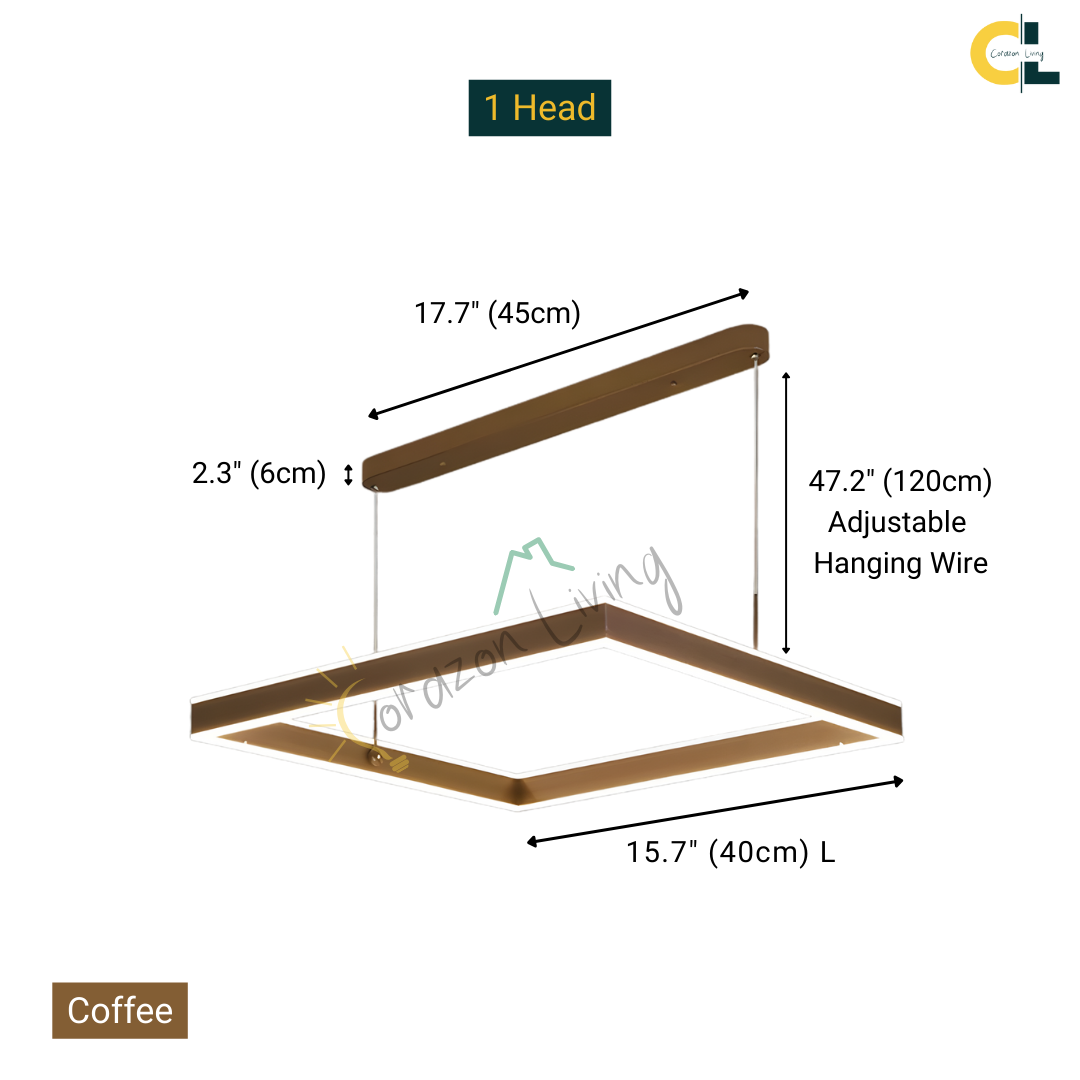 The Valerian Chandelier enhances any modern interior with its bold geometric silhouette and cascading square design. Crafted from durable aluminum and acrylic, this statement piece is available in Black, Coffee, or Gold, making it a perfect fit for modern living rooms, dining areas, and high-ceiling spaces. Its integrated LED system offers Warm White, Cool White, or Tri-Color Changeable (Remote Dimming with App), allowing you to adjust both color and brightness effortlessly. Available in 1, 2, 3, 4, 5, or 6-head configurations, the Valerian adapts beautifully to compact or expansive layouts.