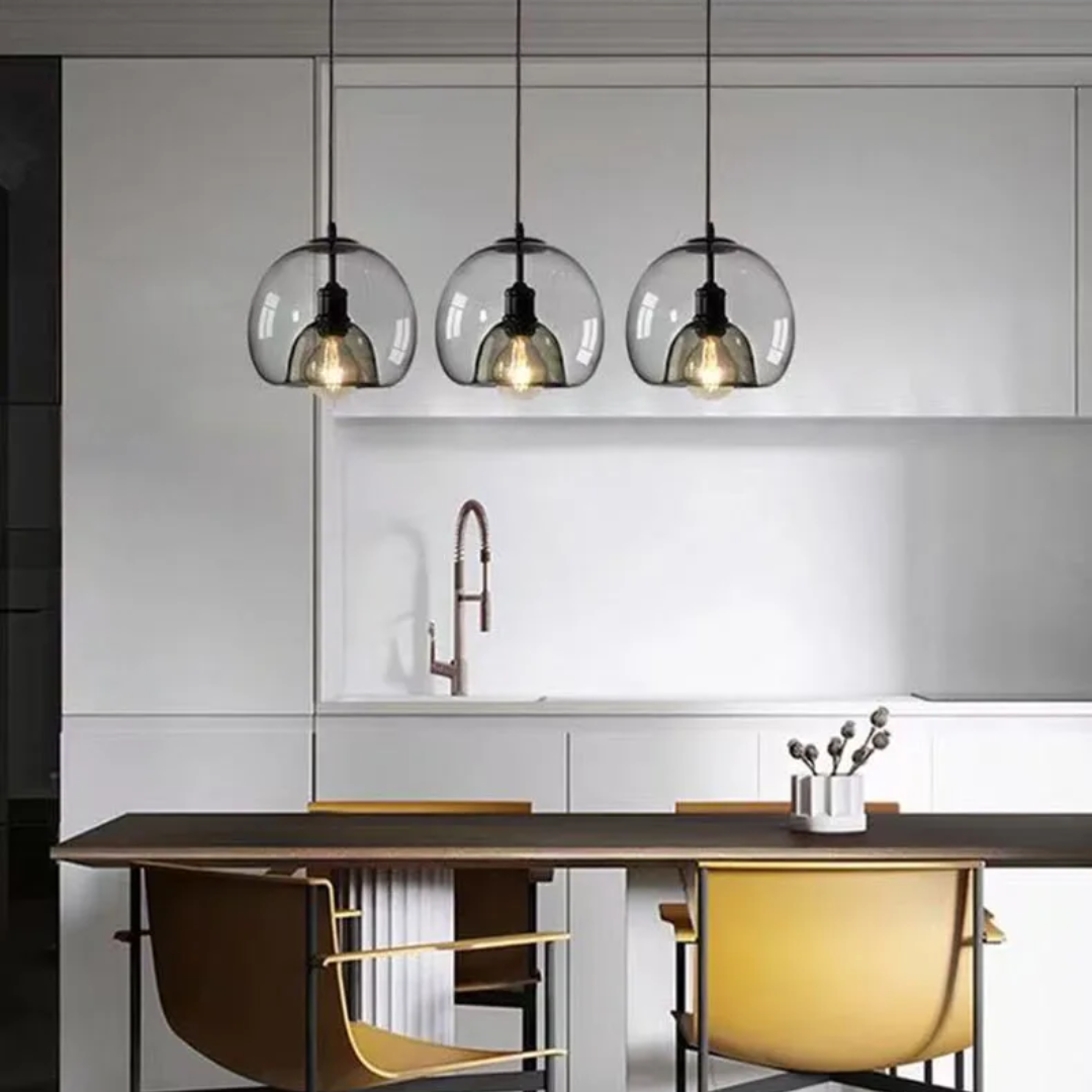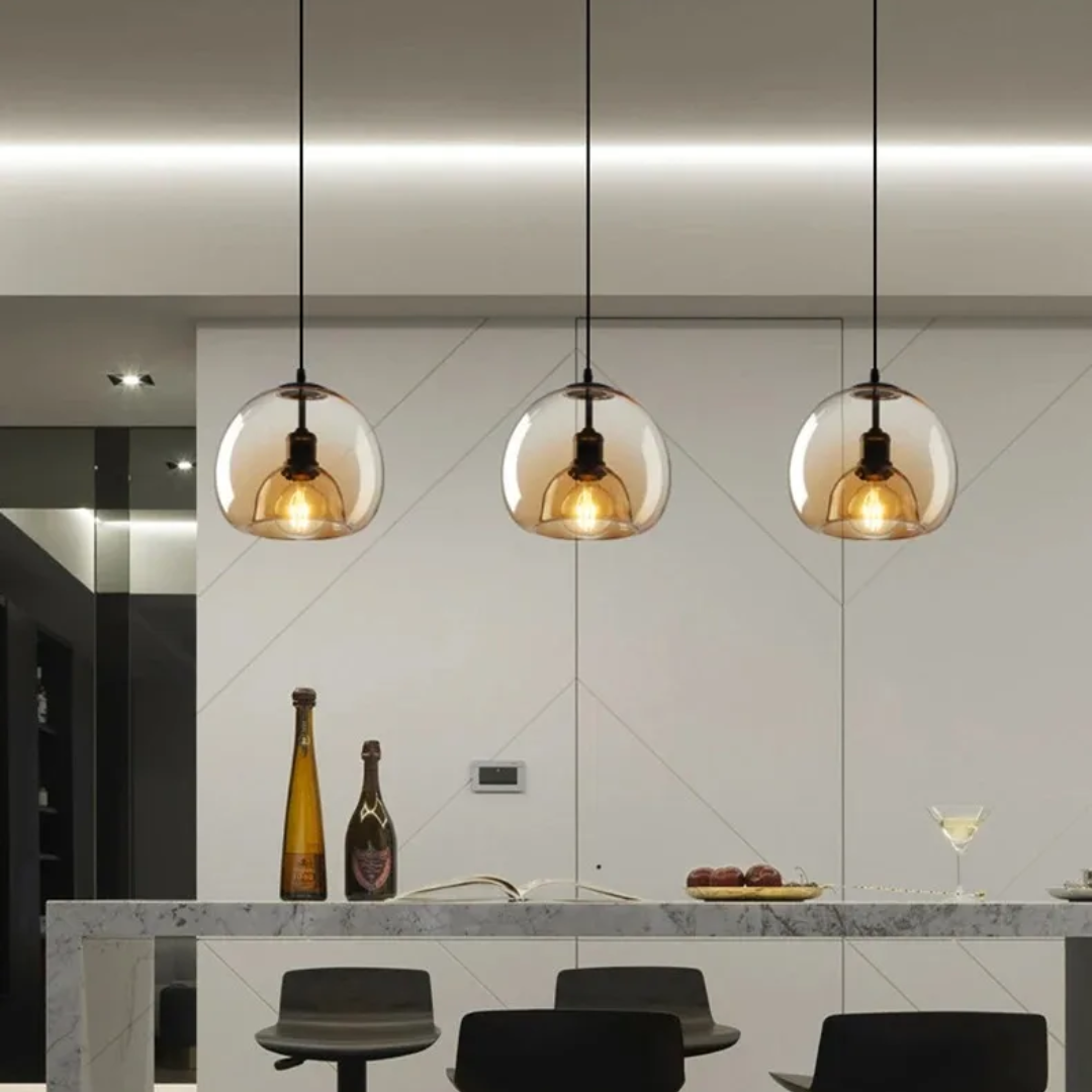 Elevate your interior with the Vaughn Nordic Glass Pendant Light, a stunning fusion of modern design and functional elegance. Perfectly suited for kitchen islands, dining areas, or living rooms, this pendant light features smoky gray and amber-toned glass shades that bring warmth and sophistication to any space. The minimalist suspended design showcases soft LED lighting, ideal for creating ambient illumination in both residential and commercial settings. Whether used individually or grouped for a bolder statement, this pendant light enhances your décor with its clean lines style.