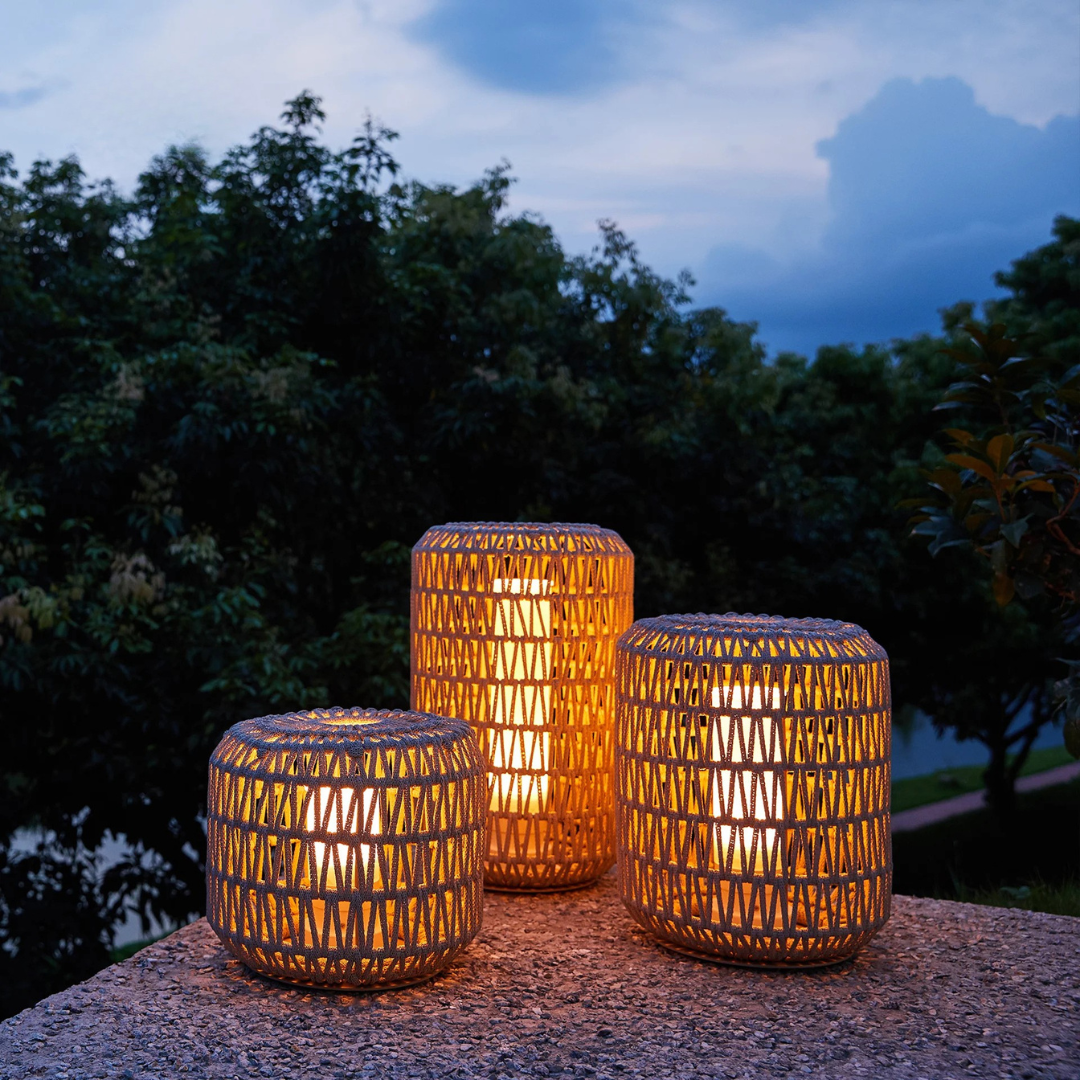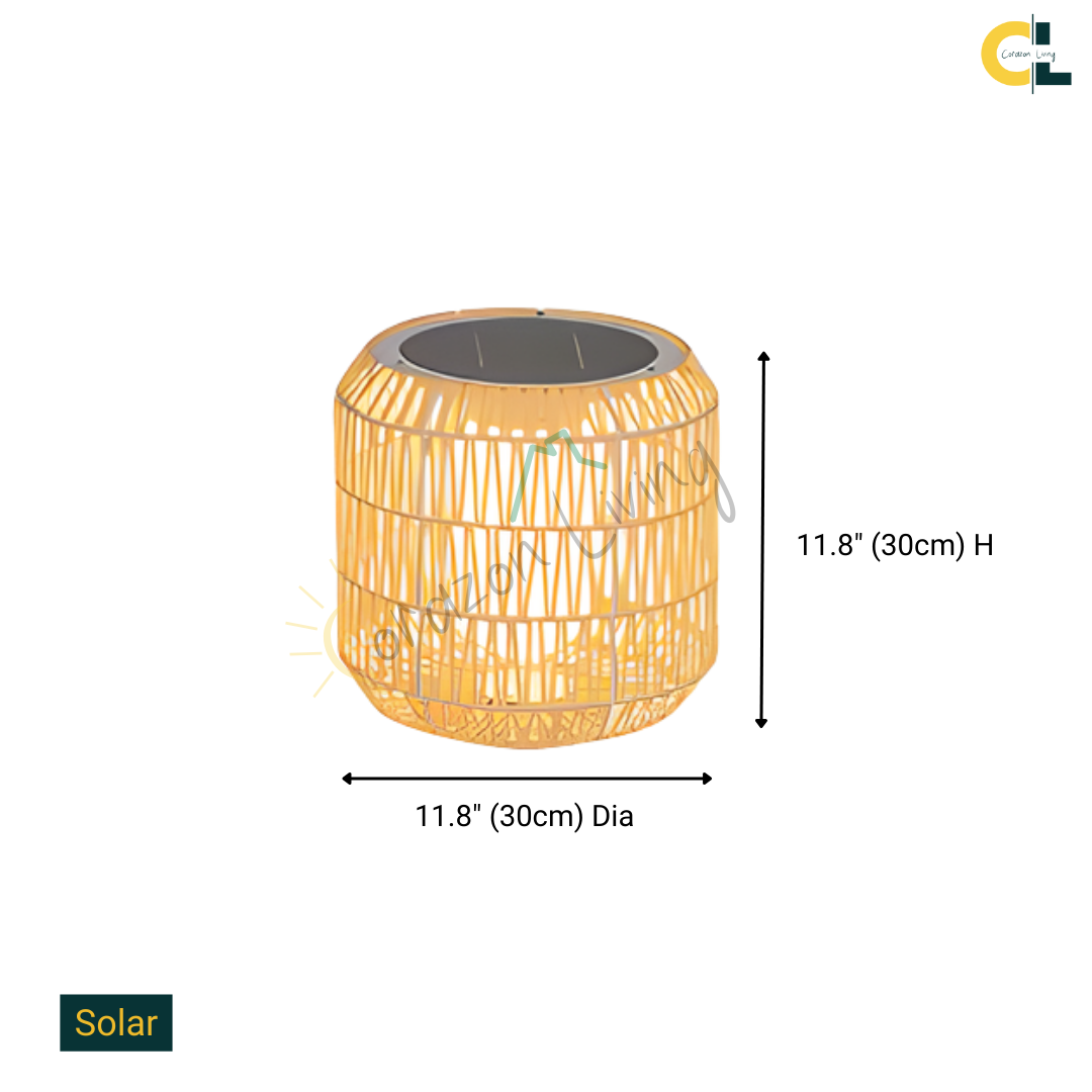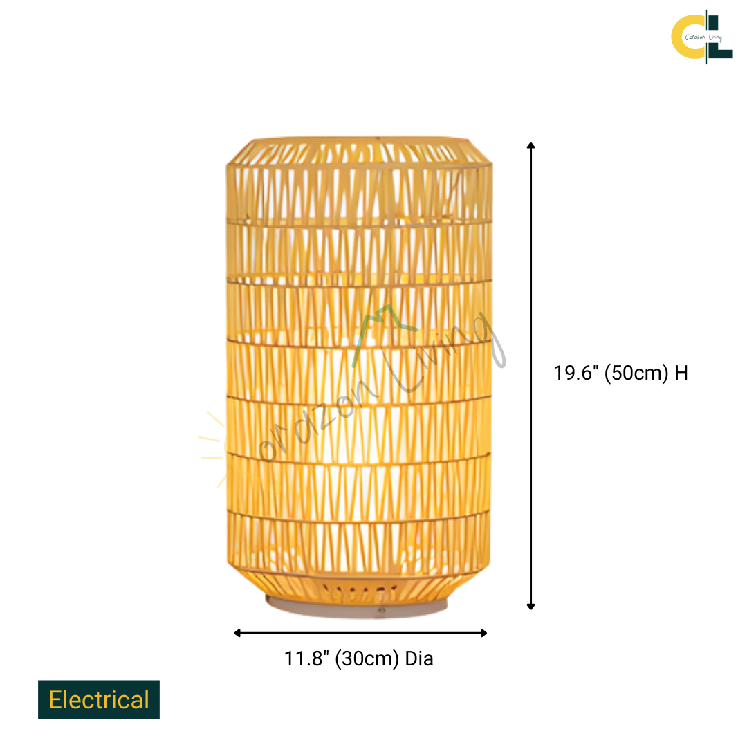 Bring natural warmth and handcrafted charm to your outdoor spaces with Wicklow, a beautifully woven rattan floor lamp designed for elegant exterior living. Each lamp is hand-knitted from durable outdoor rattan, giving it a rustic yet refined character. Available in two model options—Solar or Electrical—Wicklow provides flexible lighting to suit any outdoor setting. With its IP54 waterproof rating, it withstands the elements while creating a soft, ambient glow for patios, gardens, terraces, and poolside areas.