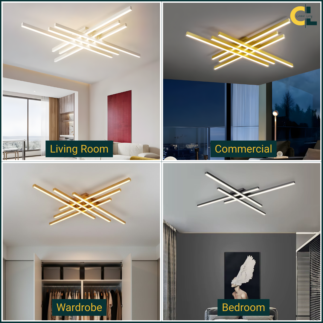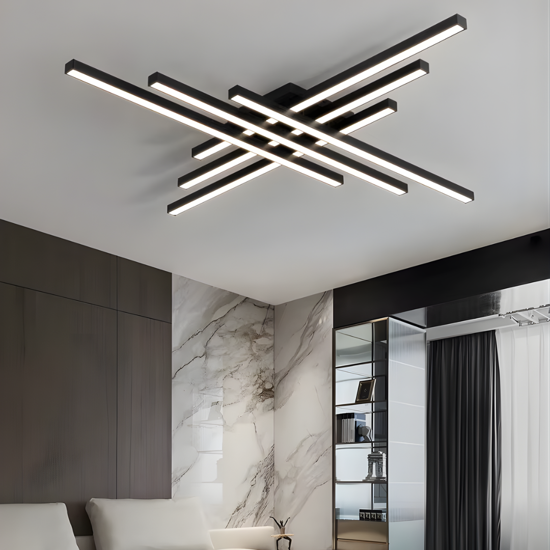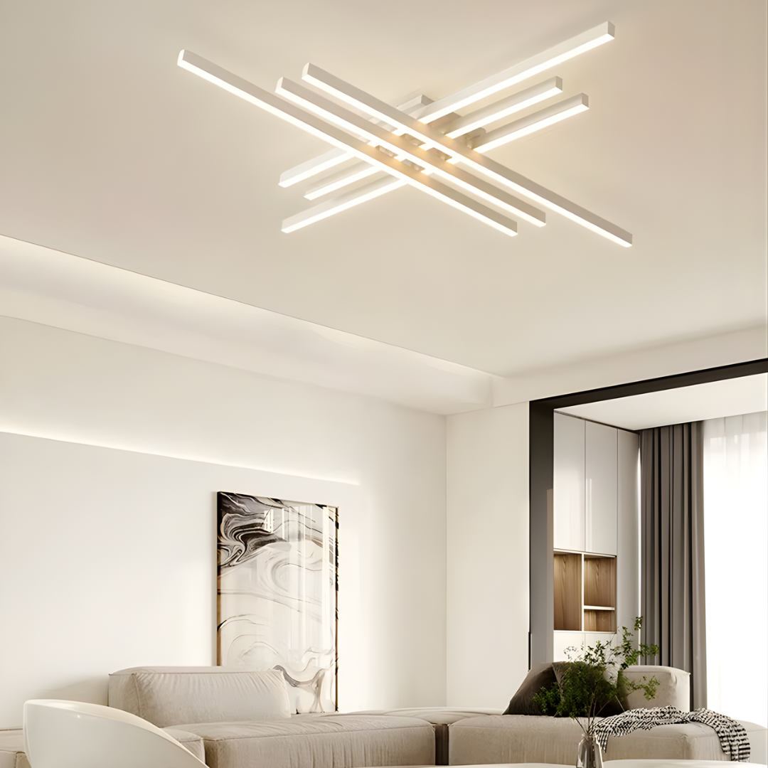 Meet Zara, a modern ceiling light designed to add quiet structure overhead. Its intersecting linear profile creates a refined geometric light fixture look, bringing architectural balance to the room without feeling busy. Crafted from premium aluminum and acrylic, Zara diffuses light evenly for a soft, comfortable glow.
