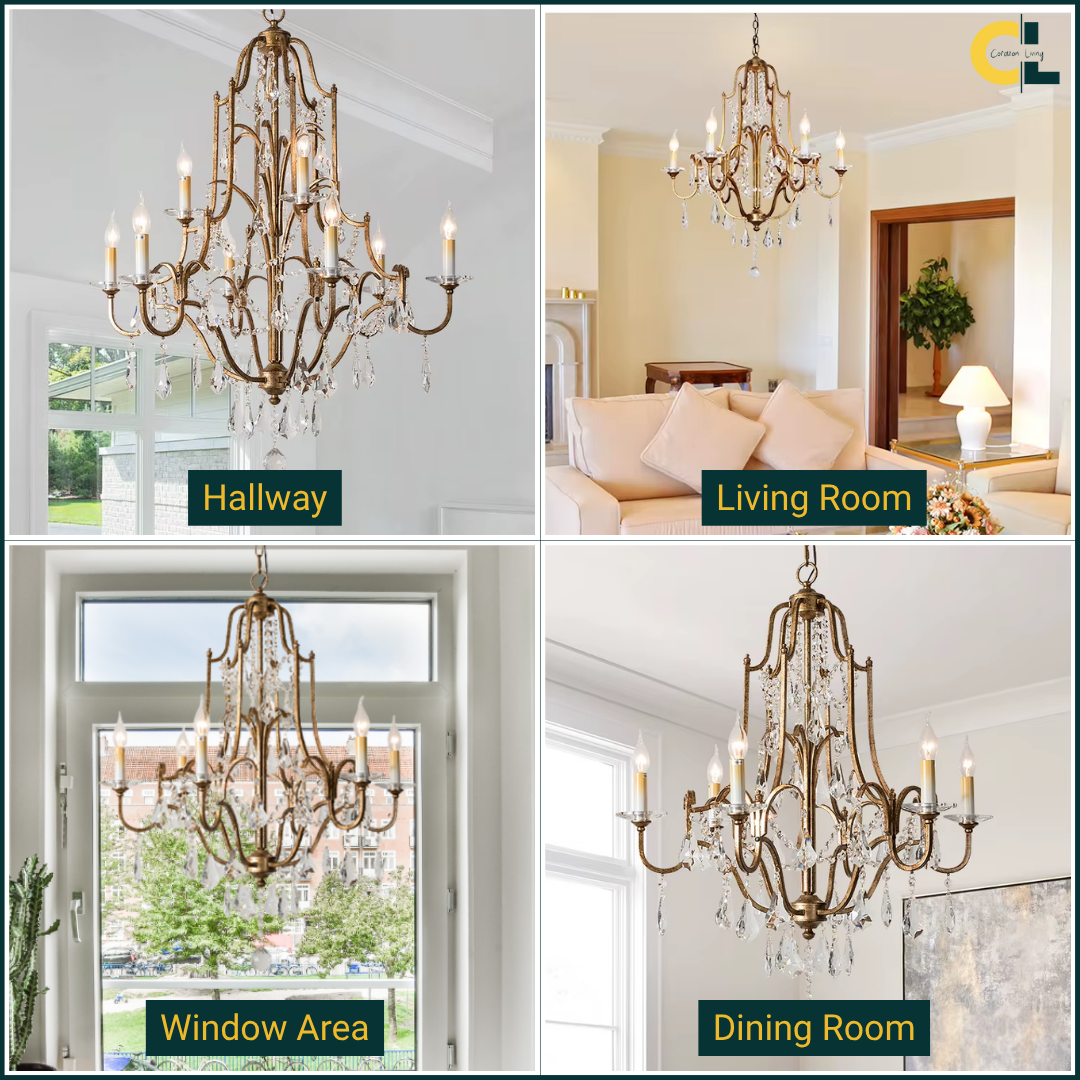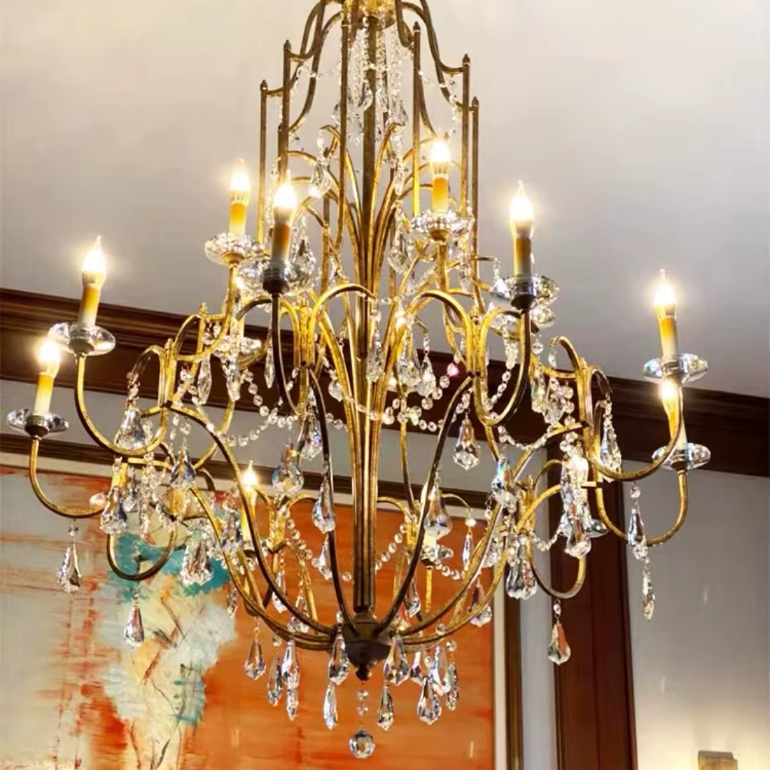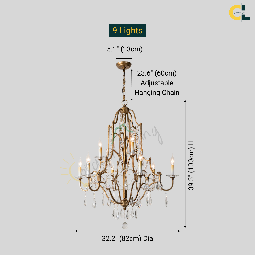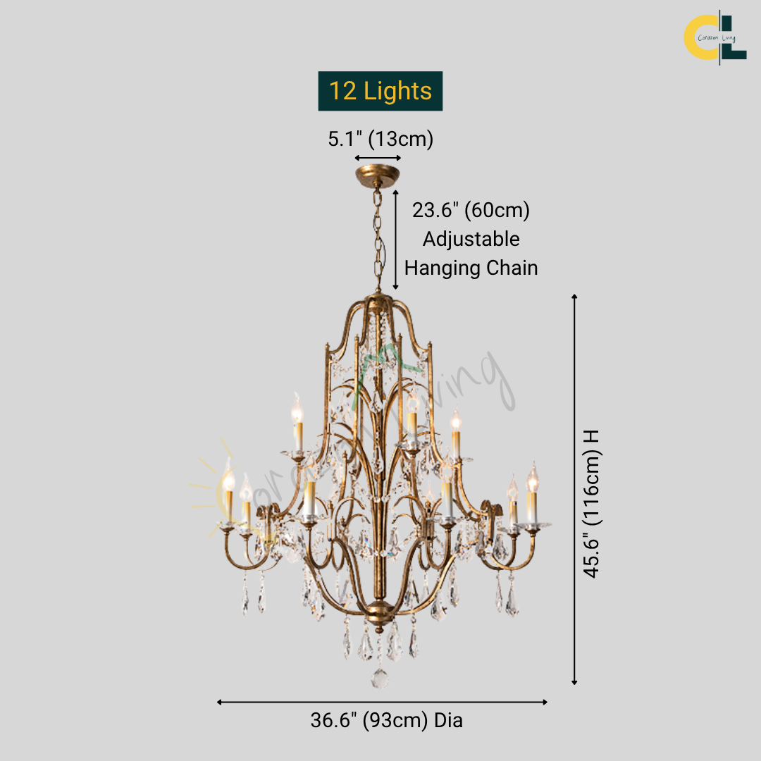 Bring a calm sense of vintage elegance into your space with the Zerine Crystal Chandelier. Inspired by classic French candle lighting, Zerine pairs a refined metal frame in a warm retro gold finish with shimmering crystal drops that catch and soften the light.