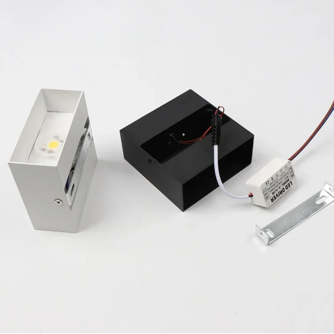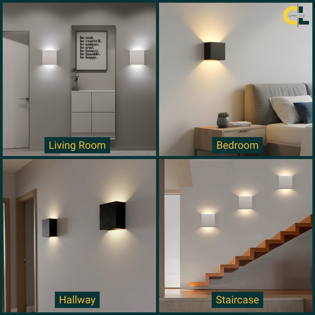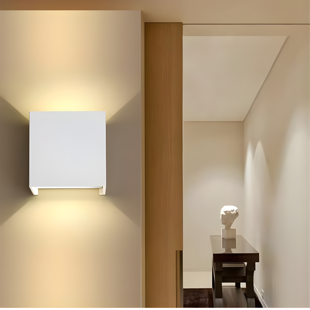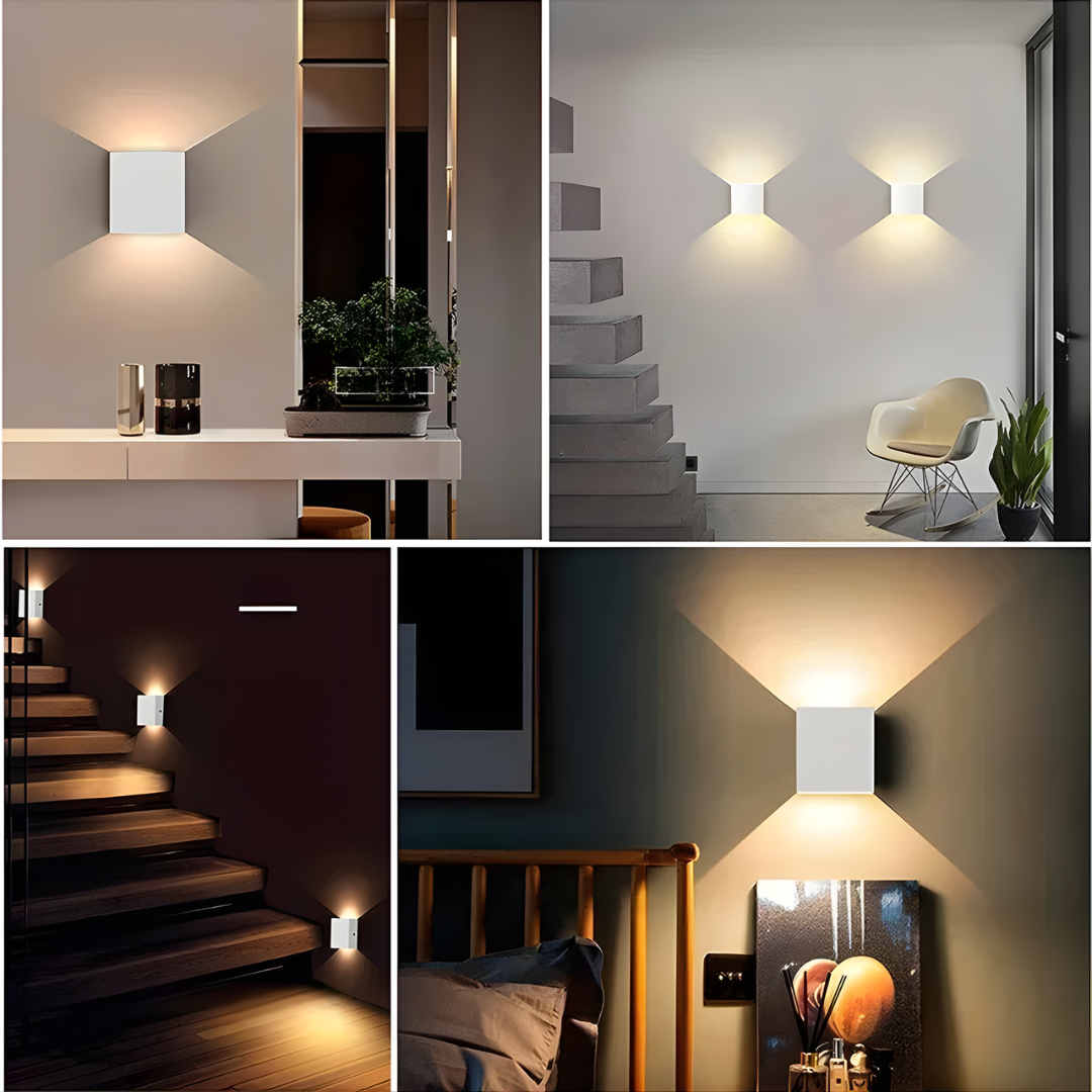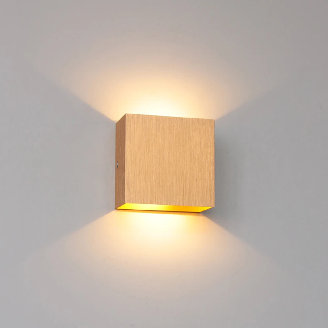 Add subtle elegance and functional lighting to your space with this contemporary Up and Down LED Wall Light. Crafted from durable aluminum with a minimalist square design, this hardwired wall sconce emits soft, ambient light from both the top and bottom, creating a warm and inviting glow. Available in brushed black, brushed gold, brushed silver, matte black, and matte white, it blends effortlessly into Nordic, contemporary, or rustic interiors. Perfect for bedrooms, hallways, living rooms, porches, and staircases.