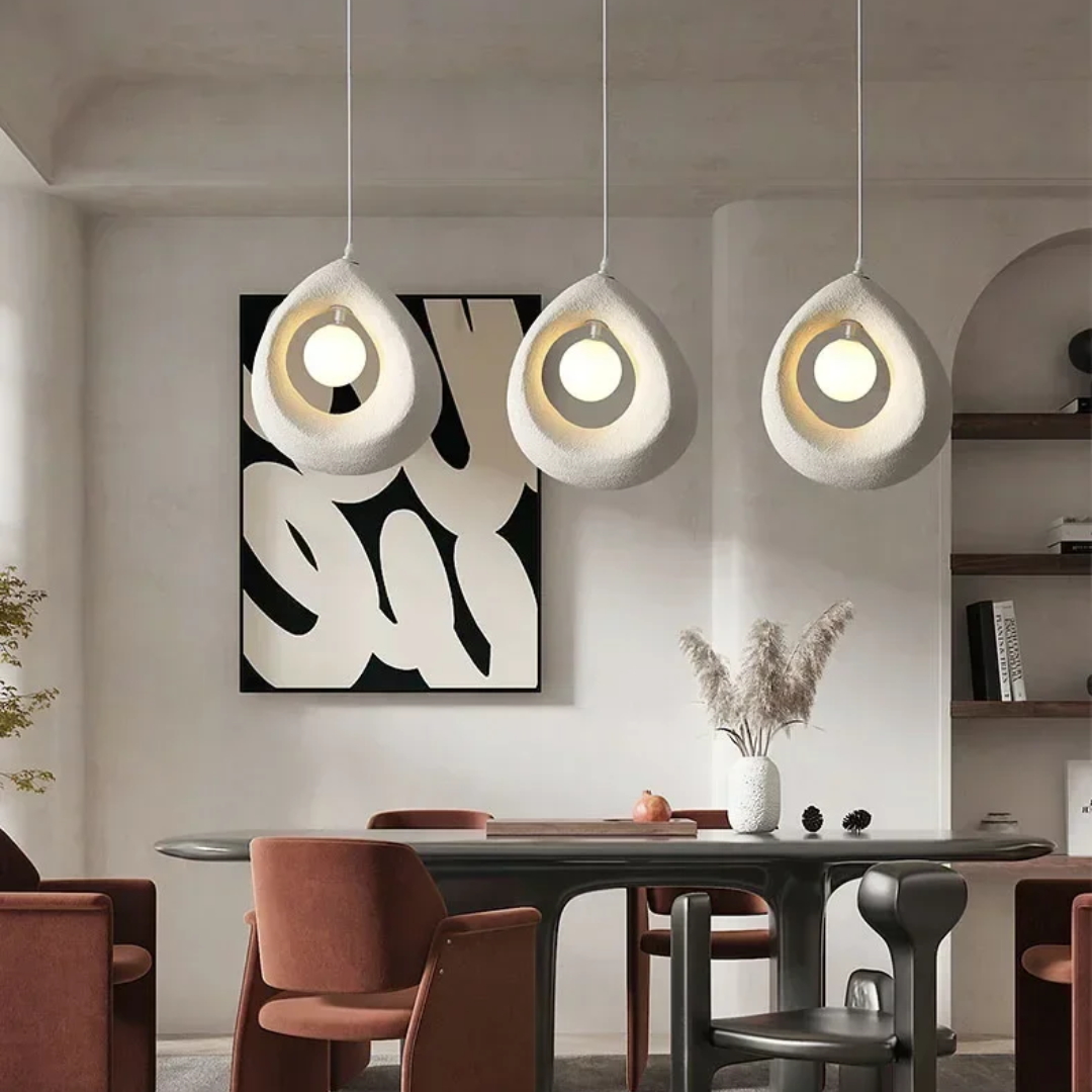 Sleek and modern, the Organic Teardrop Pendant Light features a polystyrene LED design inspired by natural teardrop shapes.