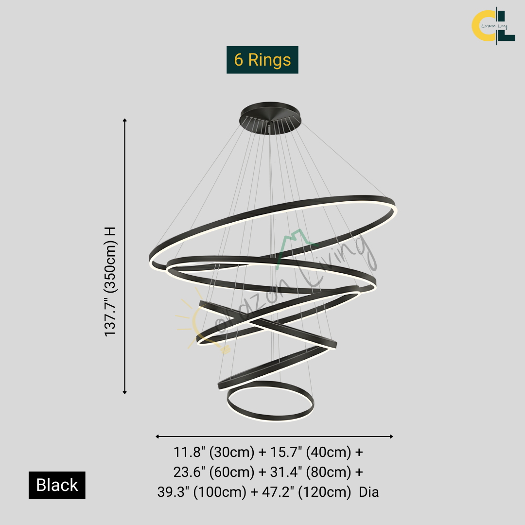 Add a sleek and sophisticated statement to your interior with this Anillo Modern LED Ring Chandelier, designed for stylish staircases, dining rooms, and living areas. Featuring a floating arrangement of minimalist circular LED rings, this chandelier brings a warm, ambient glow and a clean, contemporary silhouette to any space.