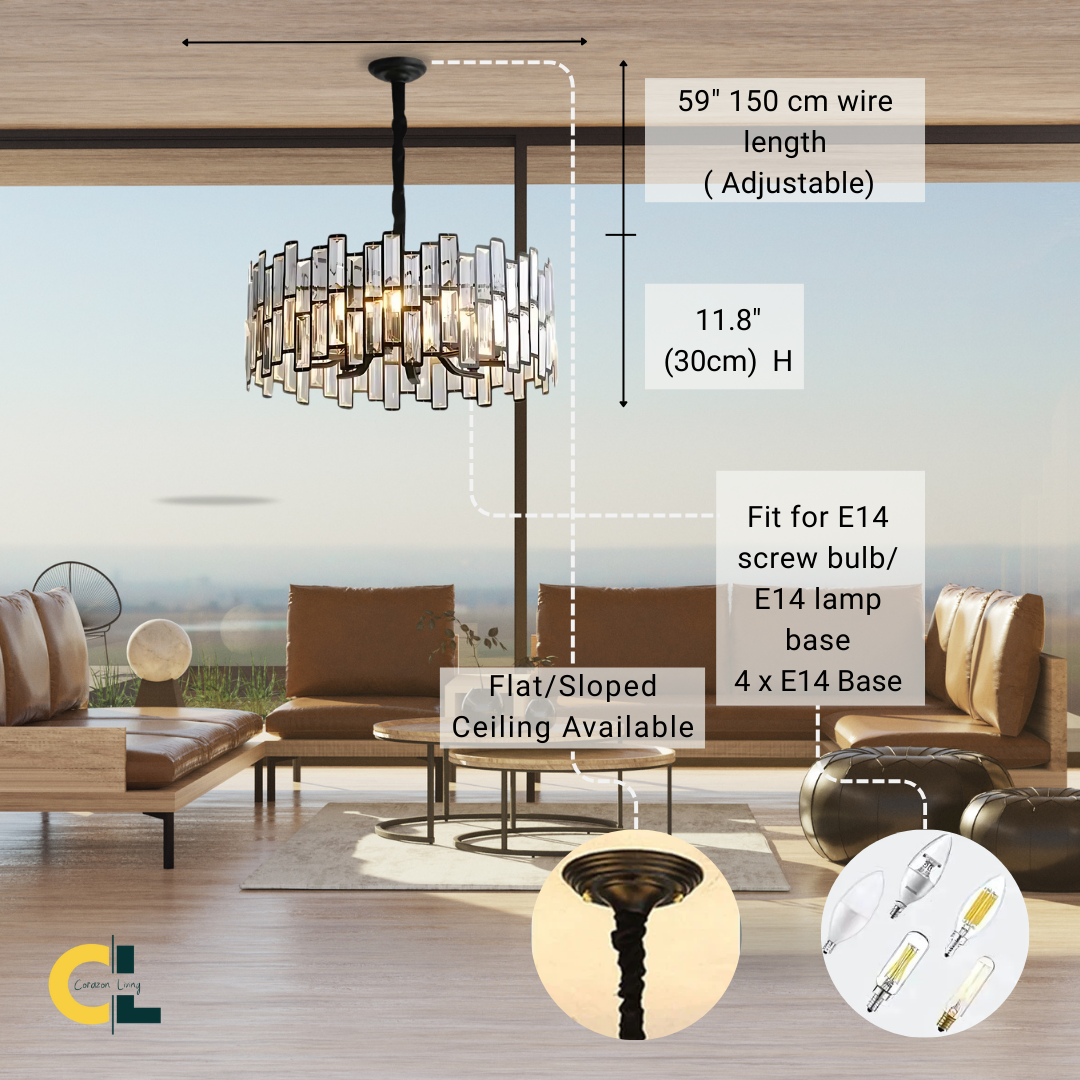 Elevate your home with the timeless elegance of the Catherine Crystal Chandelier. Designed to blend contemporary sophistication with classic charm, this chandelier features luxurious crystal prisms set in a bold black frame, creating a stunning play of light and reflections.