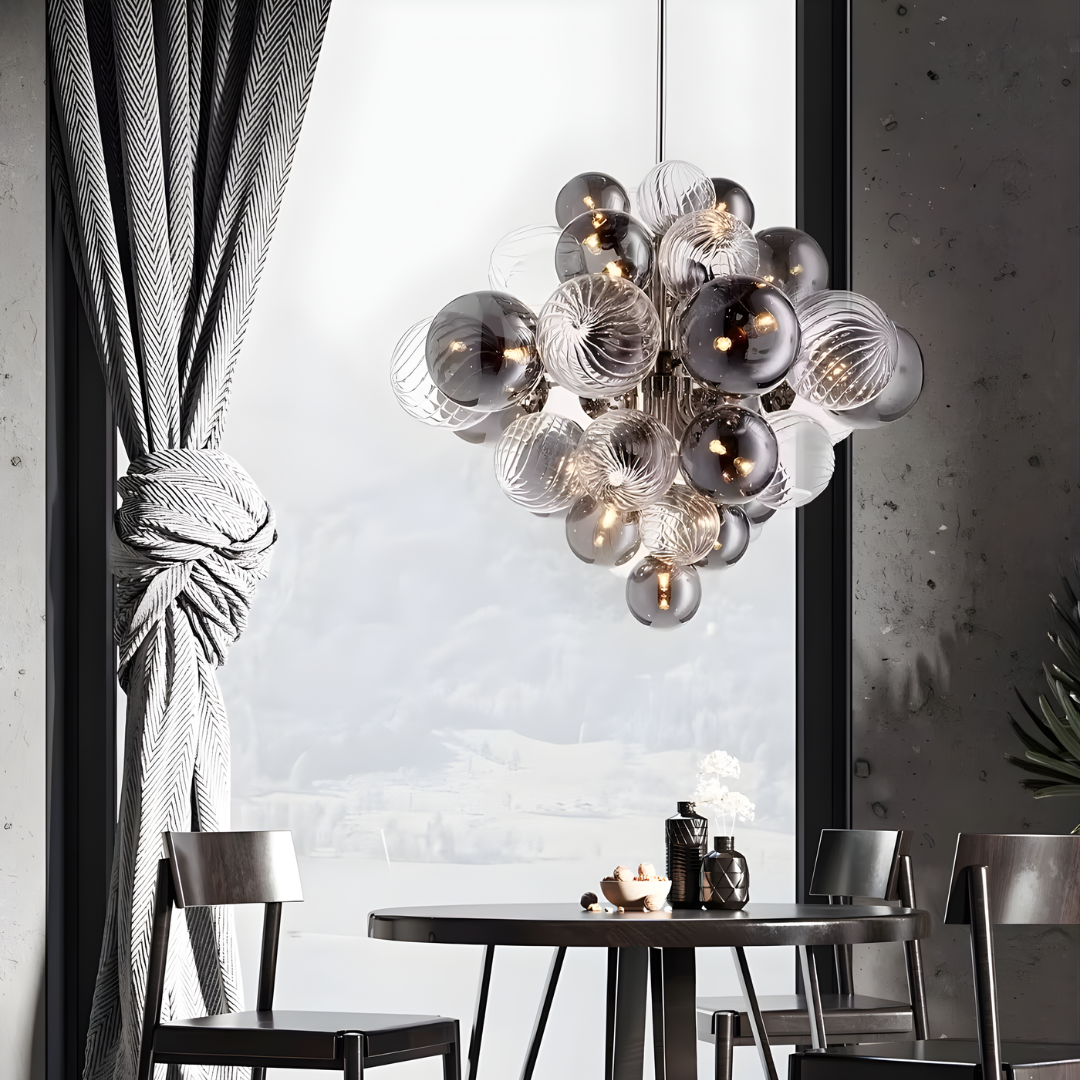Inspired by Nordic design principles, the Charlotte Chandelier embraces soft minimalism and refined balance. Its chrome-finished structure and gently layered glass globes create an airy, harmonious presence that diffuses light evenly without visual heaviness. With an adjustable hanging height, it brings calm elegance and functional beauty to dining rooms and living spaces.