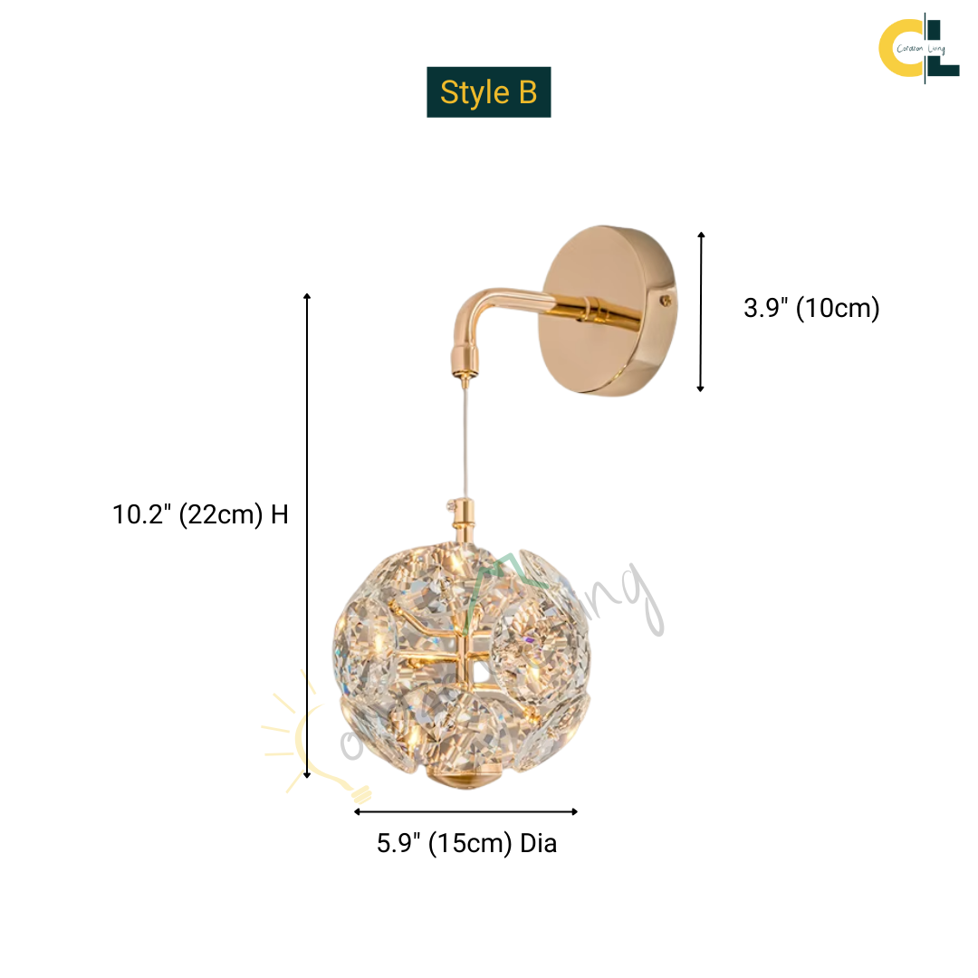 Style B (Wall Light): 5.9" (15cm) Dia x 10.2" (26cm) H x 2.2lbs (1kg) - 6W
