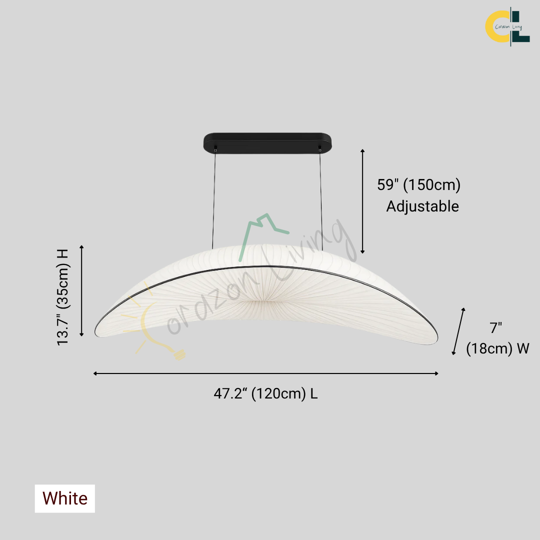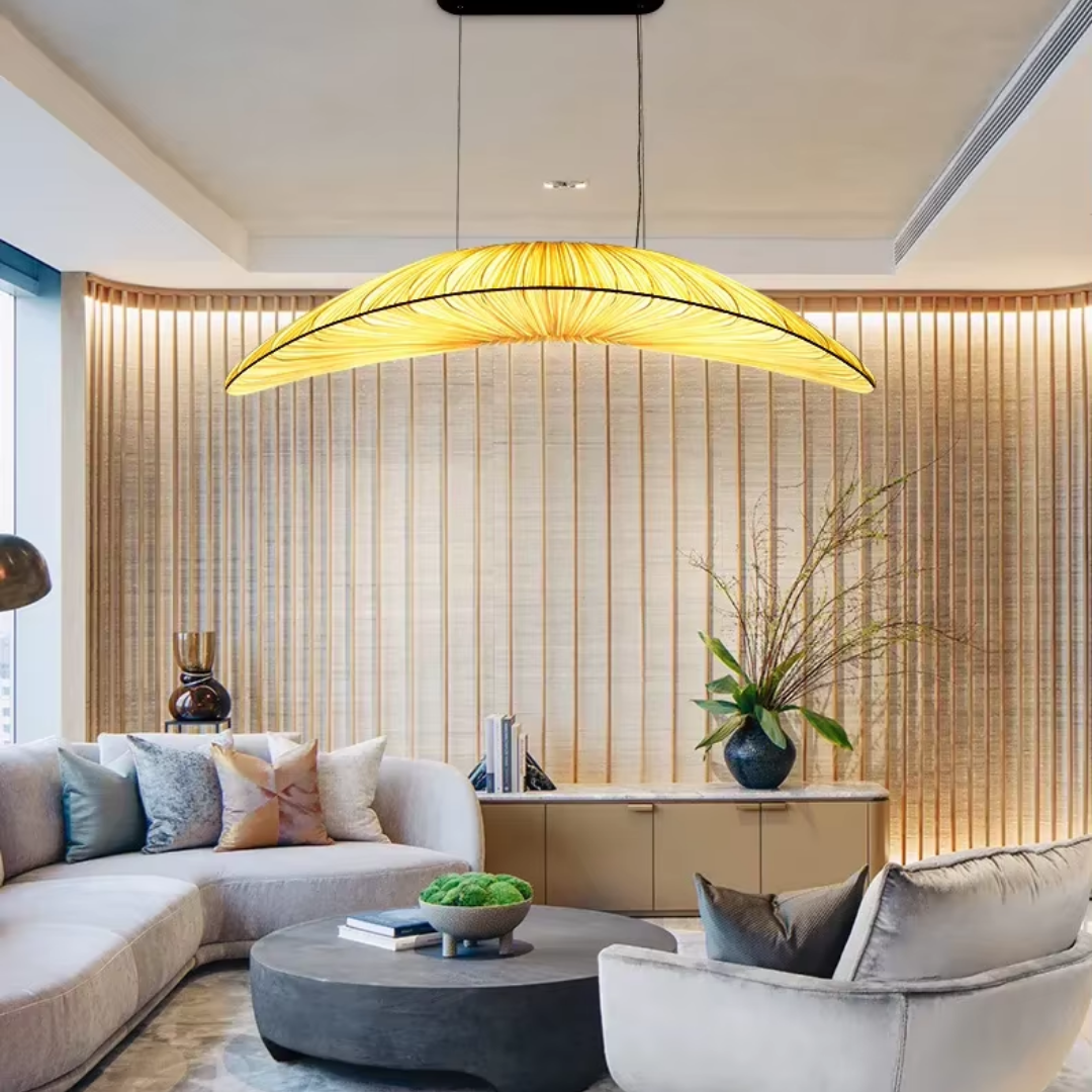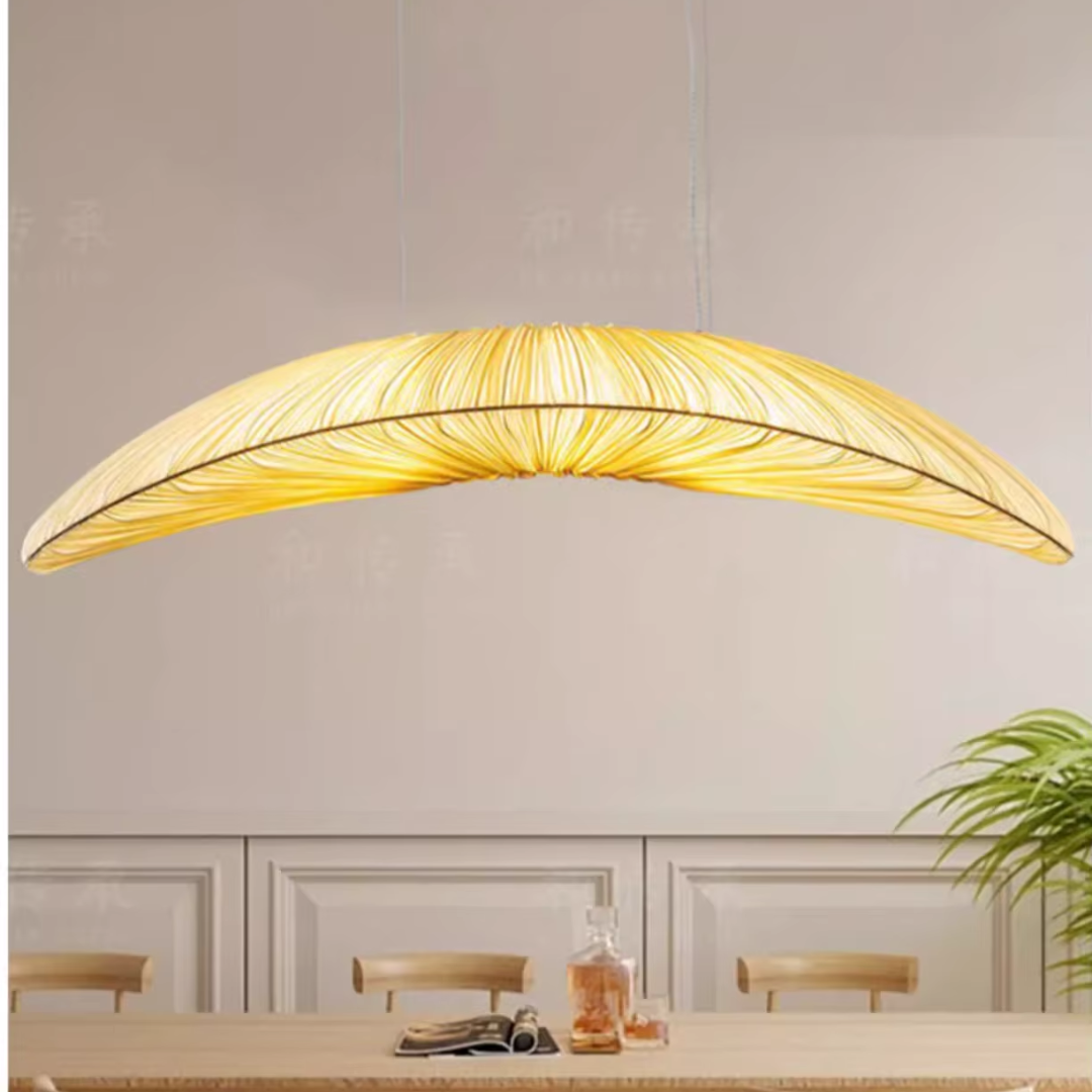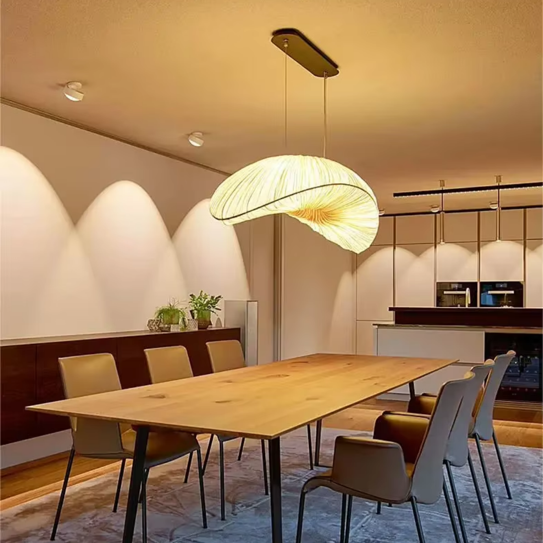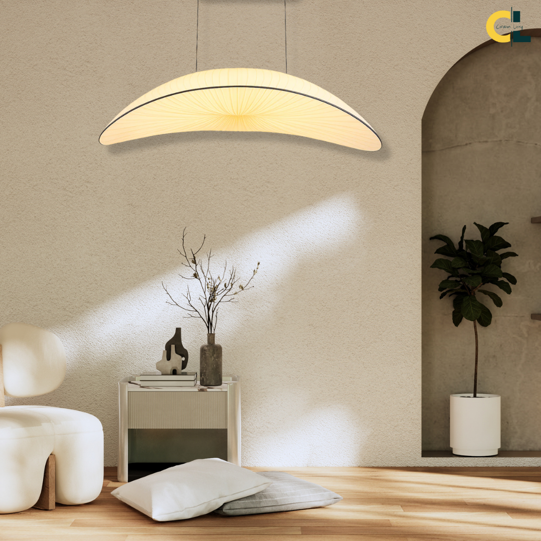 A modern fabric pendant light inspired by sailboat elegance, blending artistic design with soft, calming light.