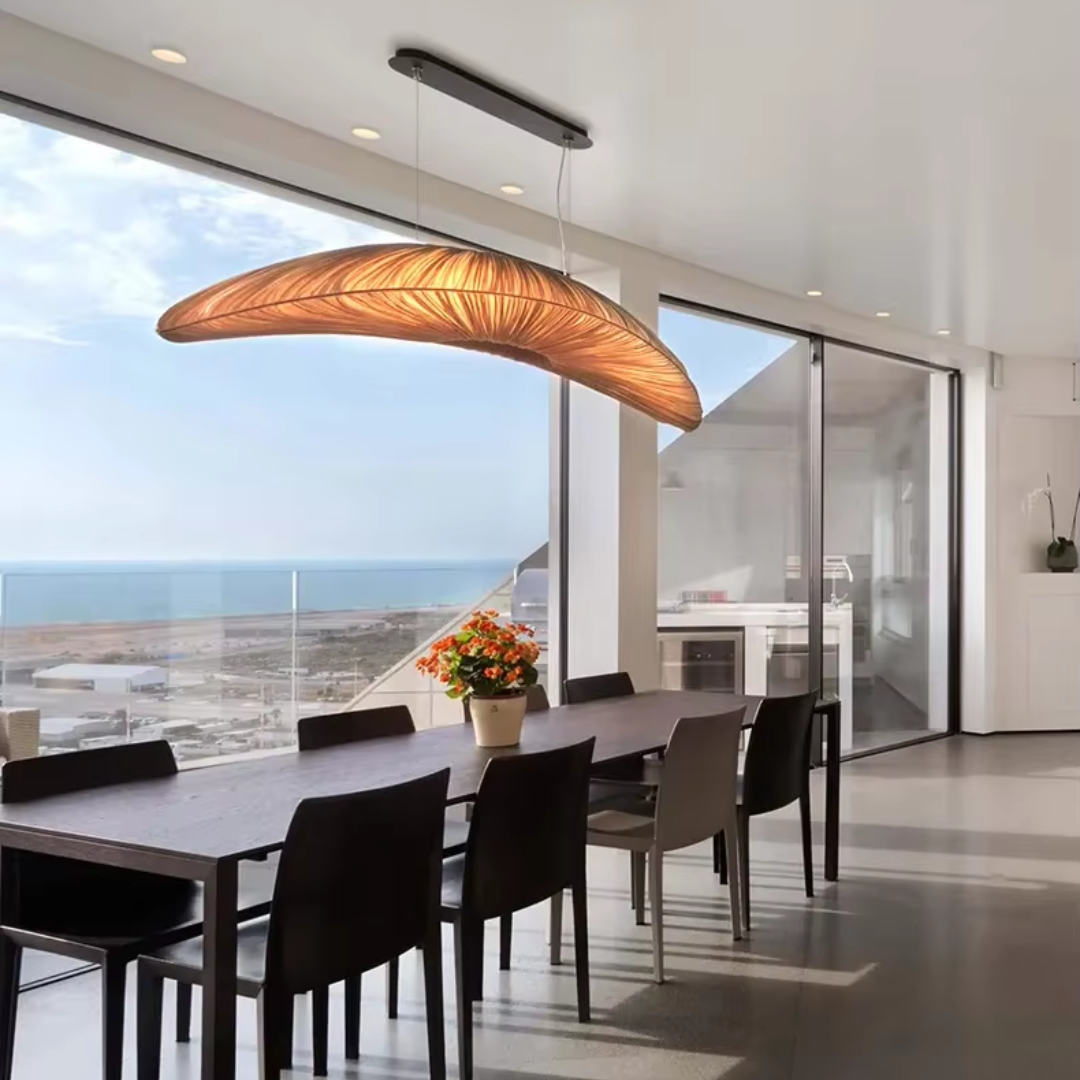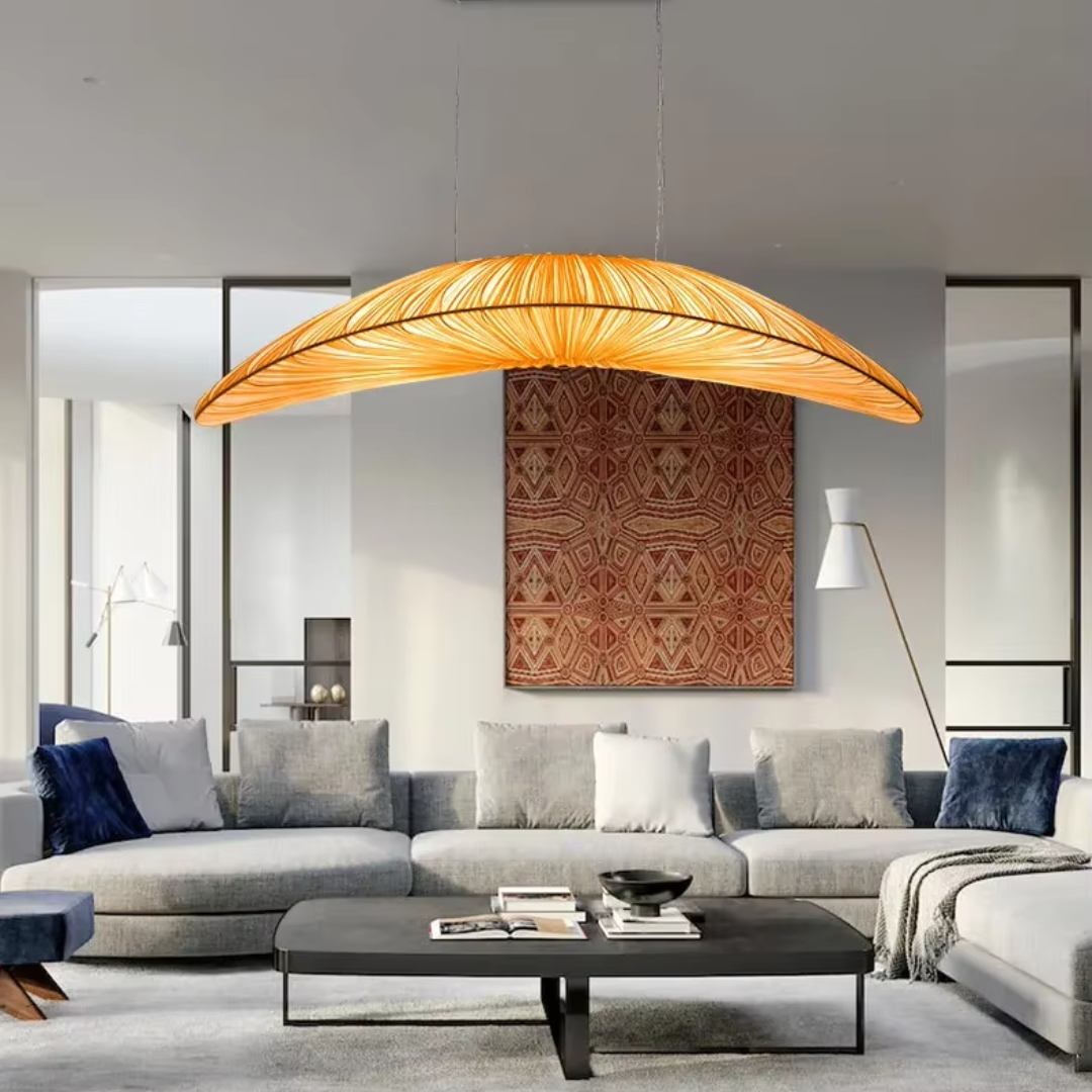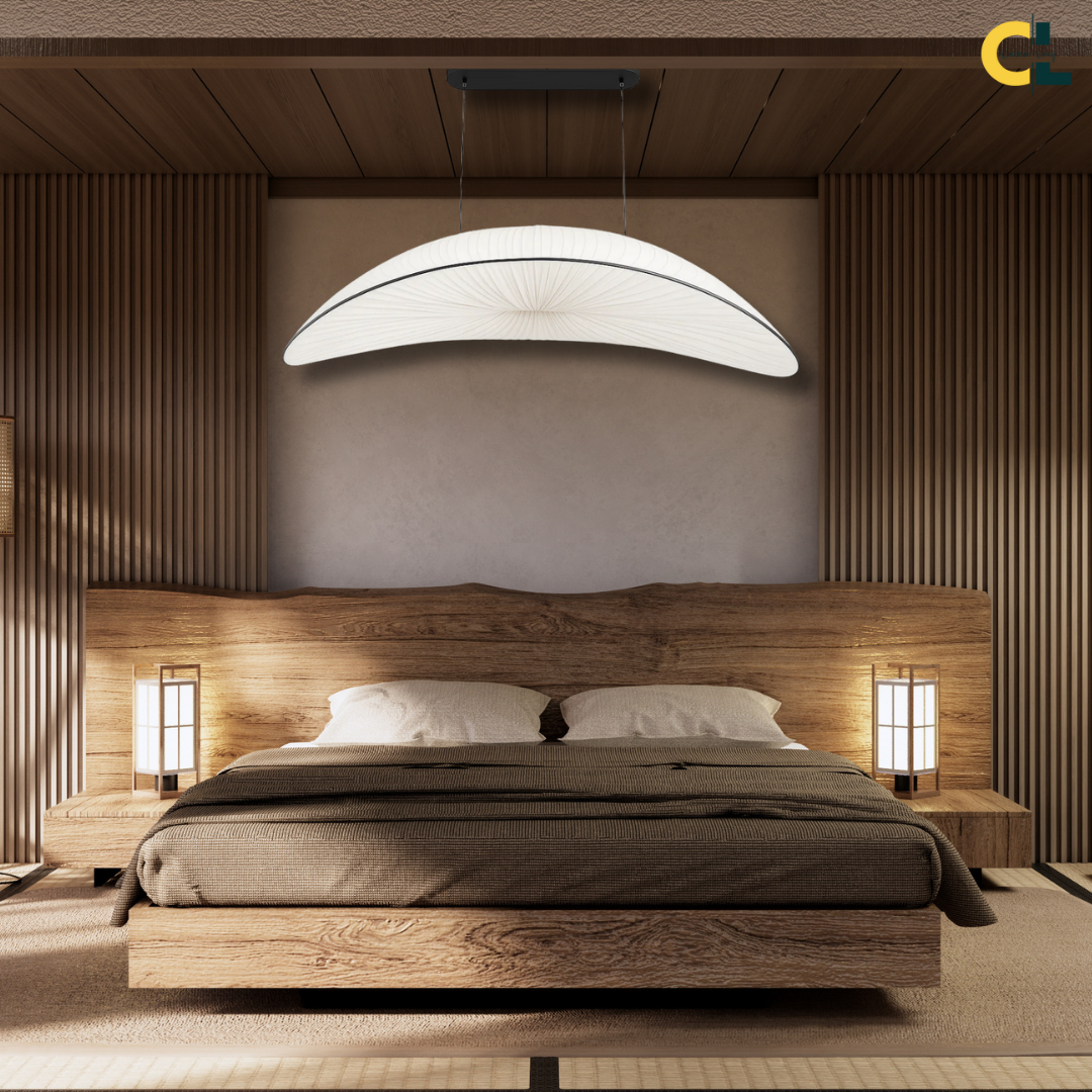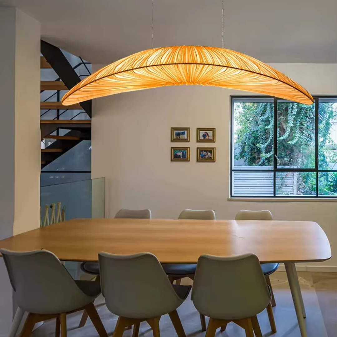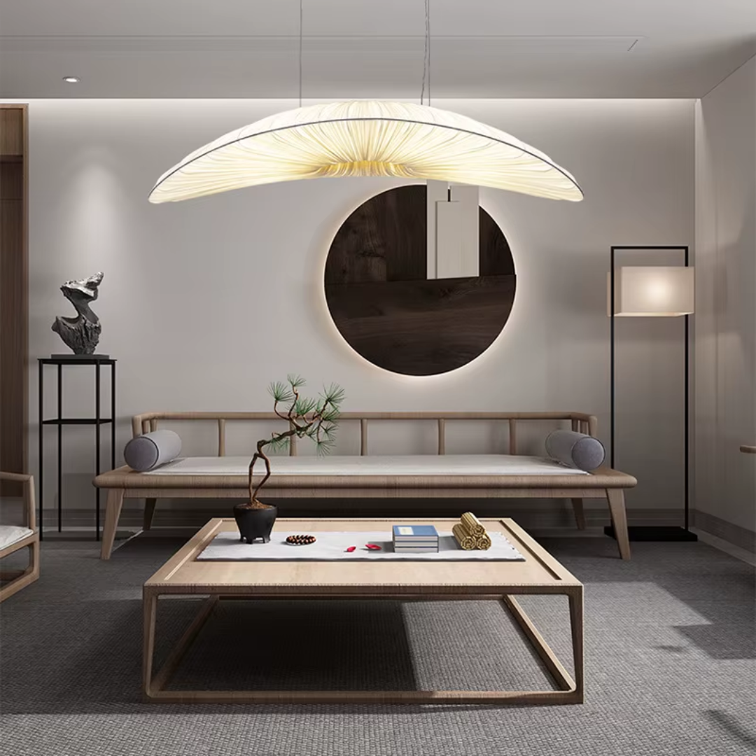 A modern fabric pendant light inspired by sailboat elegance, blending artistic design with soft, calming light.