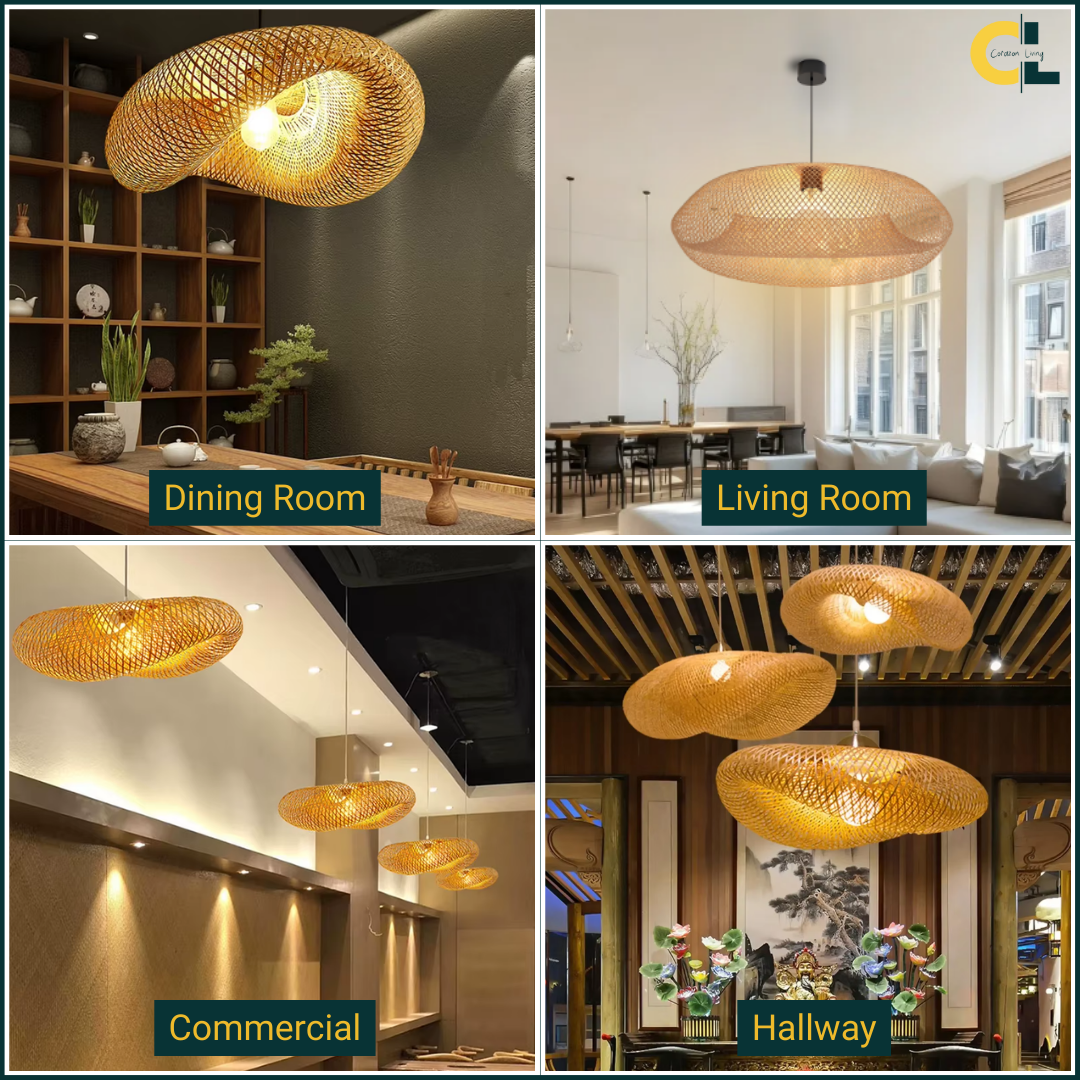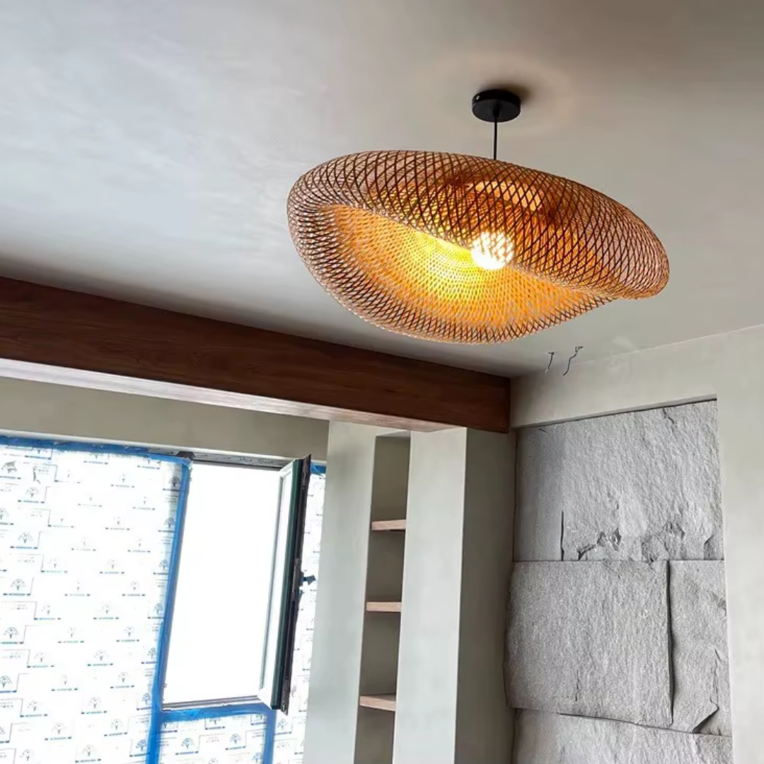 A handcrafted pendant light in rattan and bamboo, offering warm, diffused illumination and natural, eco-friendly elegance for any interior.