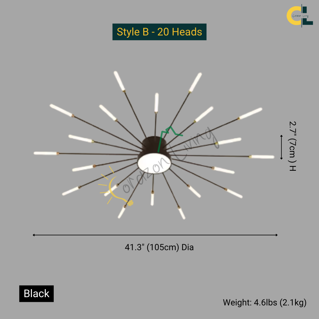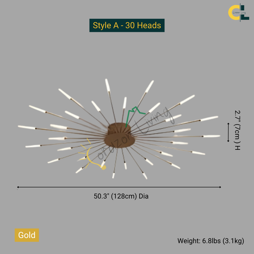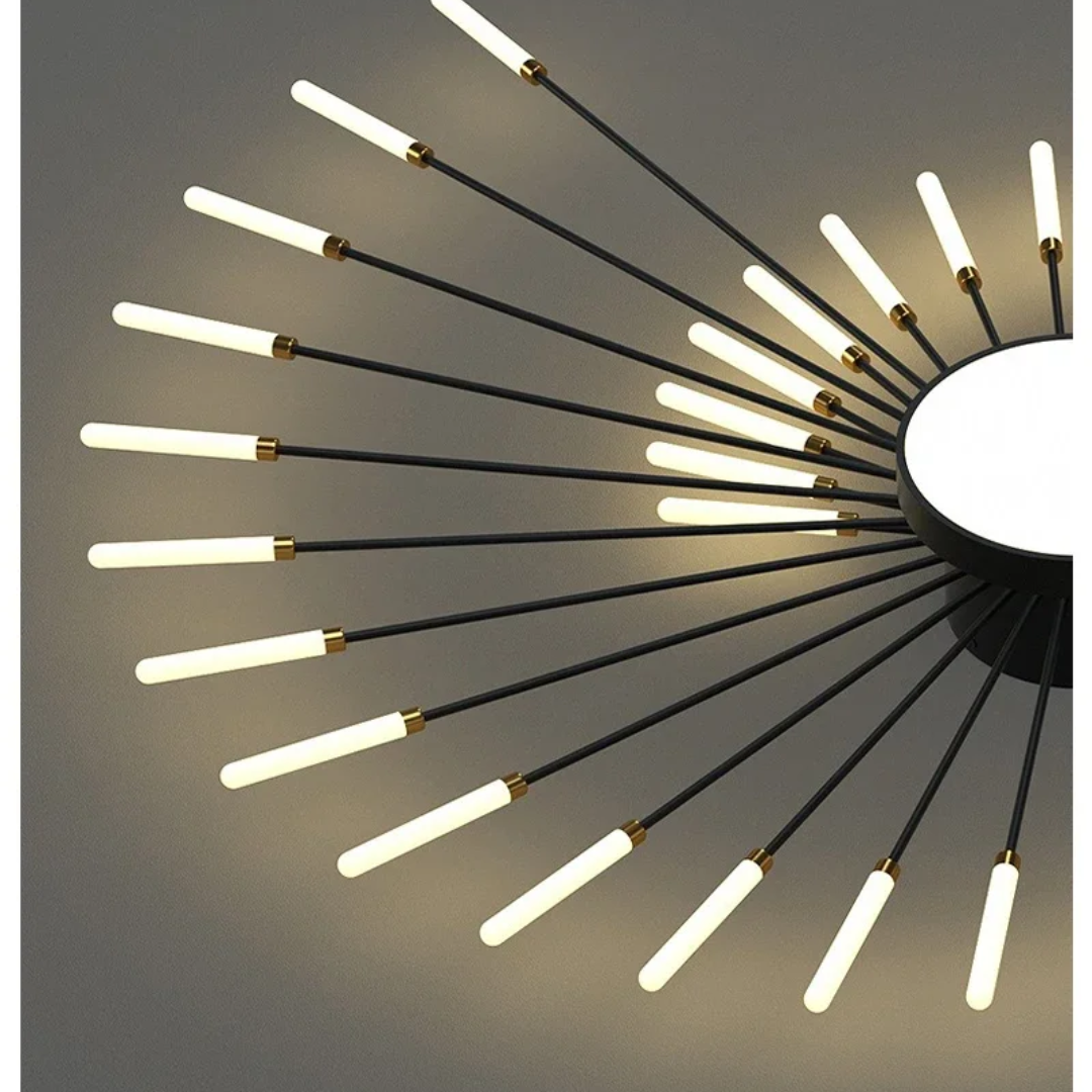 This LED ceiling light features a striking black and gold starburst design, combining modern elegance with radiant, eye-catching illumination.