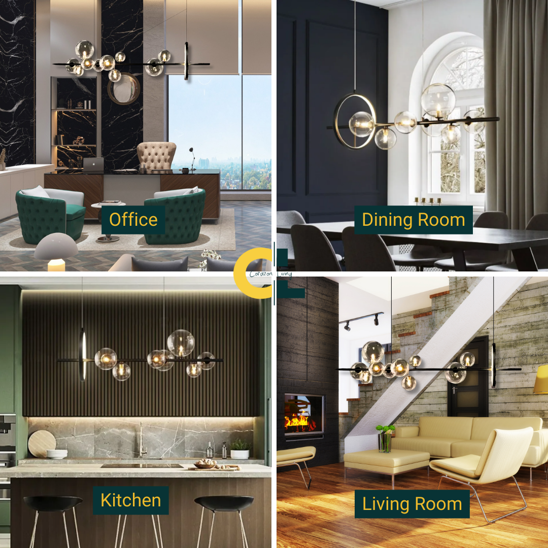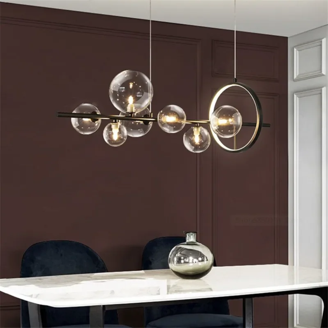 The Nordic-inspired glass ball LED chandelier adds a modern touch with its sleek design and soft, ambient lighting.