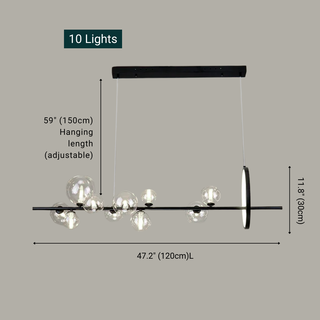 10 Lights - 10 bulbs (5 watts each) +17W LED rings - 25.6” (65cm)L x 4.7” (12cm)W