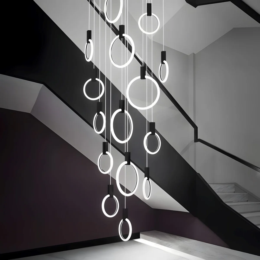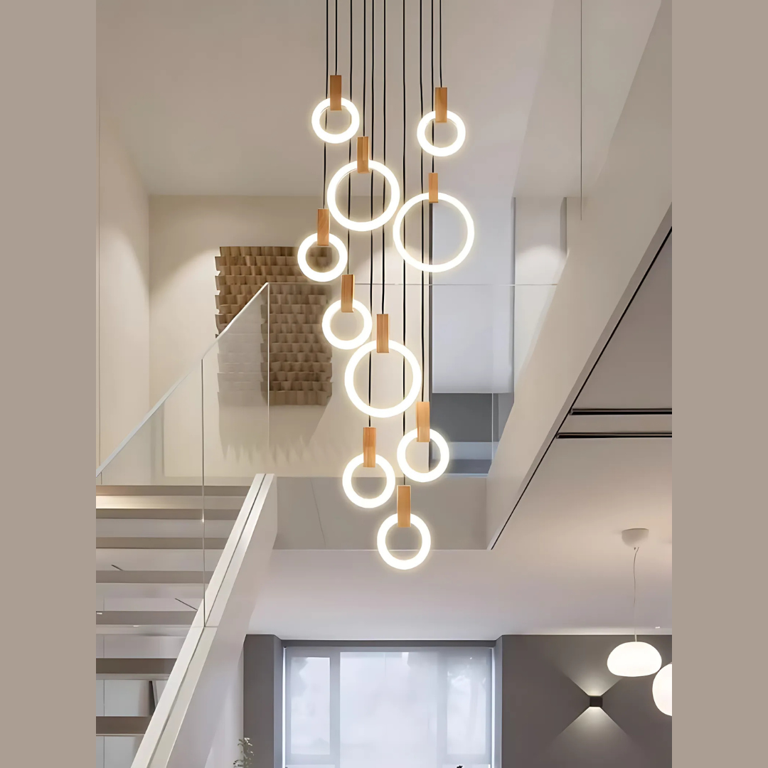 A Sophisticated Circular LED Chandelier that adds modern elegance and ambient lighting to any interior space.