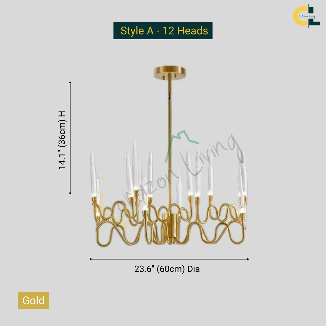 Style A - 12 Heads: 23.6" (60cm) Dia x 17.7" (45cm) H x 15lbs (7kg) - 30W