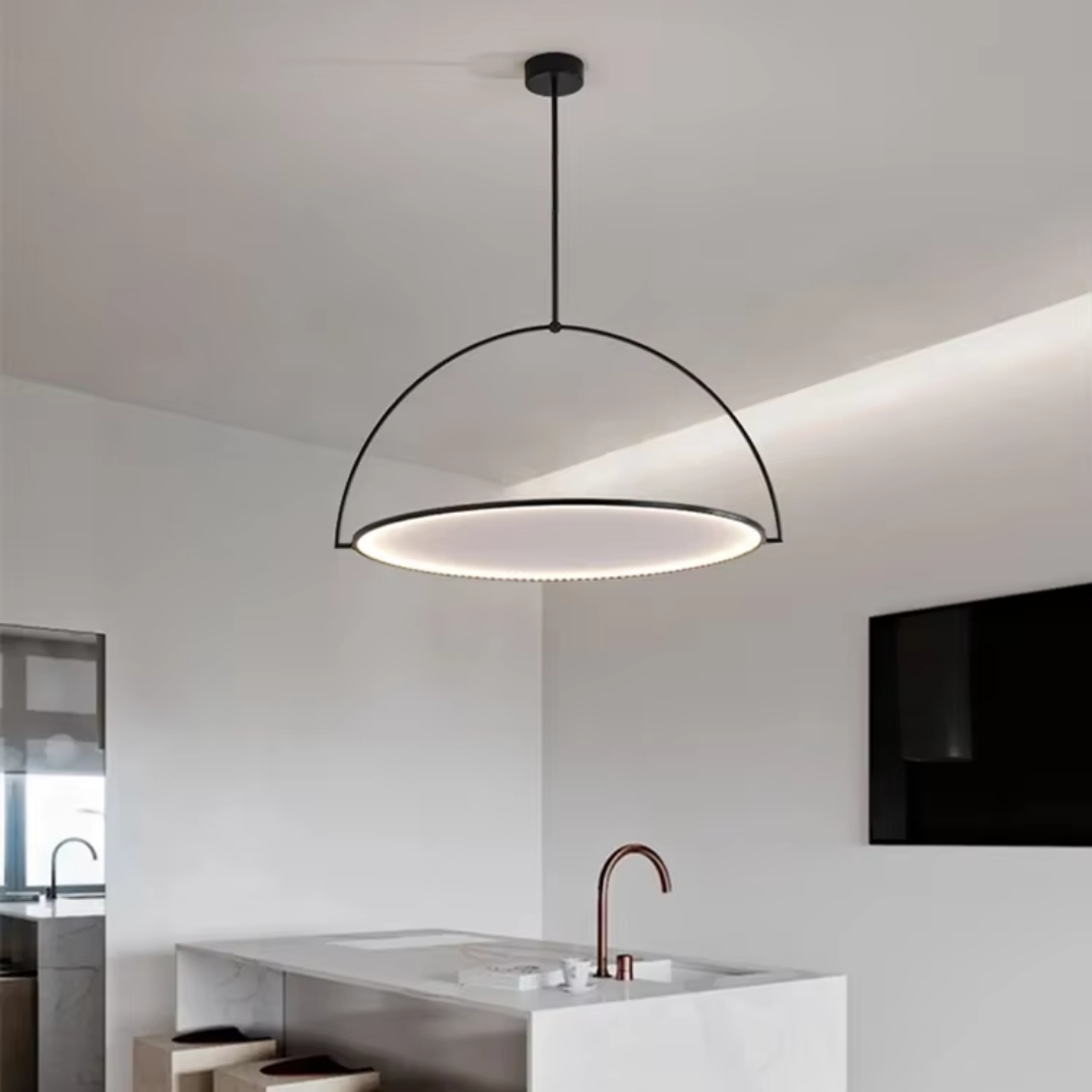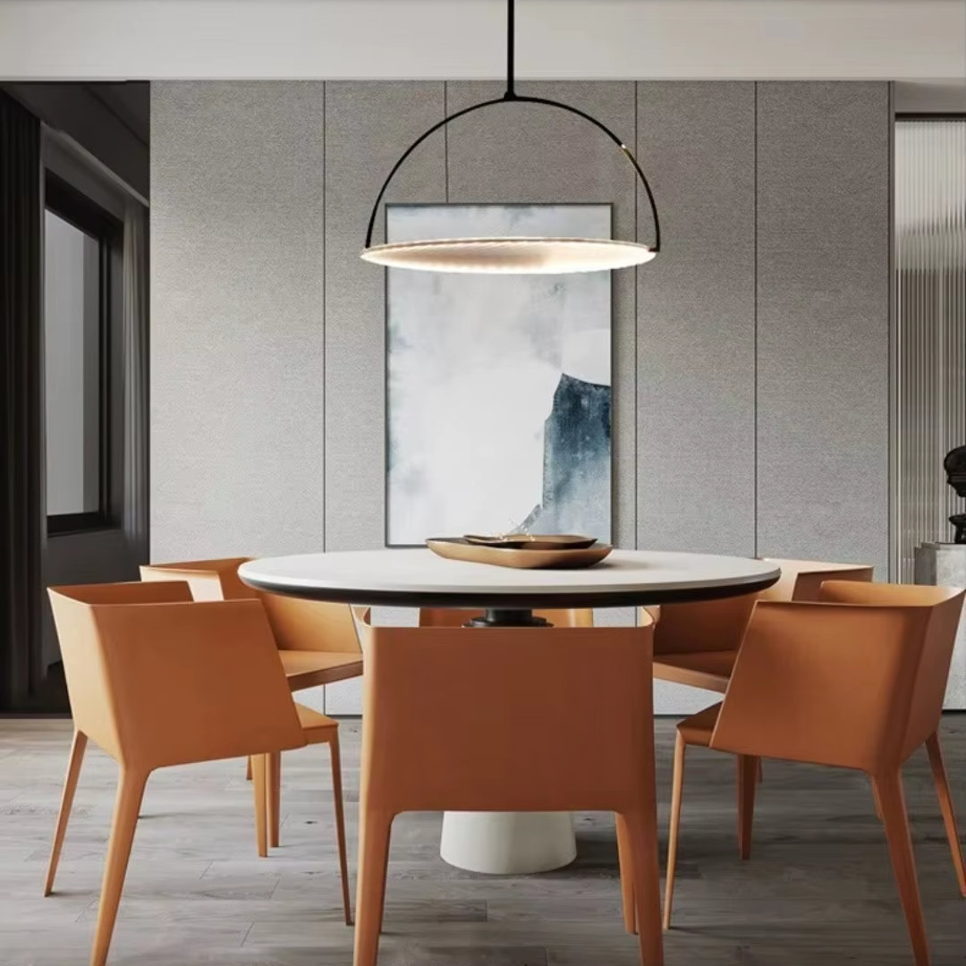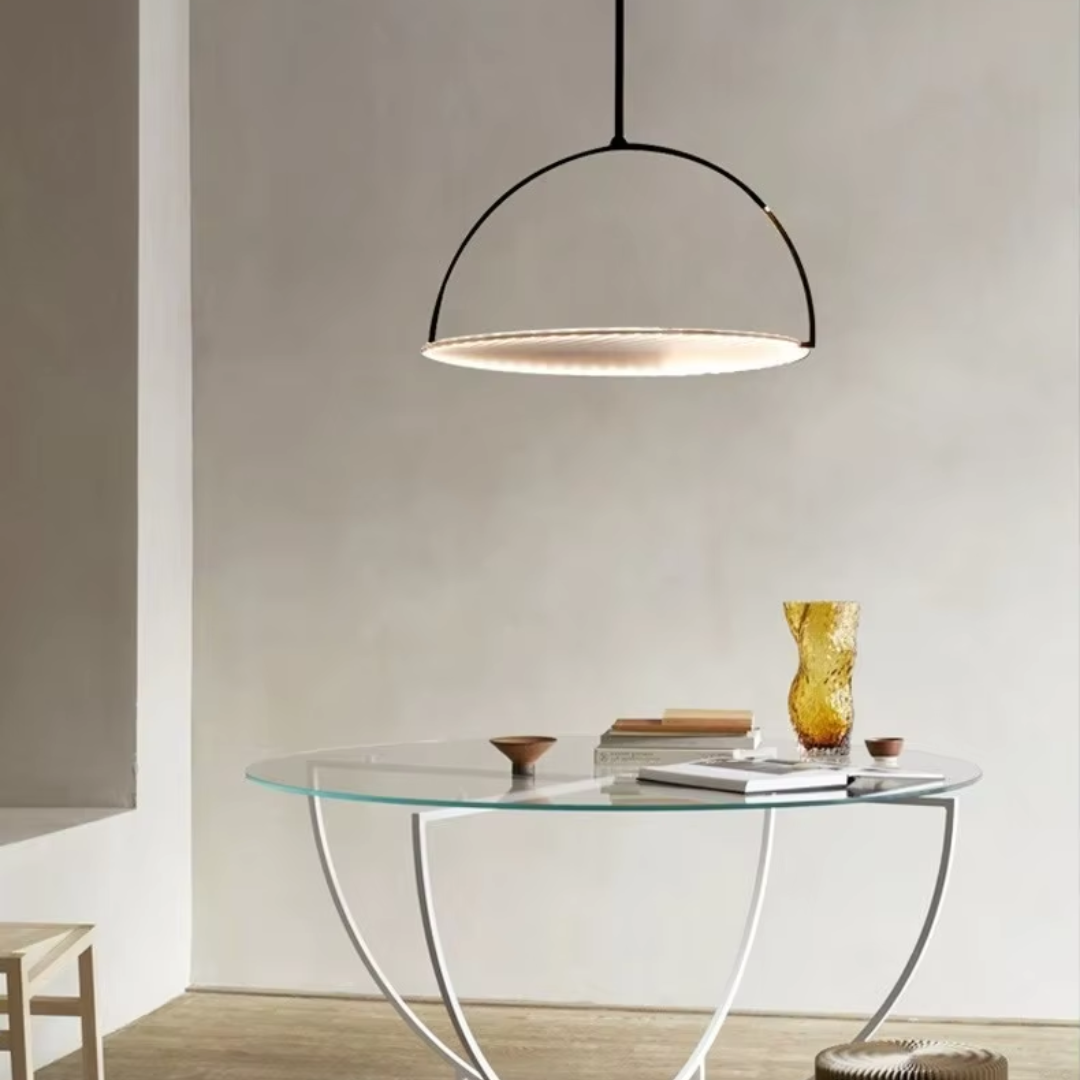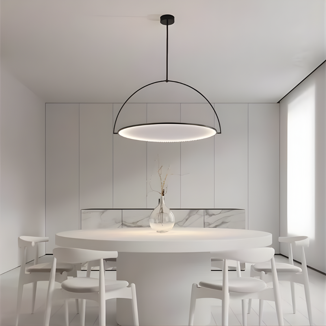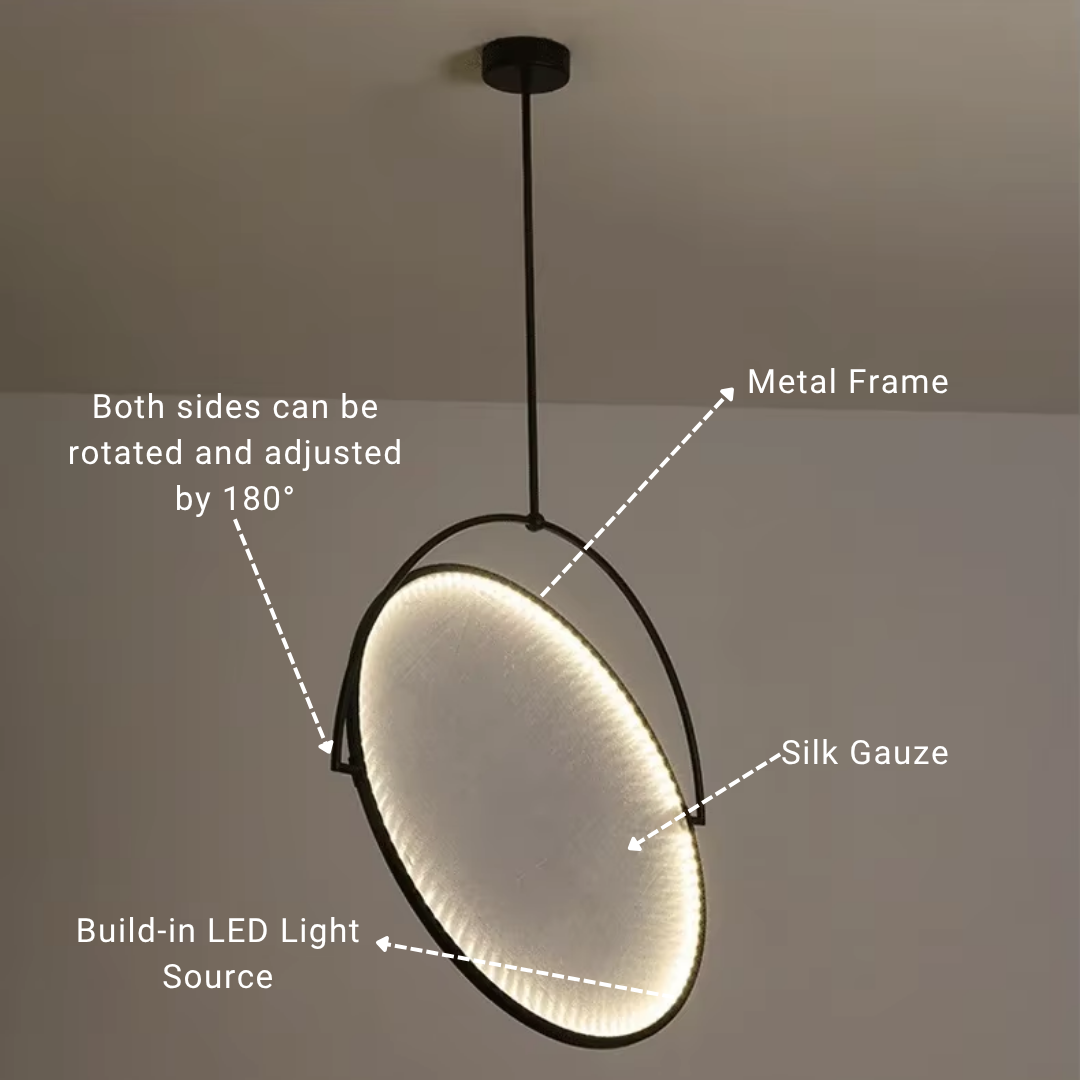 Add a modern artistic touch to your space with this sleek disc-shaped pendant light, featuring minimalist design, soft LED illumination, and Italian-inspired elegance.