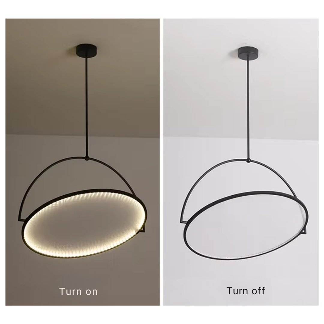 Elevate your interior with the Lancelott Modern Italian Style UFO LED pendant light, a striking fusion of minimalist Nordic design and artistic sophistication. This elegant light features a sleek, disc-shaped LED light suspended within a bold black or white frame, creating a floating, sculptural look that enhances any modern space. Perfect for restaurants, bars, shop interiors, or modern home decor, it delivers soft ambient lighting with energy efficiency. Available in two stylish color options—Black-Black and Black-White—this statement pendant blends high-end design with functional performance.