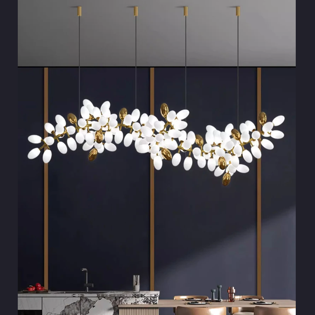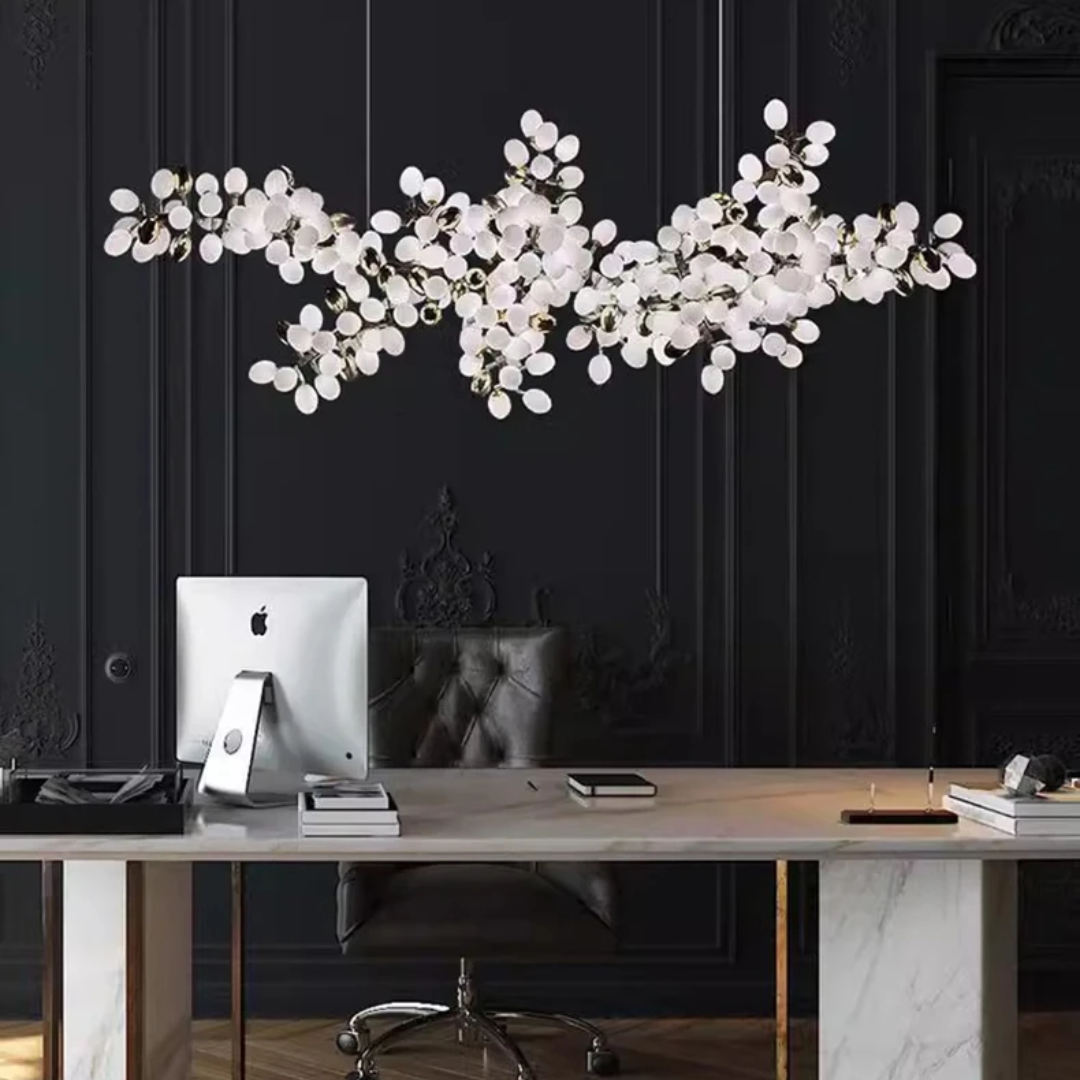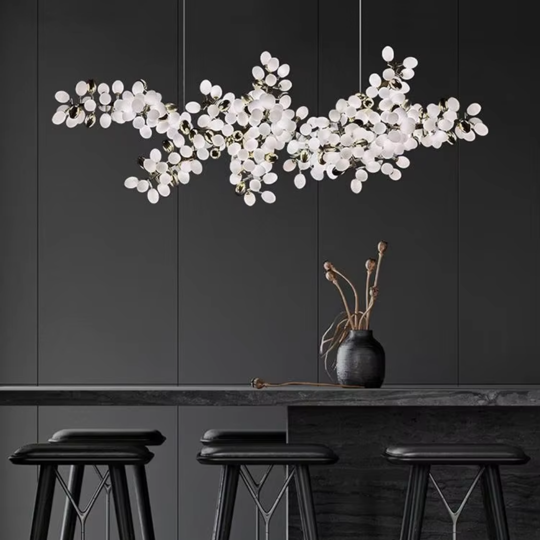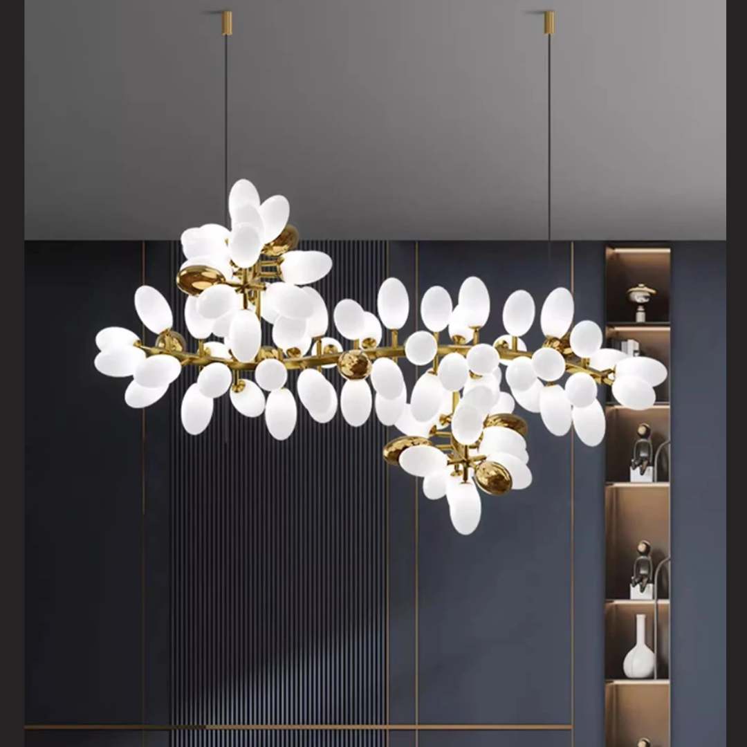 Introducing Lenora — a captivating white glass cluster chandelier that brings a sense of refined beauty and organic elegance to any interior. Inspired by ancient flora, Lenora blends natural form with luxurious materials to create a stunning focal point for homes and commercial spaces alike.