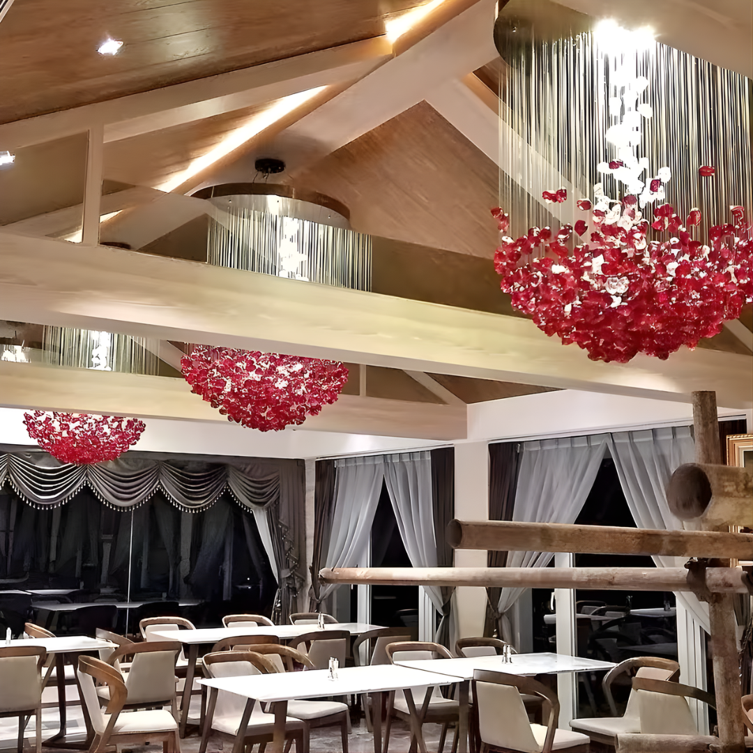 Add a touch of luxury with a glass LED chandelier, perfect for grand interiors and elegant spaces.