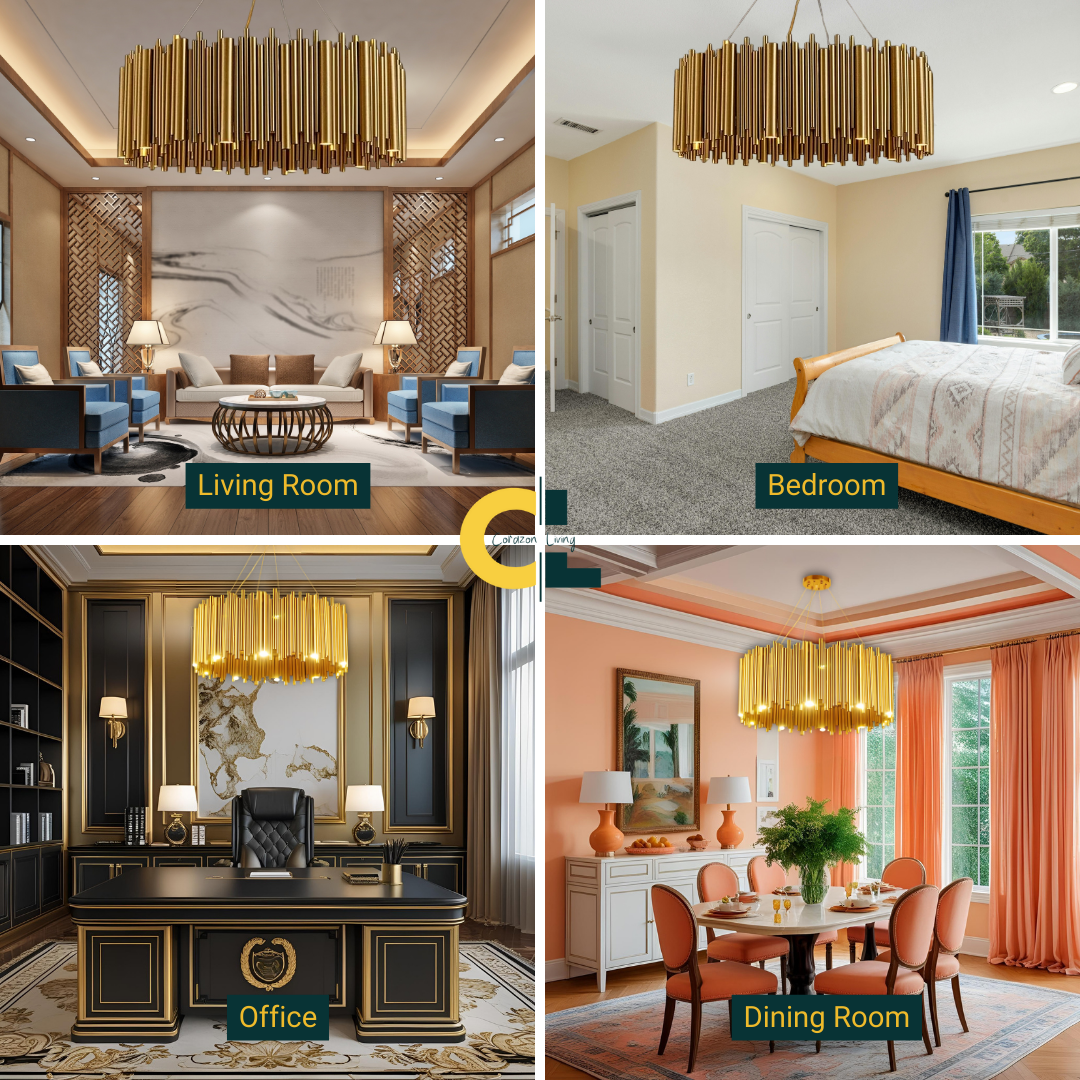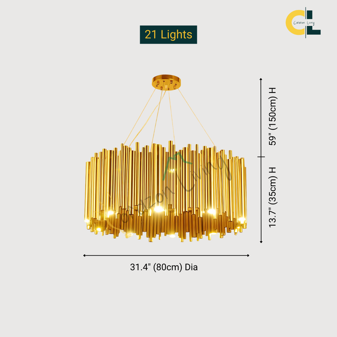 Premium Gold Finish – Sleek aluminum tubes with a golden sheen add glamour and warmth.
